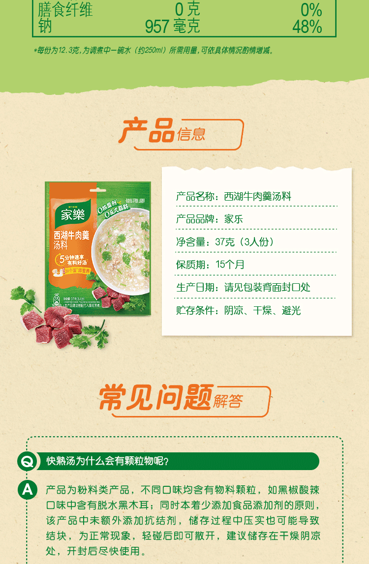 家乐快熟汤系列 西湖牛肉羹37g*10包 方便速食优选原料速成菜调料