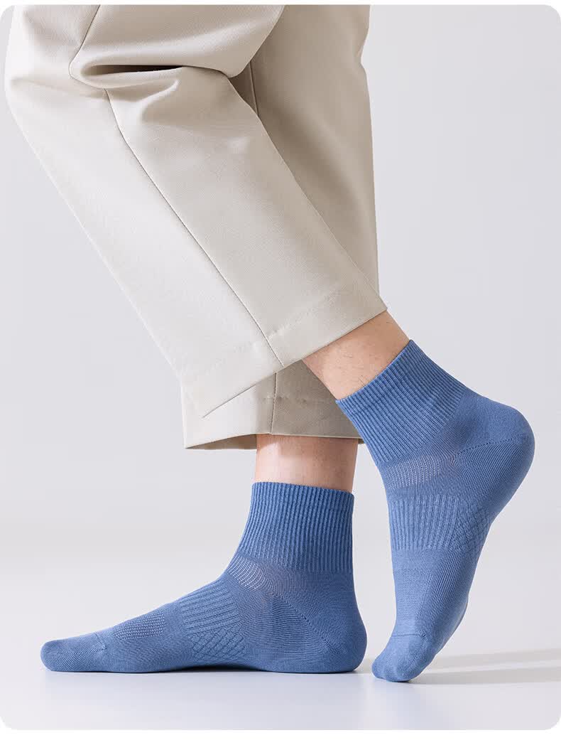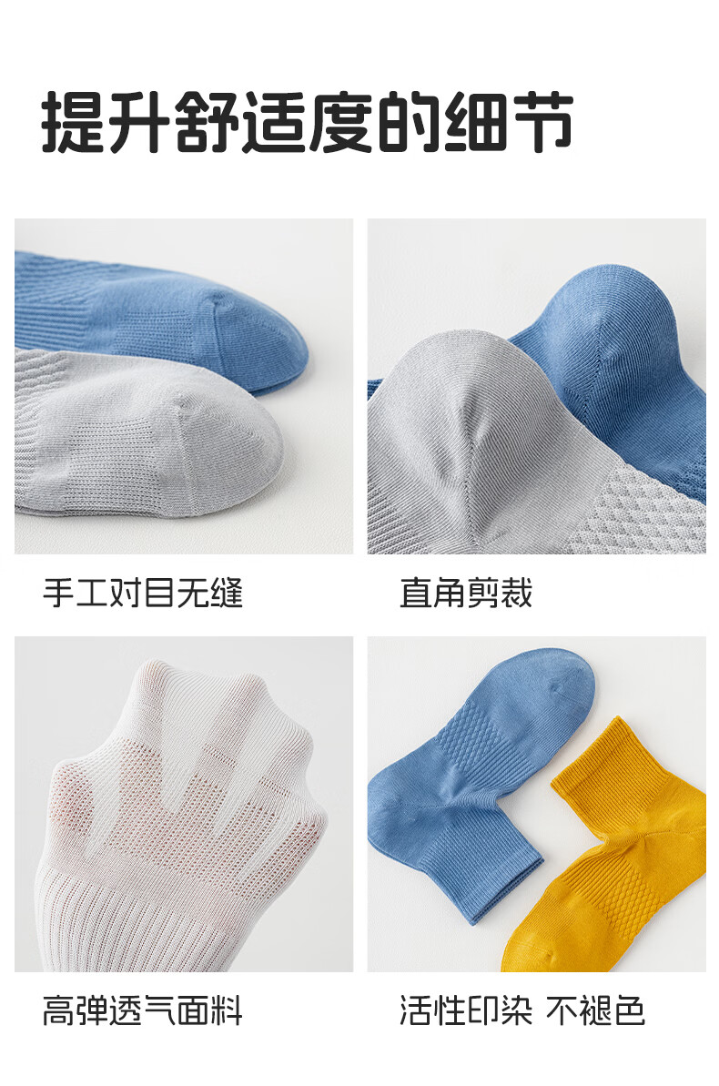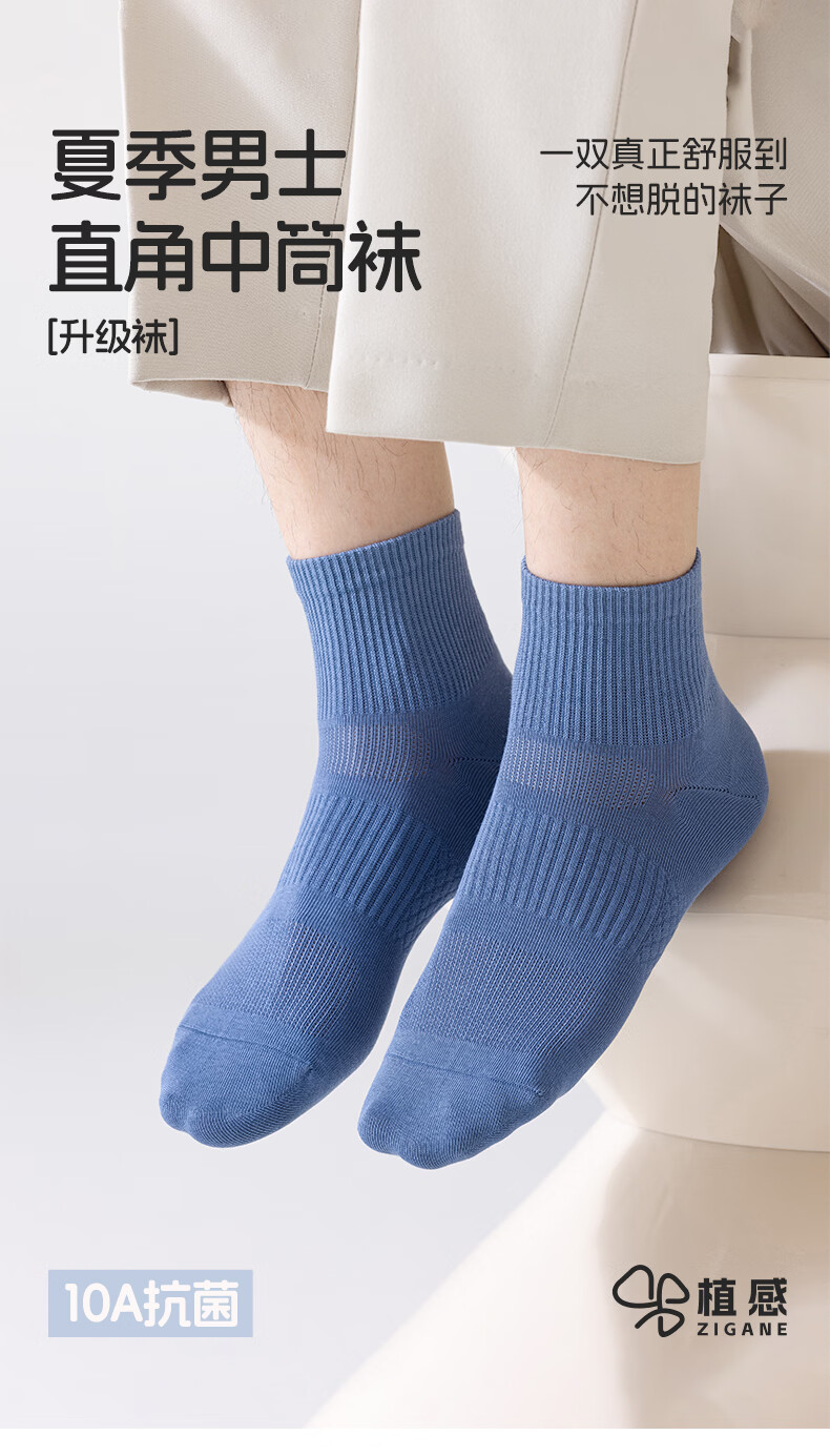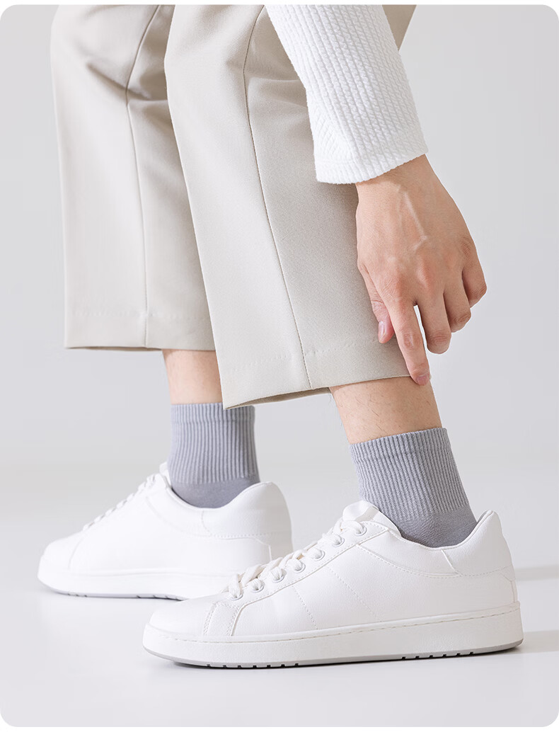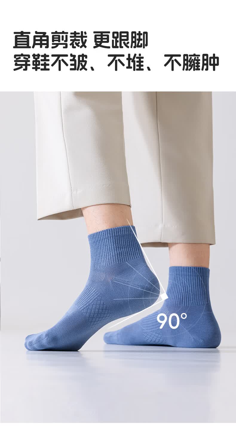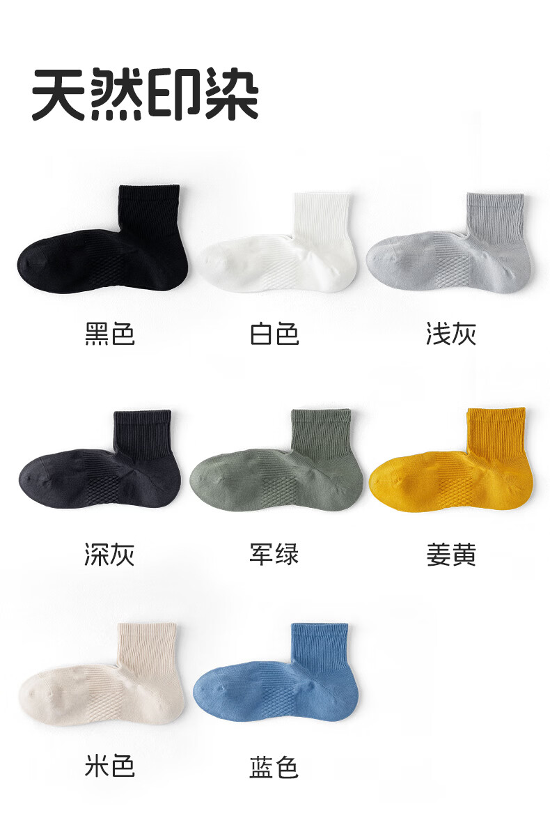 植感 直角男袜 夏季吸汗透气薄棉短袜 抗菌防臭休闲袜纯色5双 【5双】深灰*2浅灰*2白色*1 均码