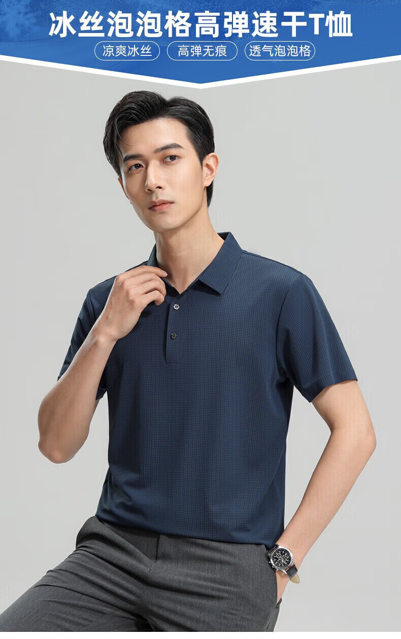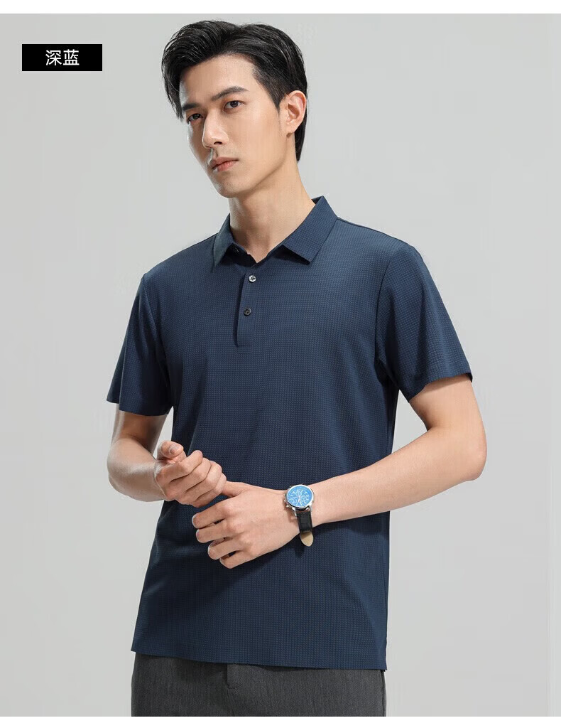 杉杉(SHANSHAN)【轻奢醋酸7A】男士polo衫短袖亚麻桑蚕丝短袖t恤 雾霾蓝 4XL