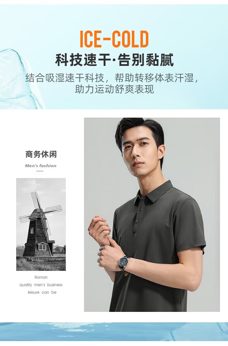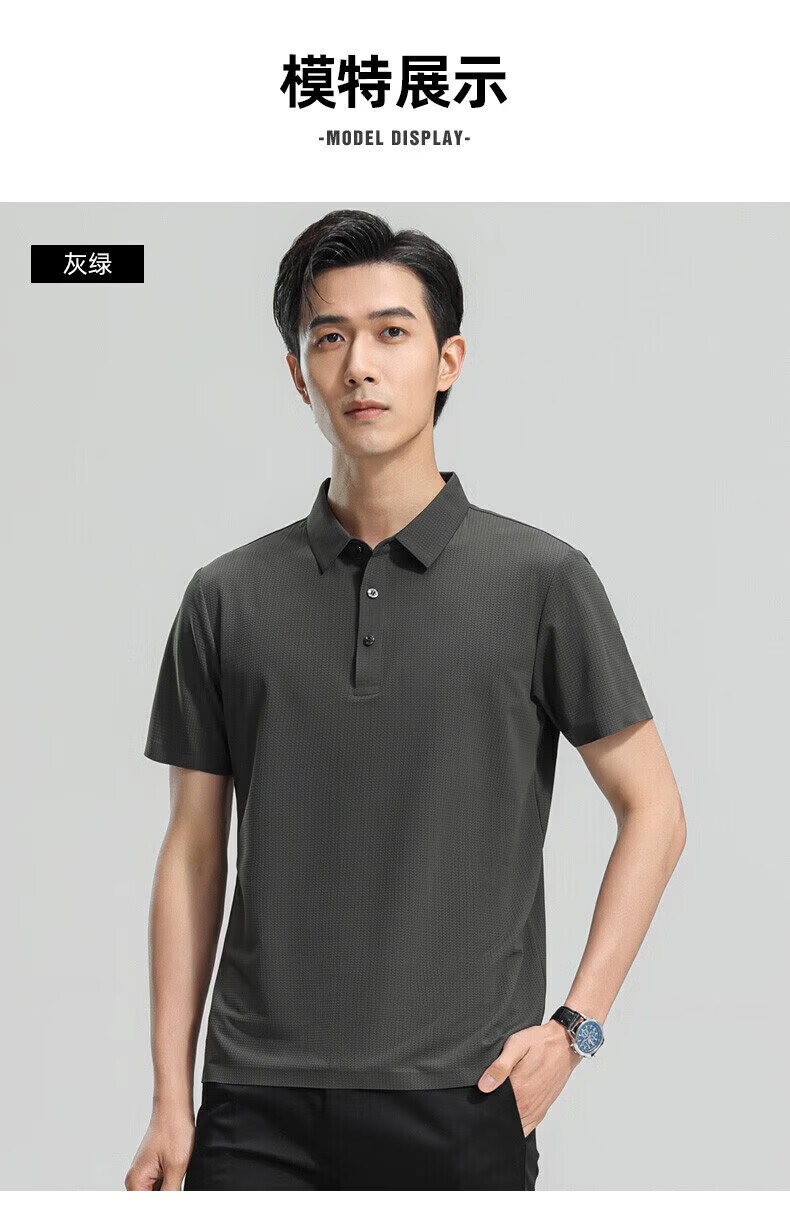 罗蒙(ROMON)【高弹无痕】短袖polo衫男夏季新款泡泡格弹力纯色翻领短袖t恤 G2206绿色 3XL 190/104A(建议175-195斤)