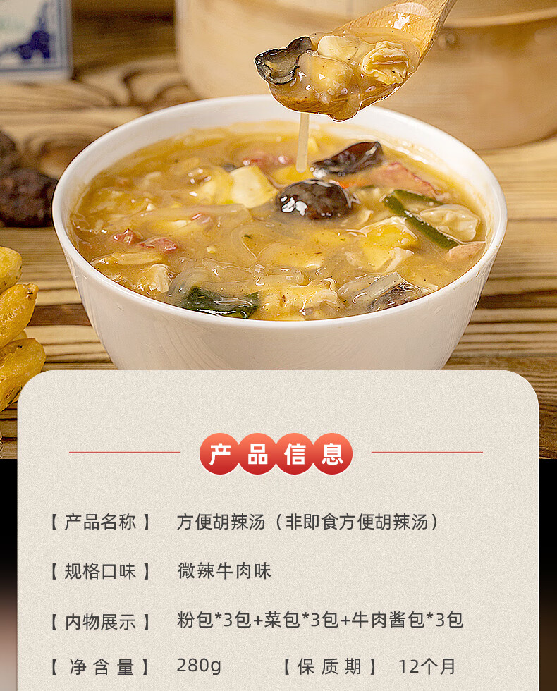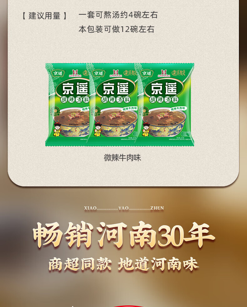 京遥清真逍遥镇经典系列水煮胡辣汤280g/袋微辣牛肉味(可煮12碗汤)