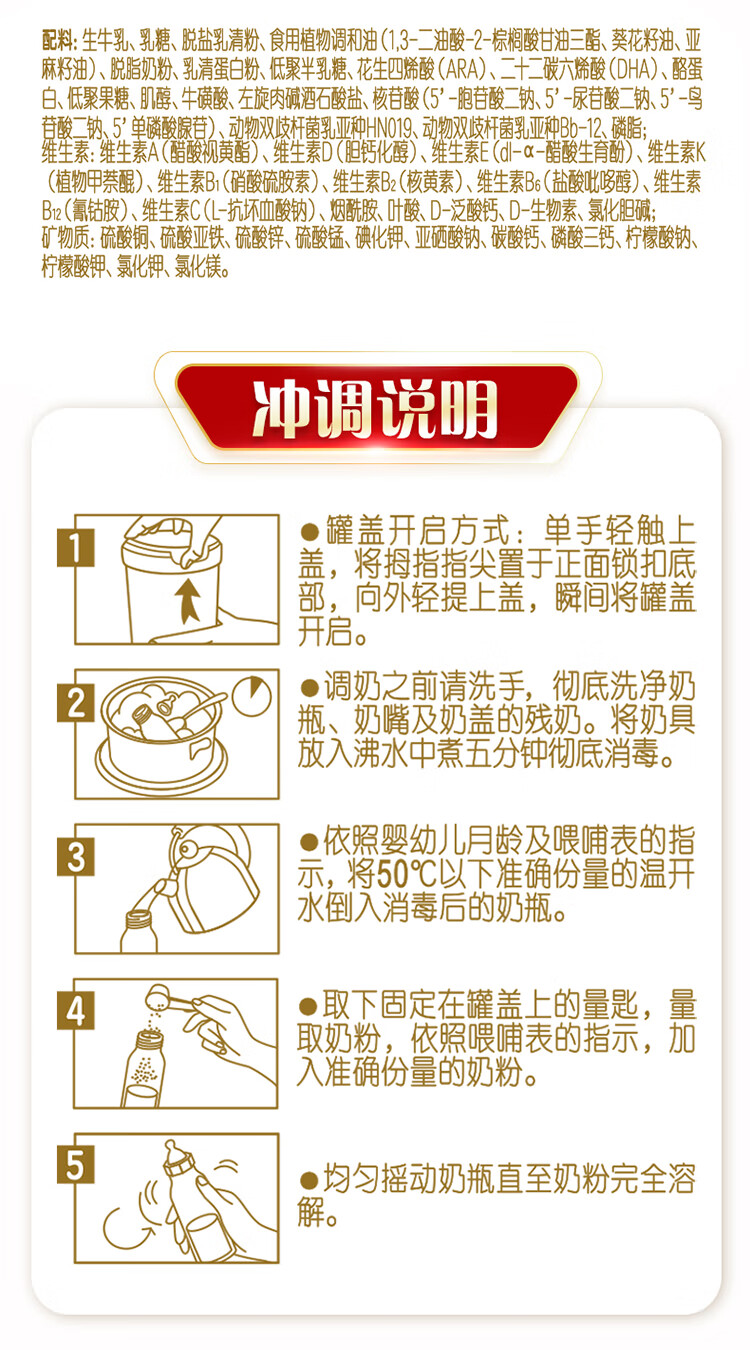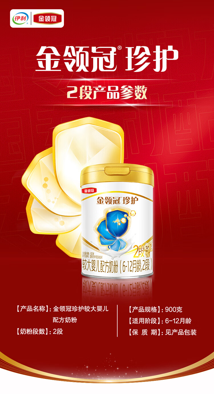 伊利金领冠珍护较大婴儿奶粉2段6-12月900g*6罐 三代OPO/HMO乳源专利