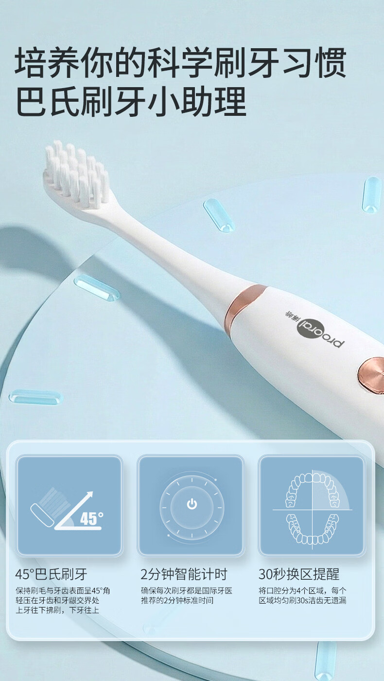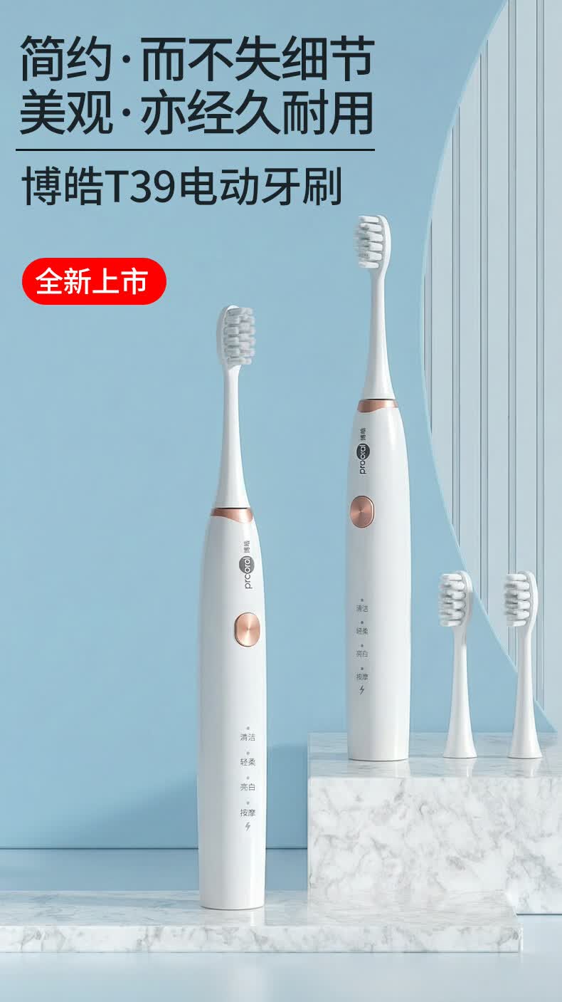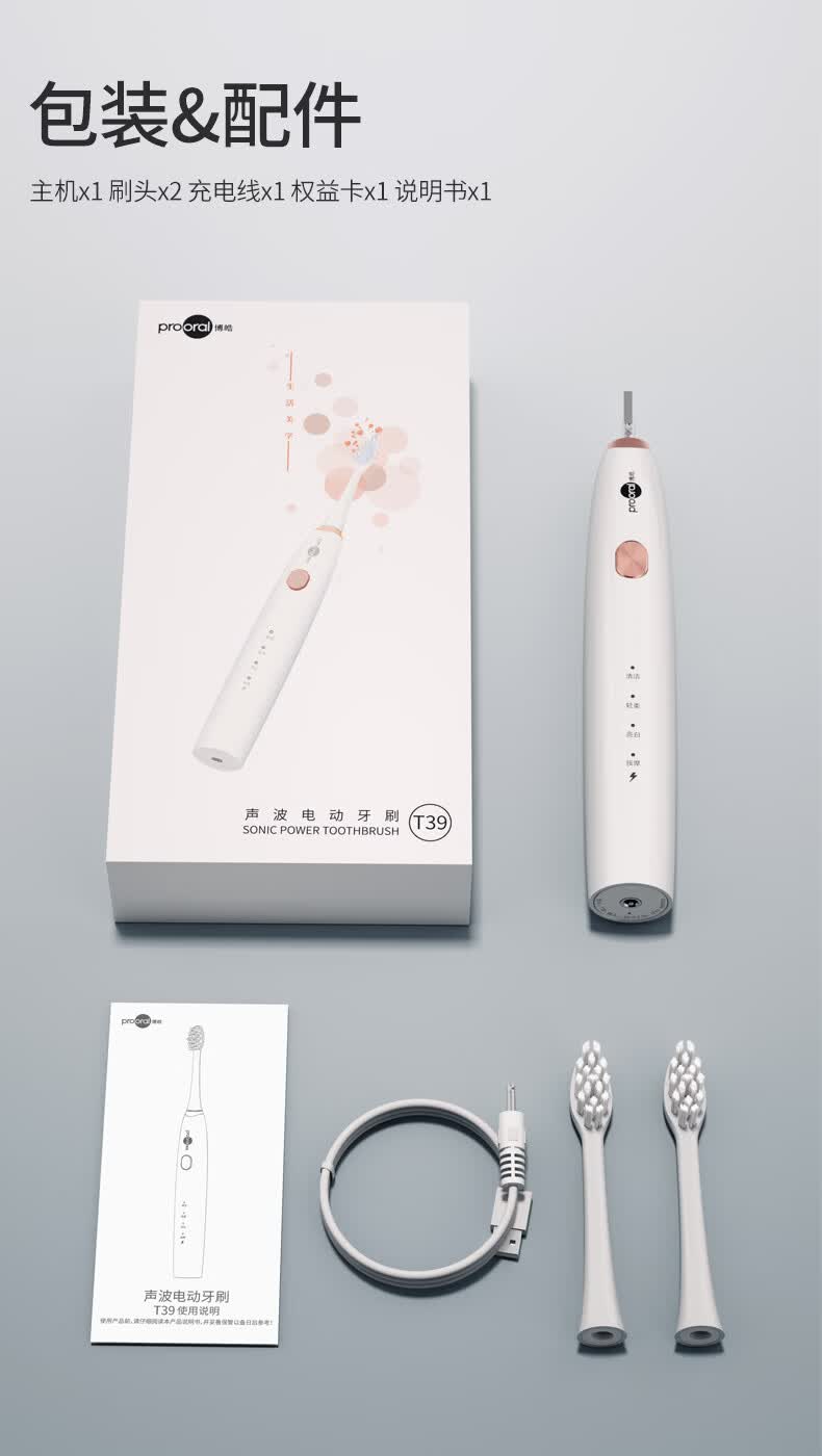 博皓(prooral)电动牙刷声波振动智能牙刷成人专用便携电动牙刷男女士送情侣父母朋友礼物 T39 月牙白