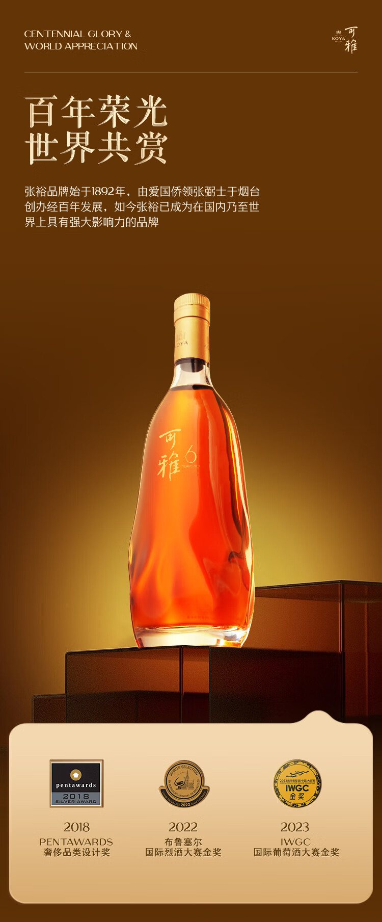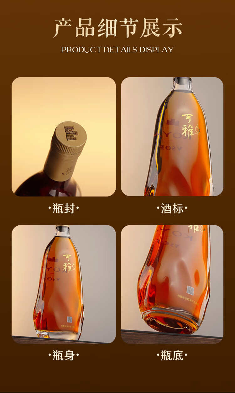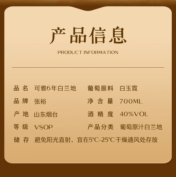 张裕可雅白兰地VSOP可雅桶藏六年6年700ml单支礼盒装 洋酒酒庄酒送礼 700mL 1瓶