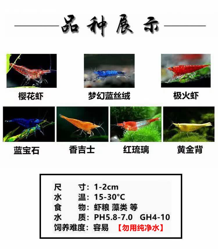 御趣七彩观赏虾淡水除藻虾极火虾蓝宝石虾金背黄金米虾宠物虾彩色小虾 【随机6色】40+15抵损1-1.5cm