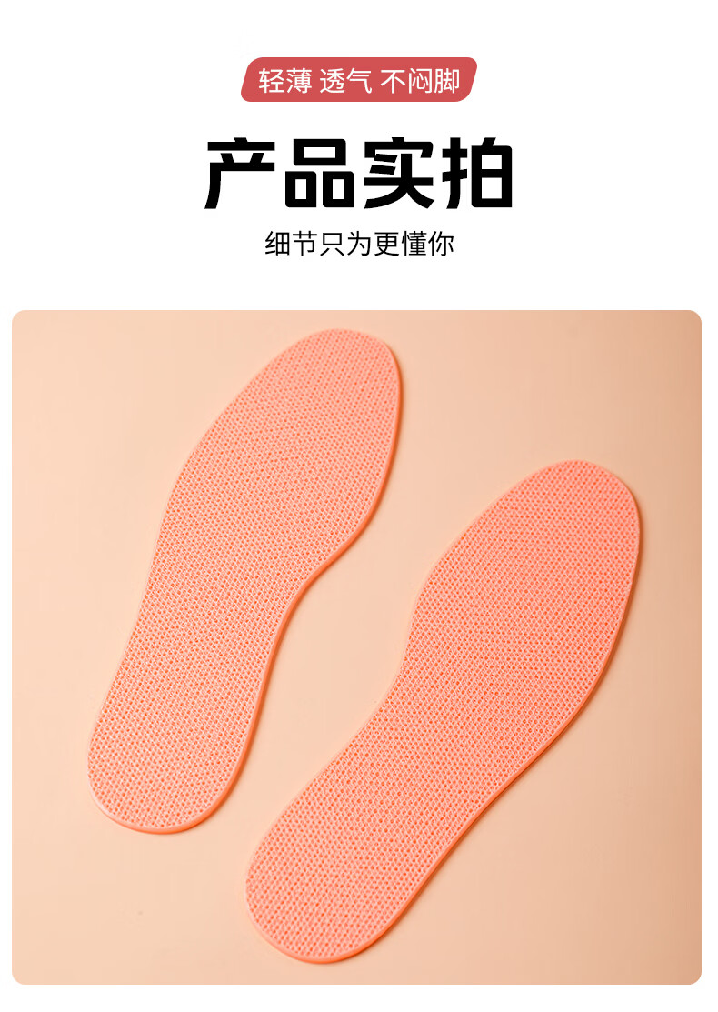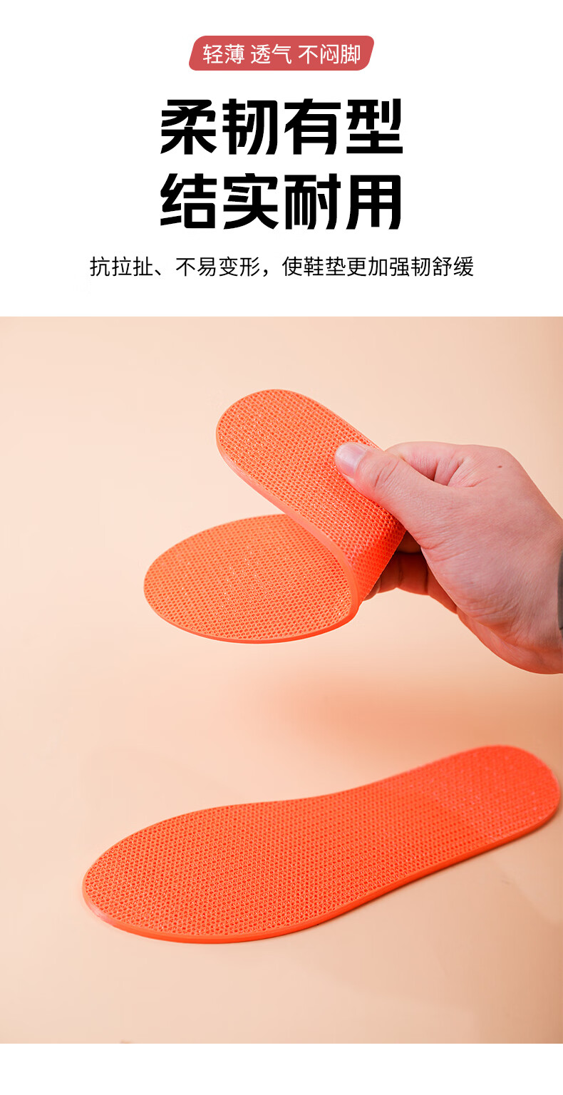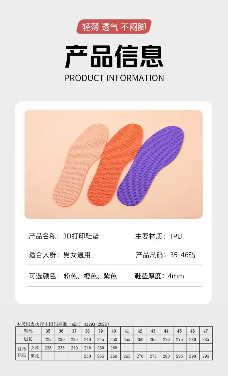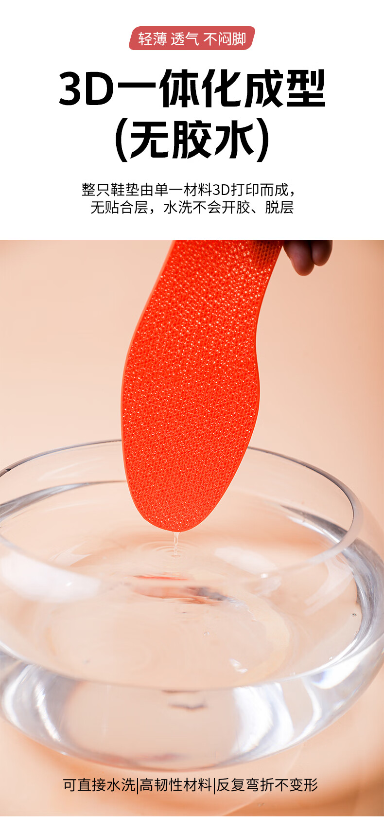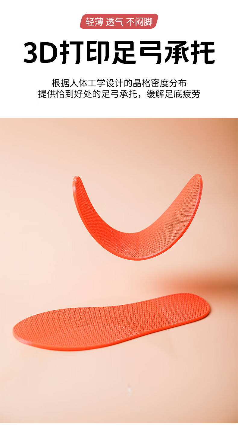 巢履3D打印鞋垫加厚软弹男女款透气排汗防臭抗菌鞋垫汗脚镂空舒适速干 升级加厚橙色4毫米镂空、杏色 37