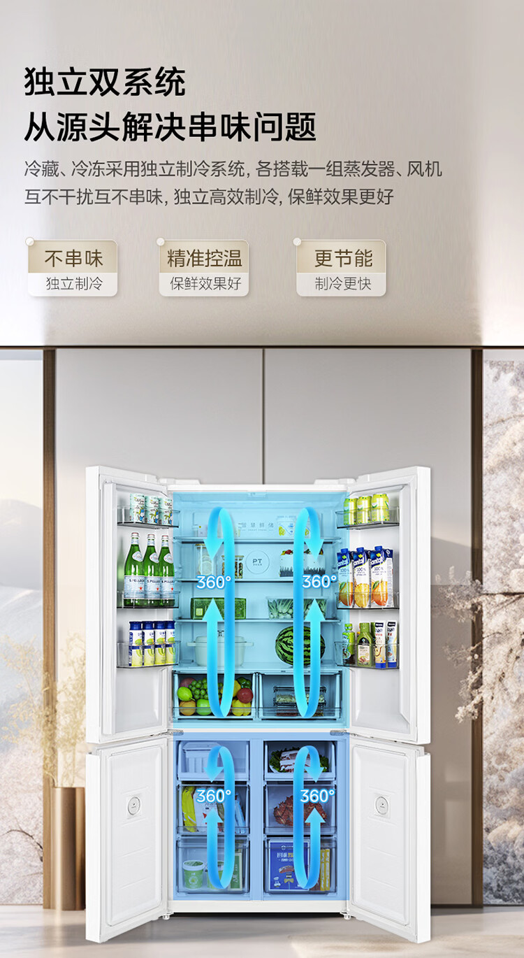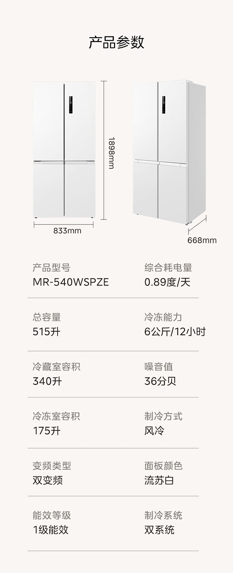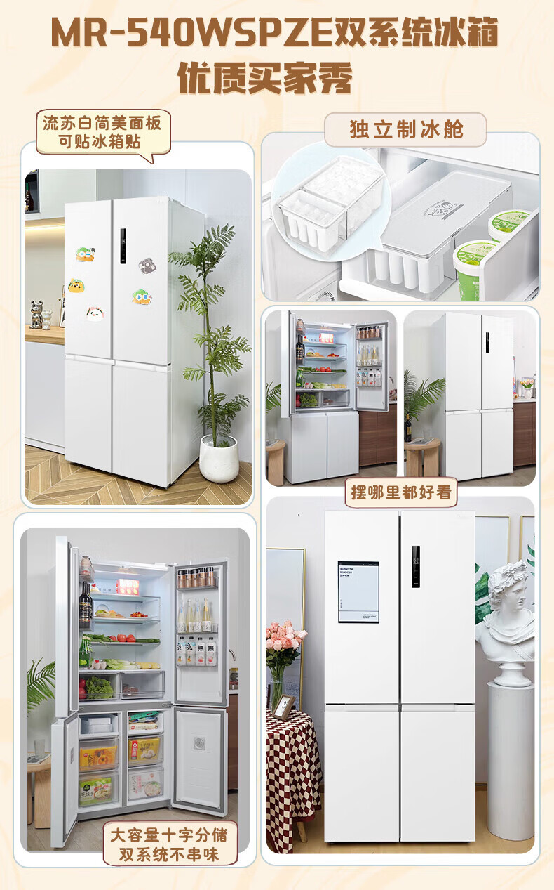 美的(Midea)540十字四开门一级能效双系统双循环大容量风冷无霜变频独立制冰舱冰箱MR-540WSPZE国家补贴