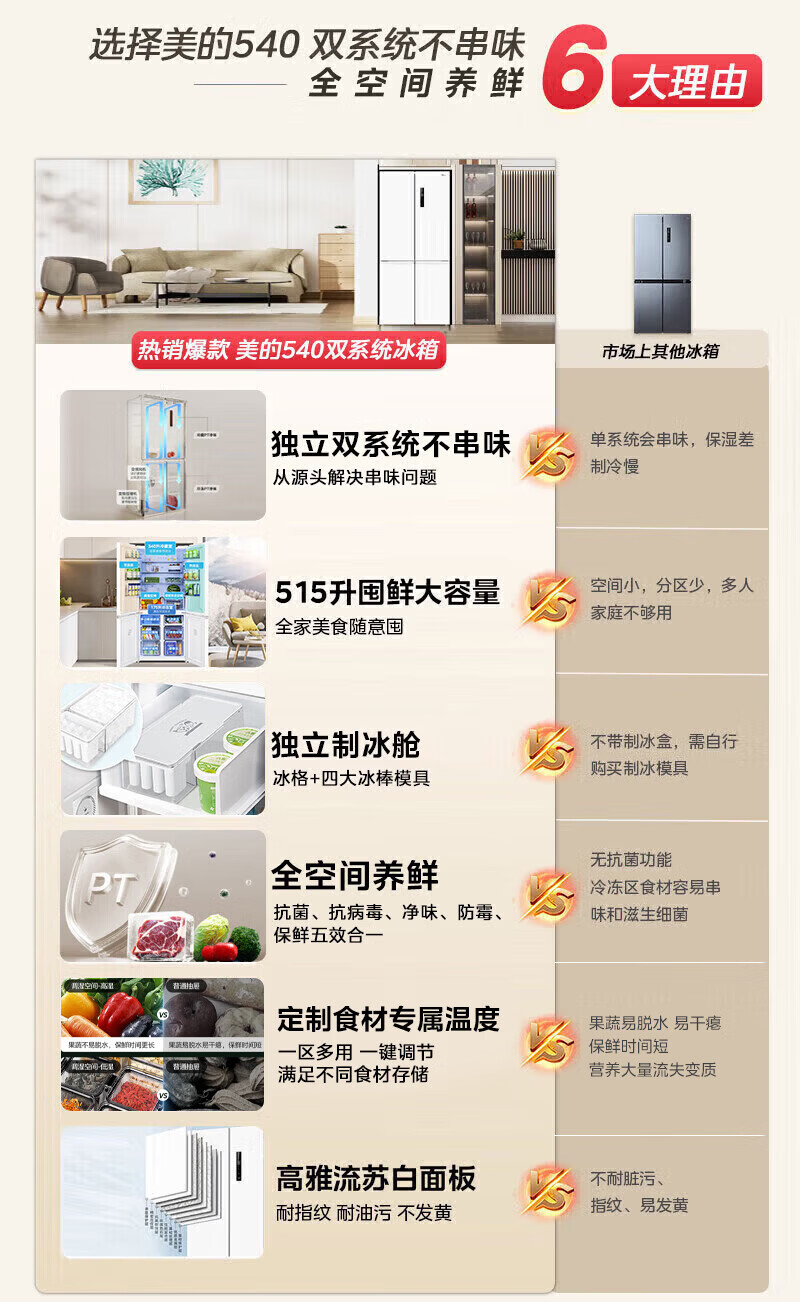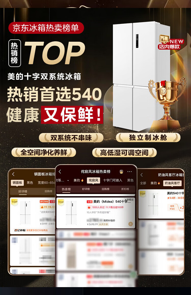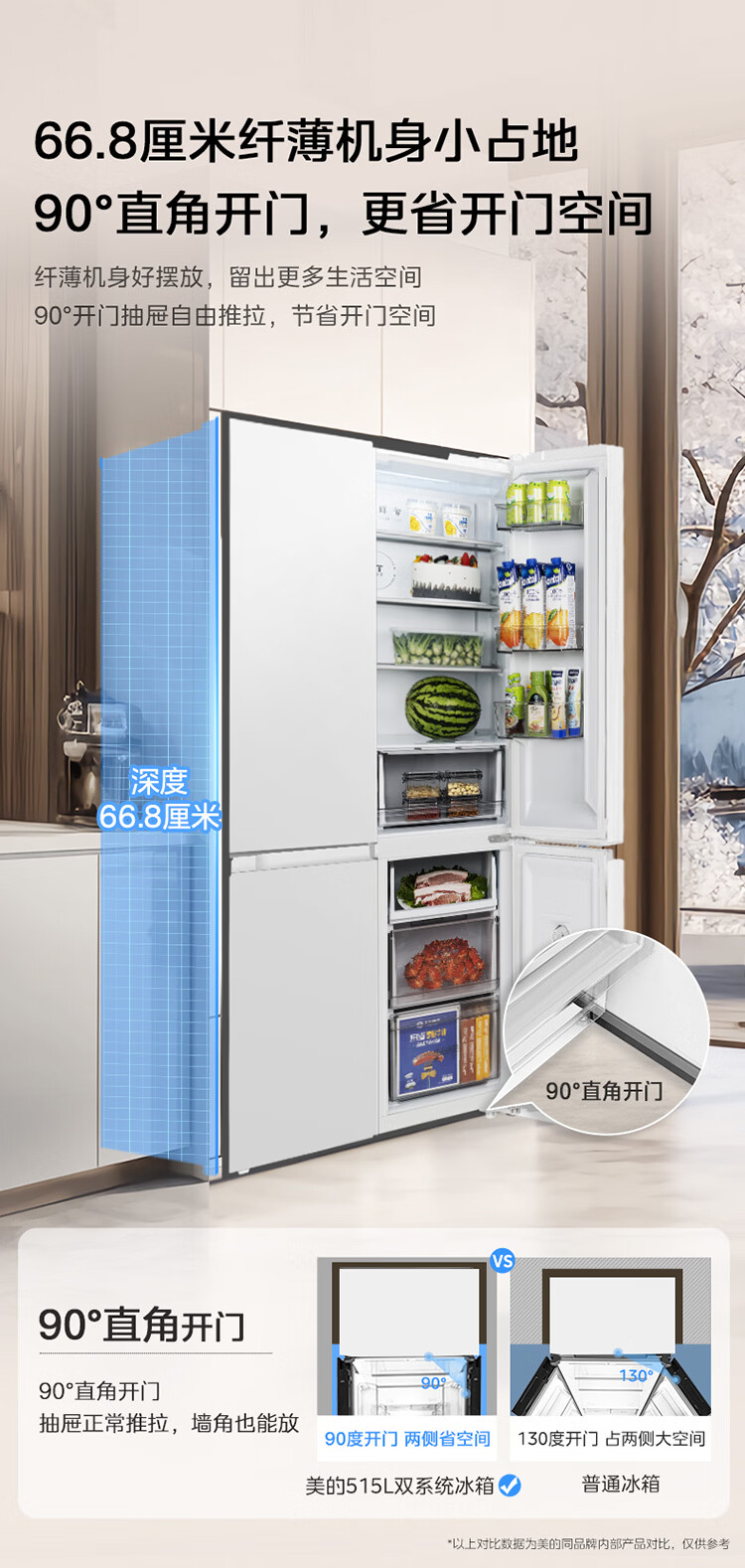 美的(Midea)540十字四开门一级能效双系统双循环大容量风冷无霜变频独立制冰舱冰箱MR-540WSPZE国家补贴