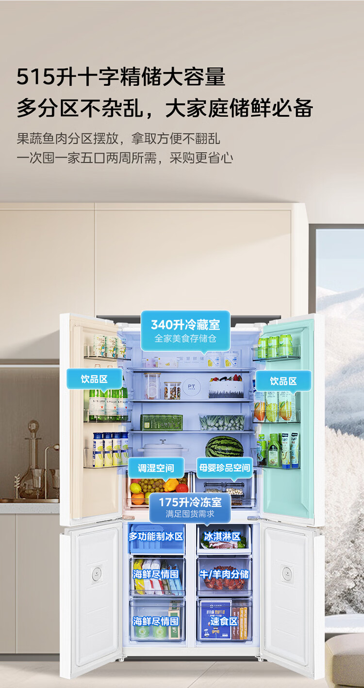 海尔(Haier)冰箱出品539升四开门十字对开门双开统帅560大容量风冷无霜新一级能效变频Leader电冰箱 家电补贴 539升+阻氧干湿分储+黑金净化+一级节能