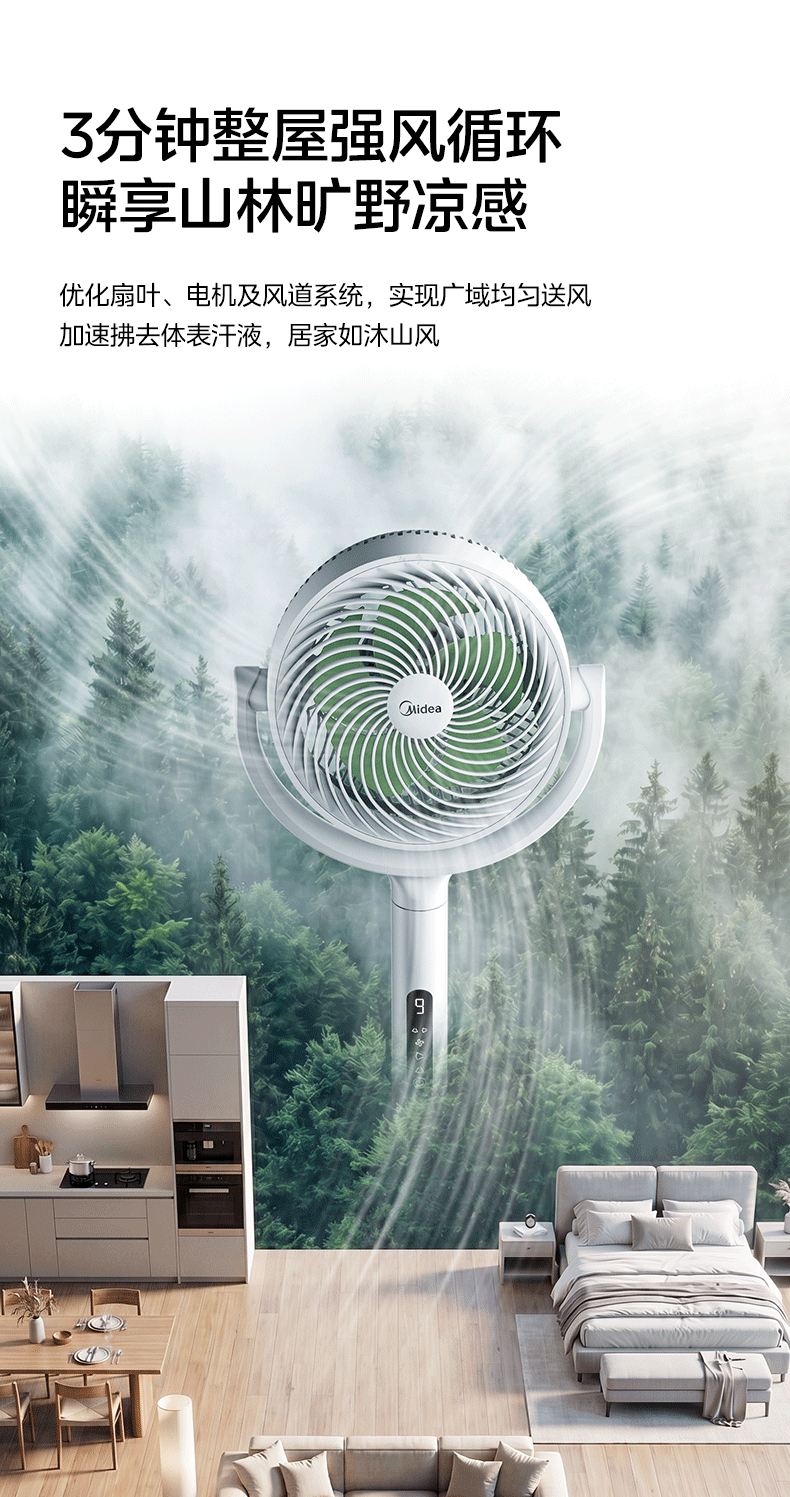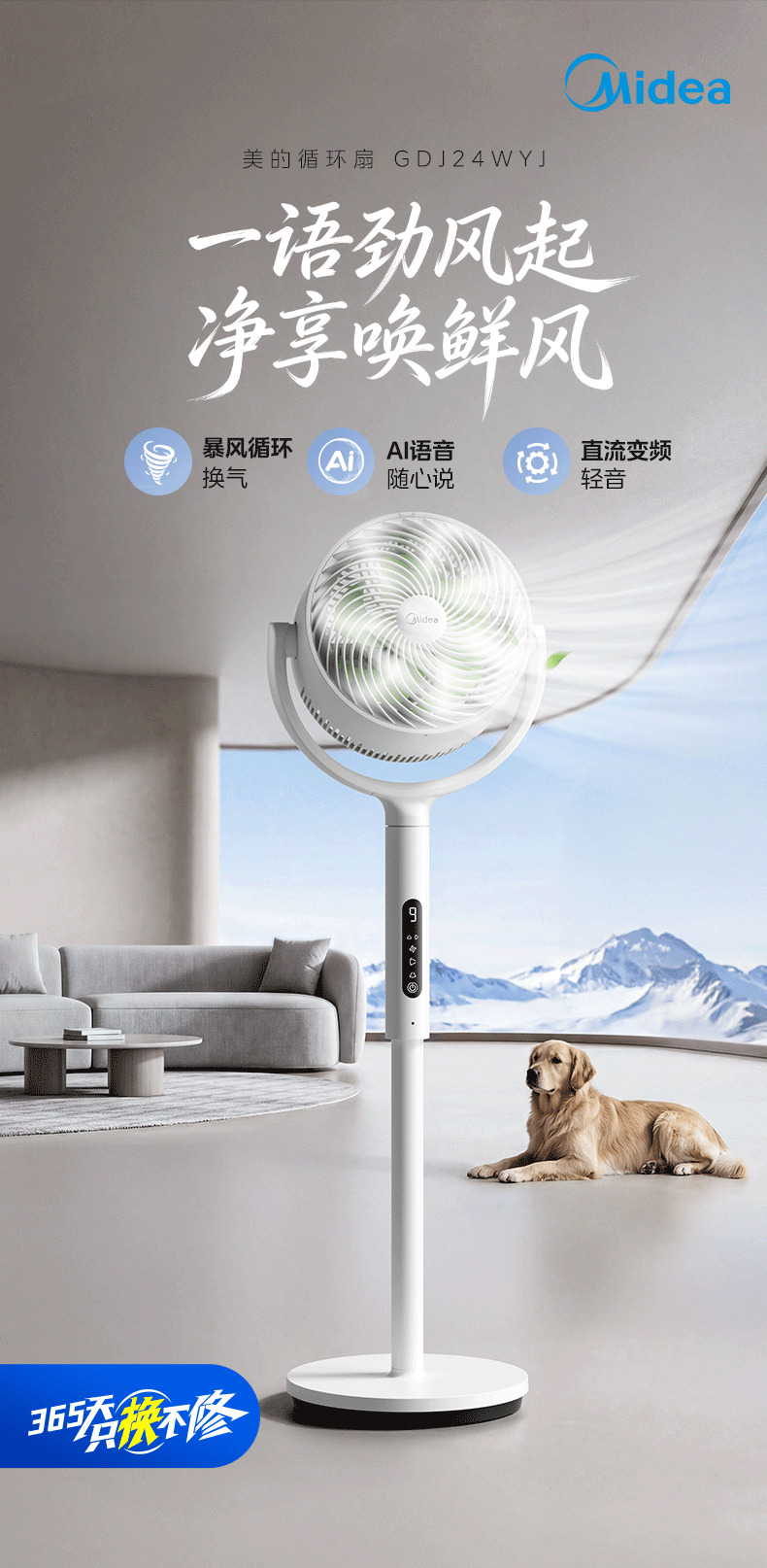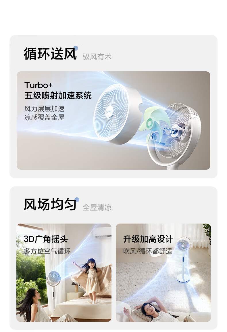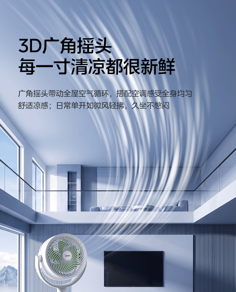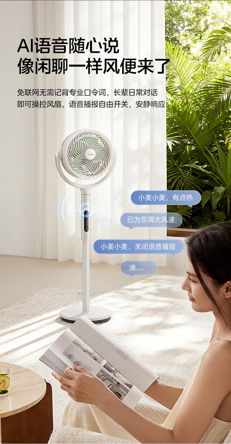 美的(Midea)【3D摇头】直流变频轻音落地空气循环扇家用卧室净化换气扇语音遥控电风扇大风力一级能效GDJ24WYJ