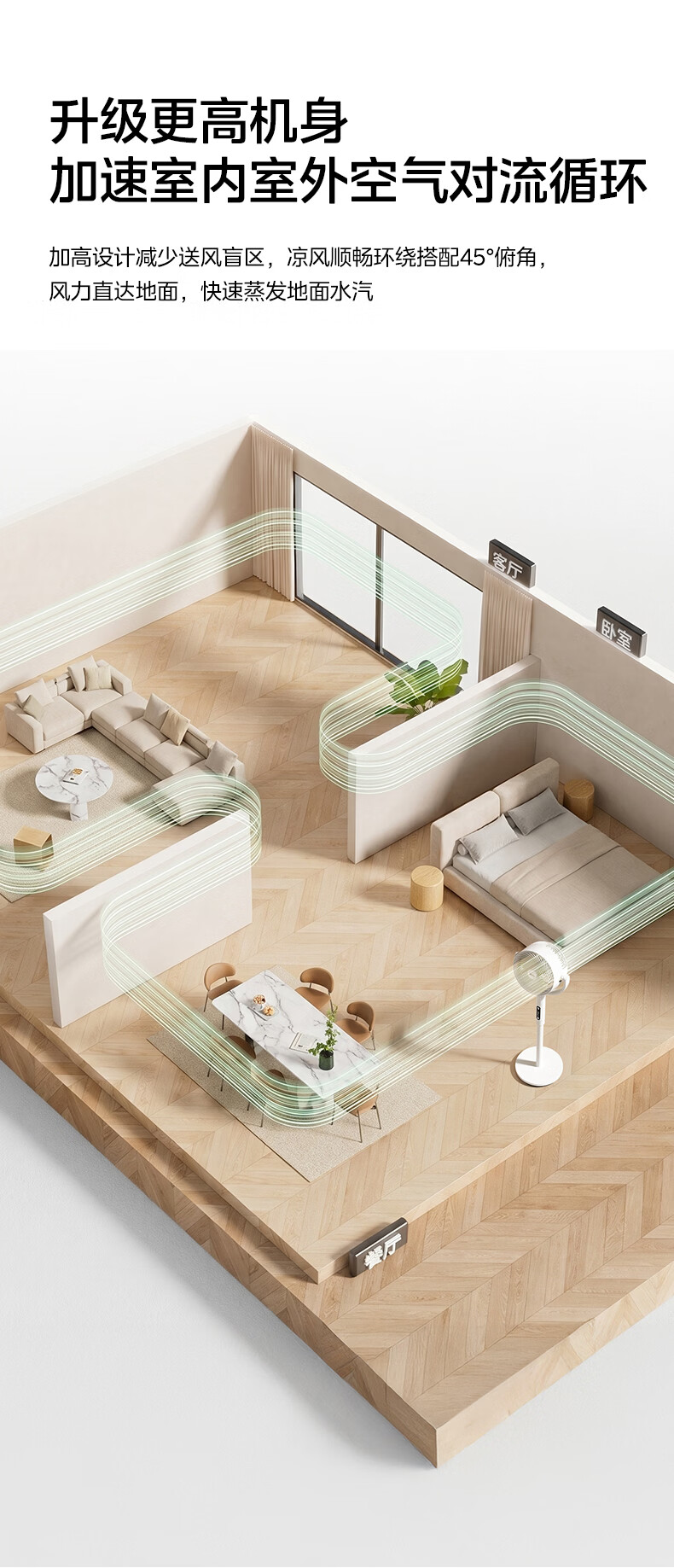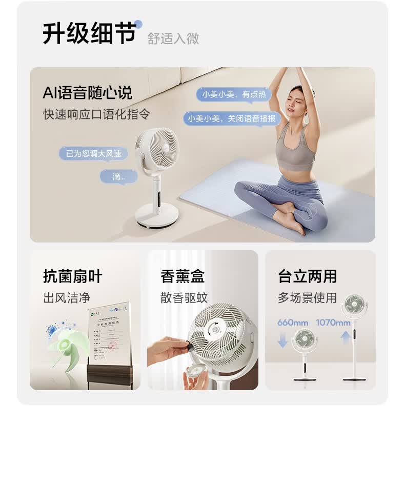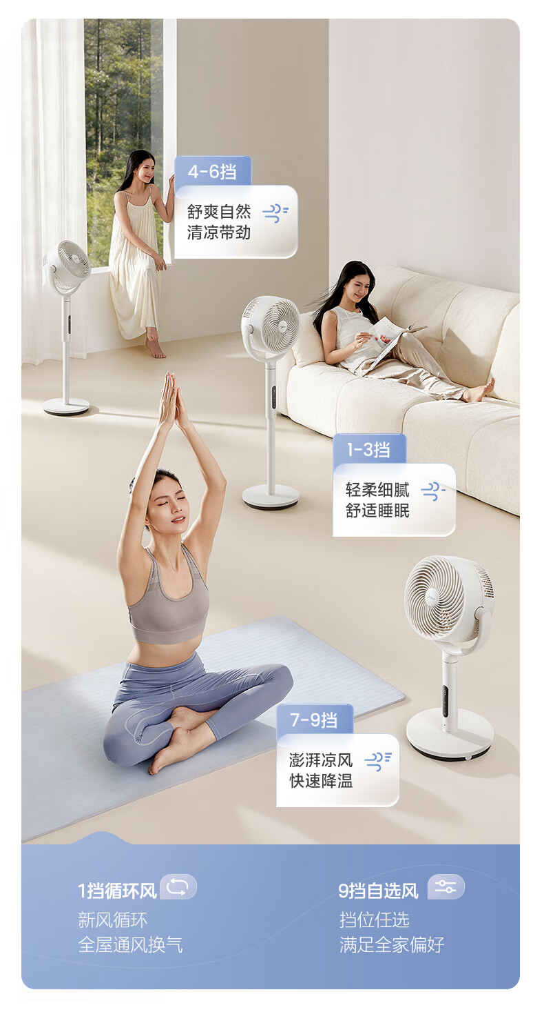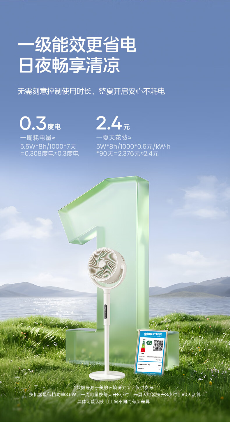 美的(Midea)【3D摇头】直流变频轻音落地空气循环扇家用卧室净化换气扇语音遥控电风扇大风力一级能效GDJ24WYJ