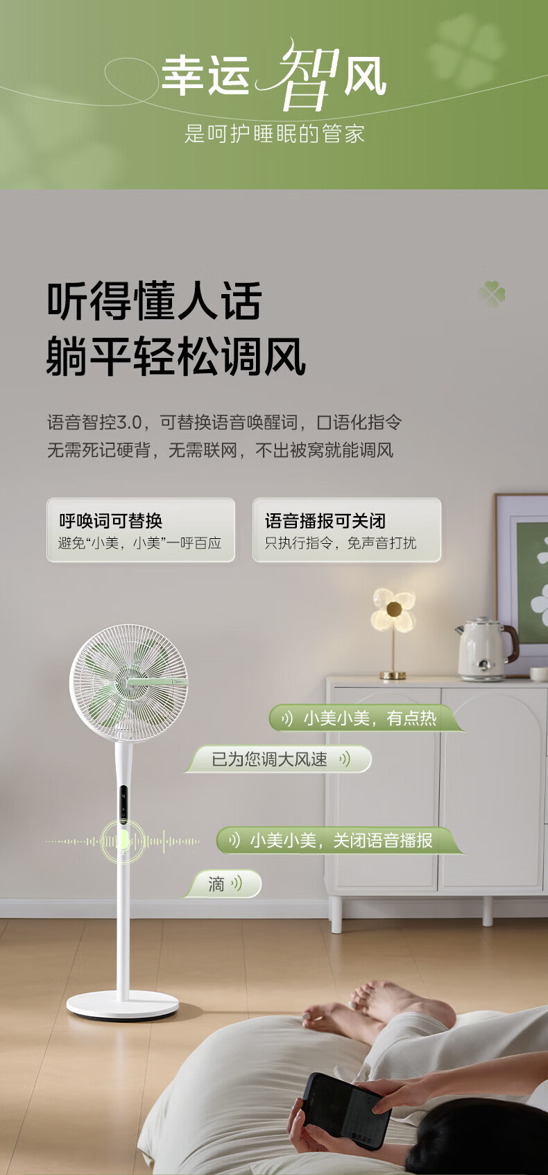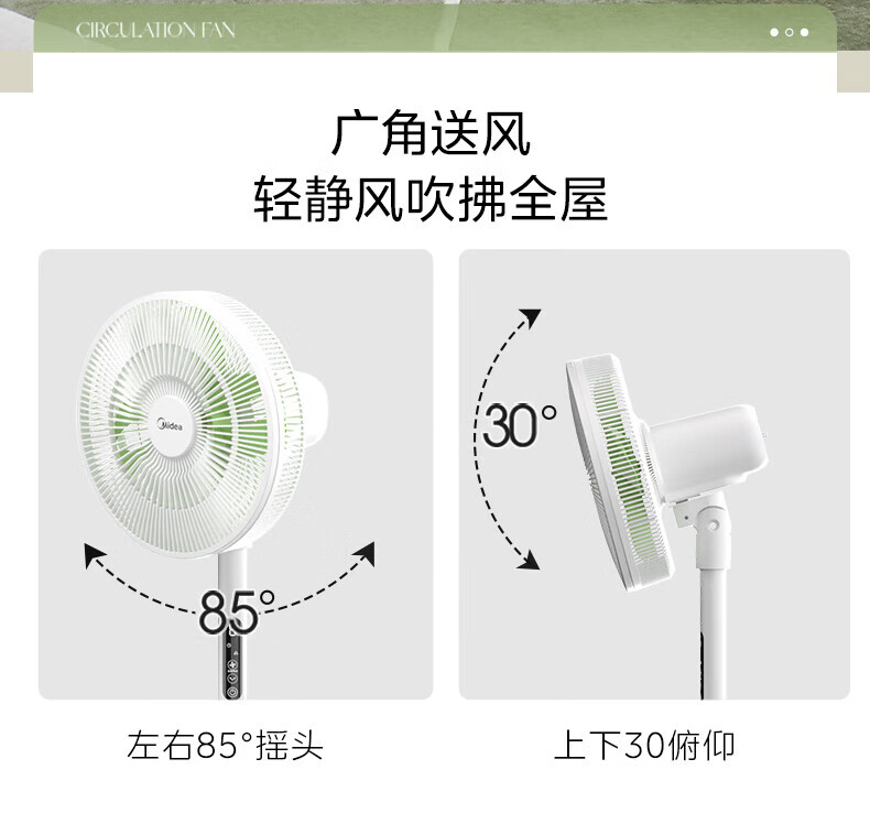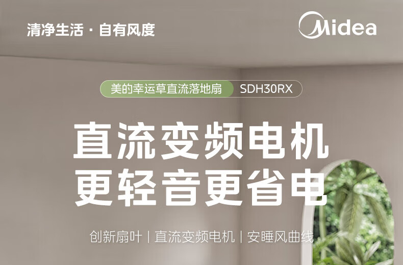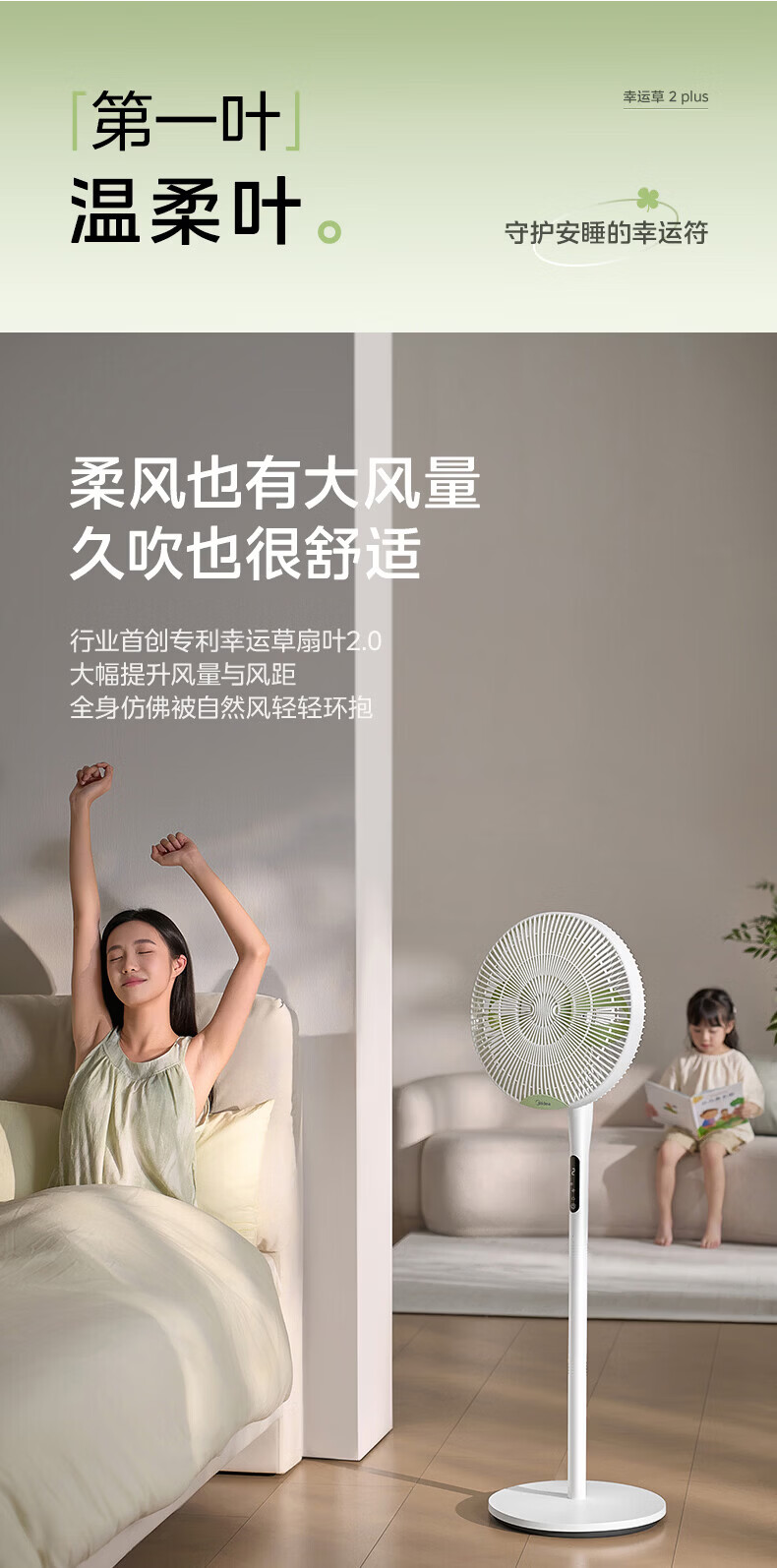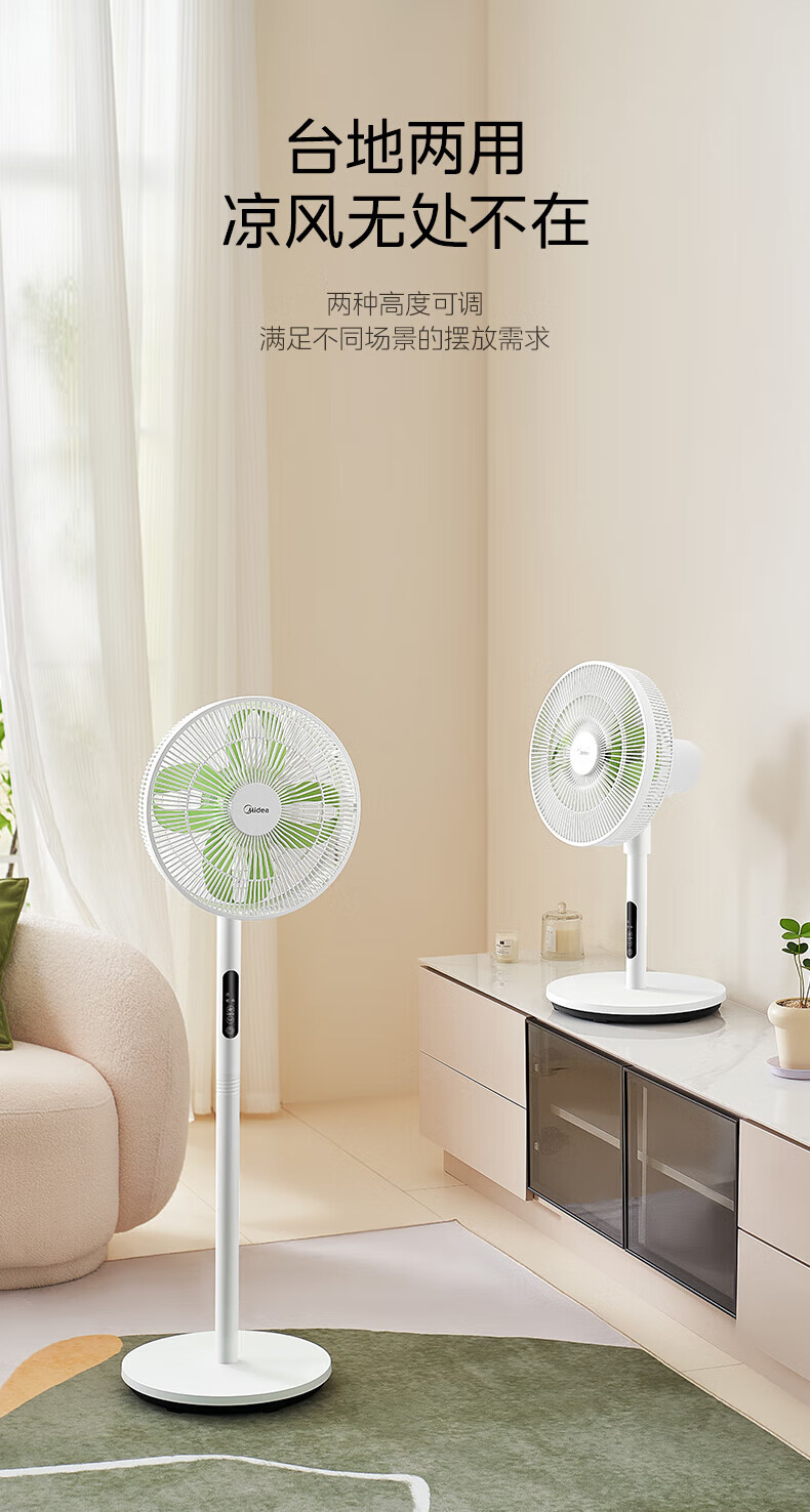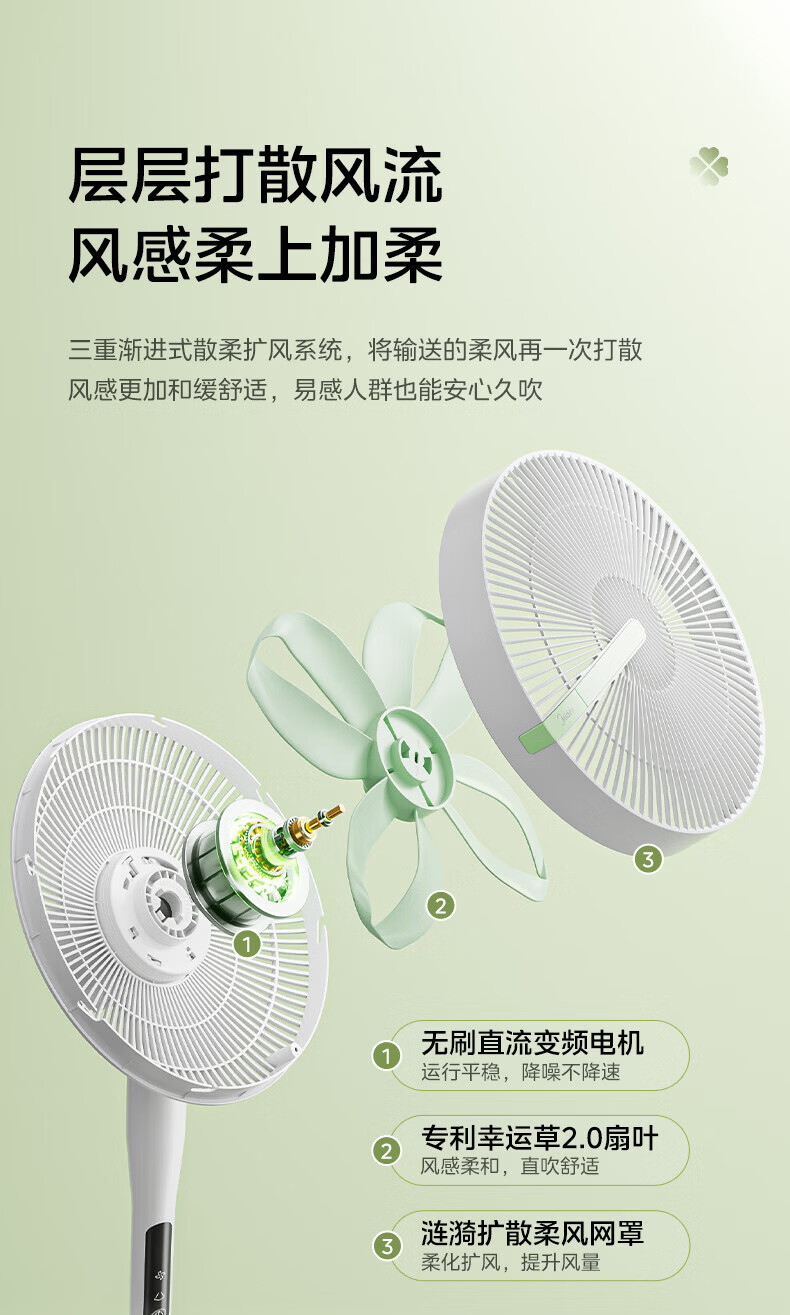 美的(Midea)【幸运草系列】 电风扇家用智能变频立式风扇大风量客厅宿舍轻音落地扇立式两用电扇家用 【30cm扇叶】触控|遥控