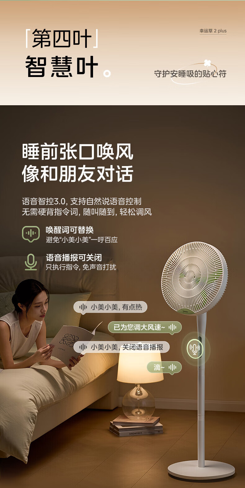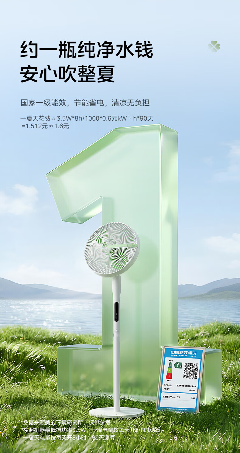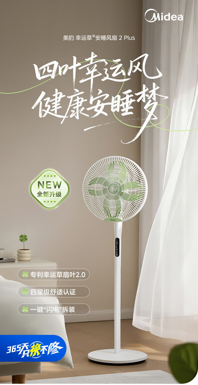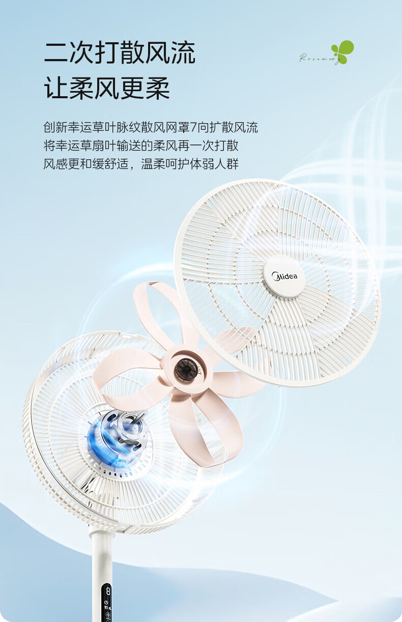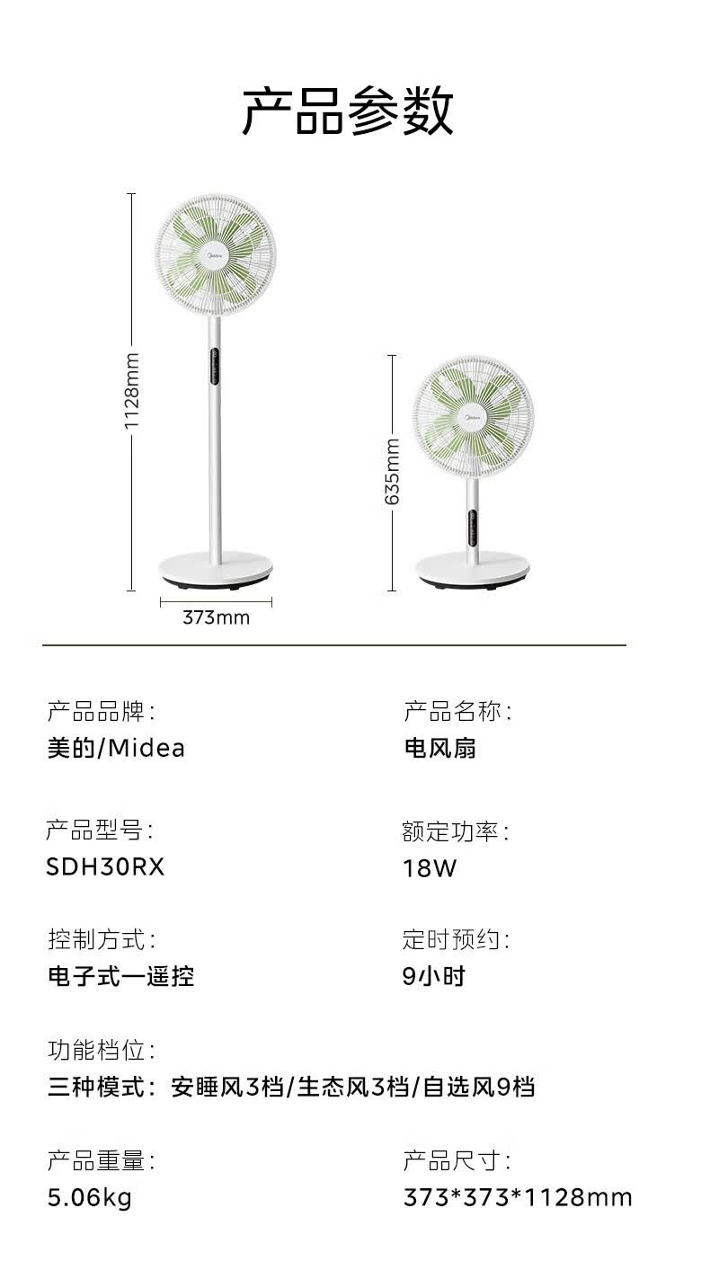 美的(Midea)【幸运草系列】 电风扇家用智能变频立式风扇大风量客厅宿舍轻音落地扇立式两用电扇家用 【30cm扇叶】触控|遥控