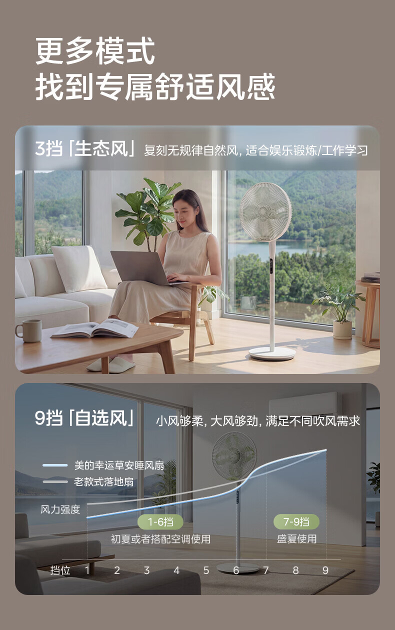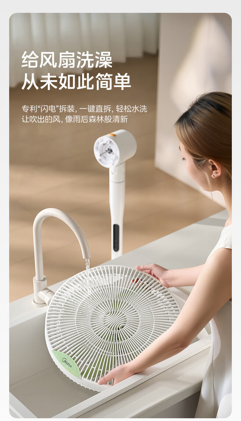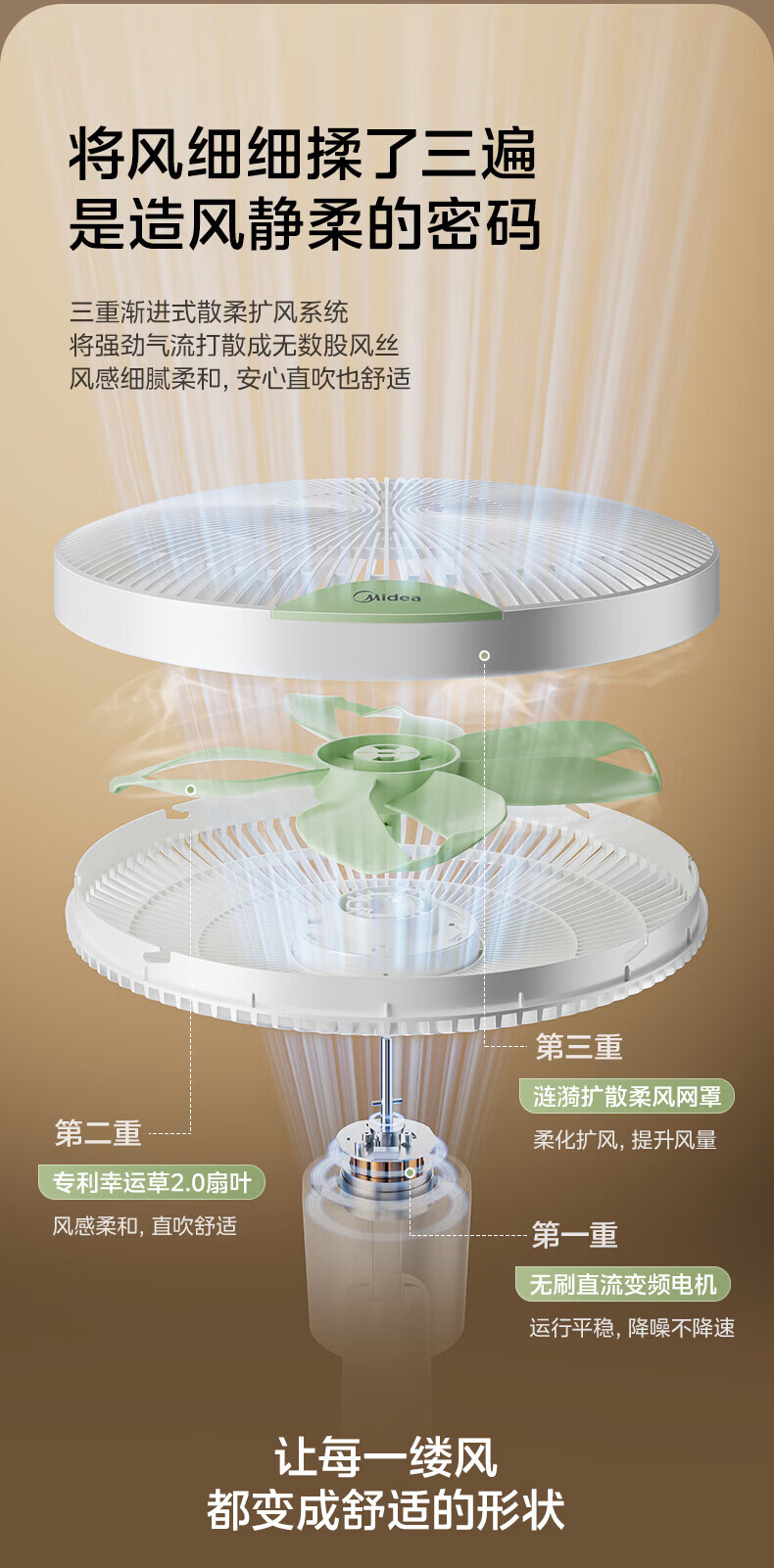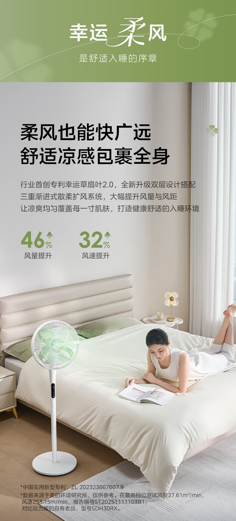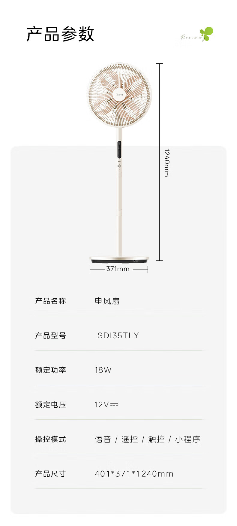 美的(Midea)【幸运草系列】 电风扇家用智能变频立式风扇大风量客厅宿舍轻音落地扇立式两用电扇家用 【30cm扇叶】触控|遥控