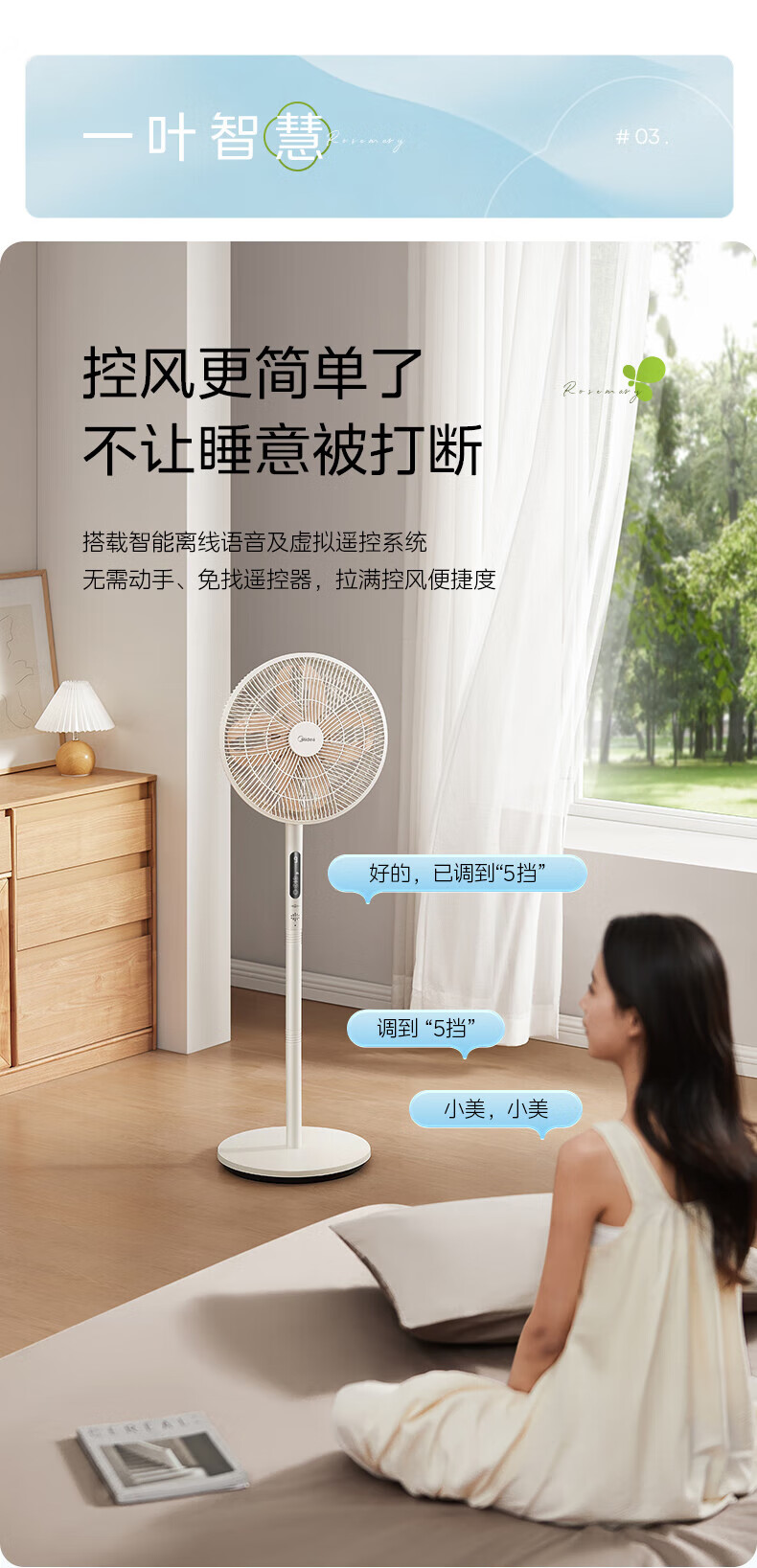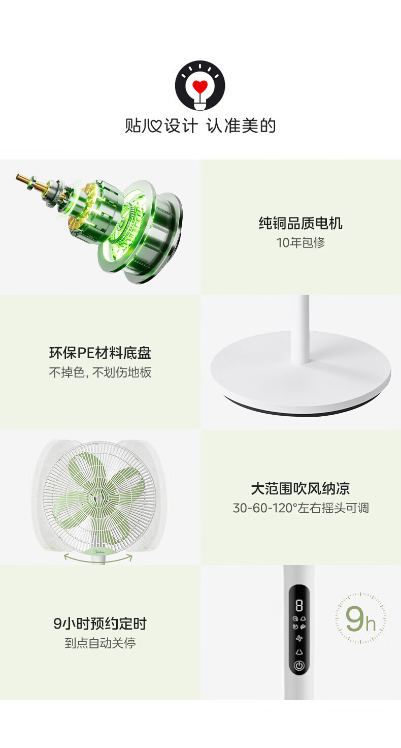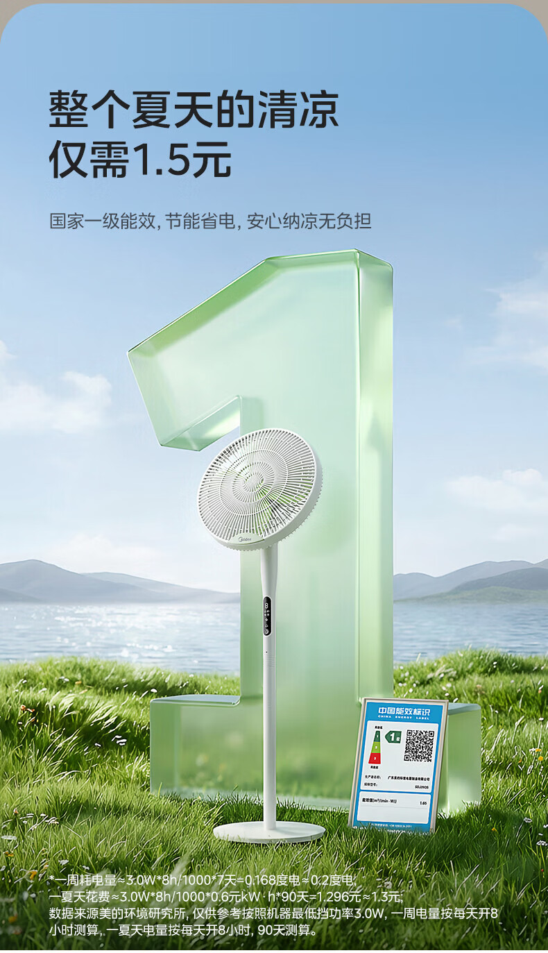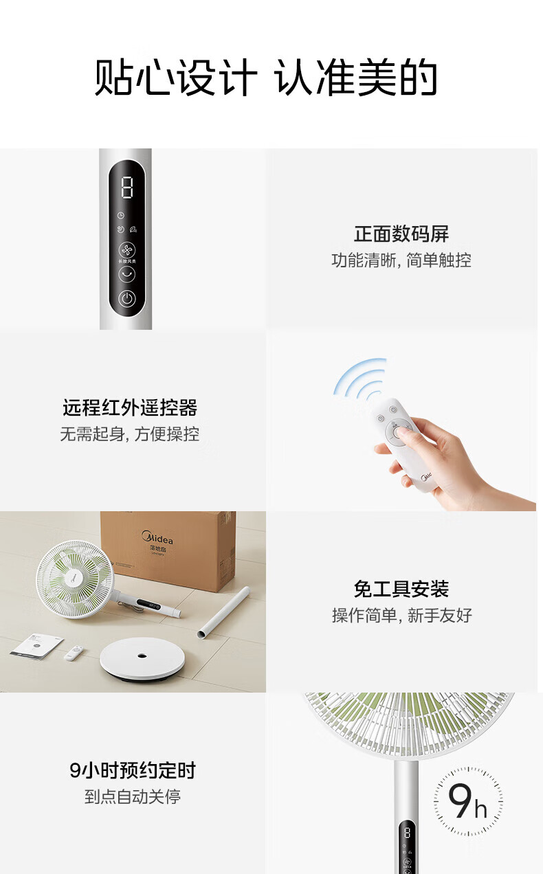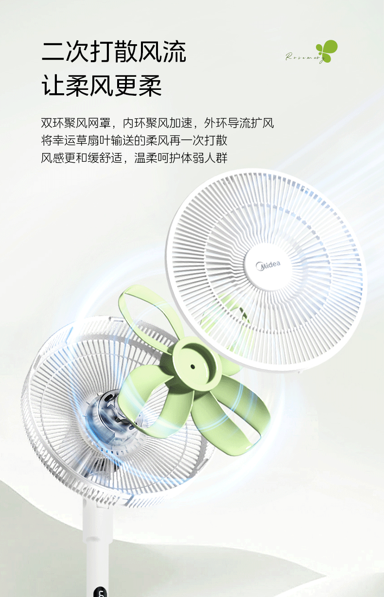 美的(Midea)【幸运草系列】 电风扇家用智能变频立式风扇大风量客厅宿舍轻音落地扇立式两用电扇家用 【30cm扇叶】触控|遥控