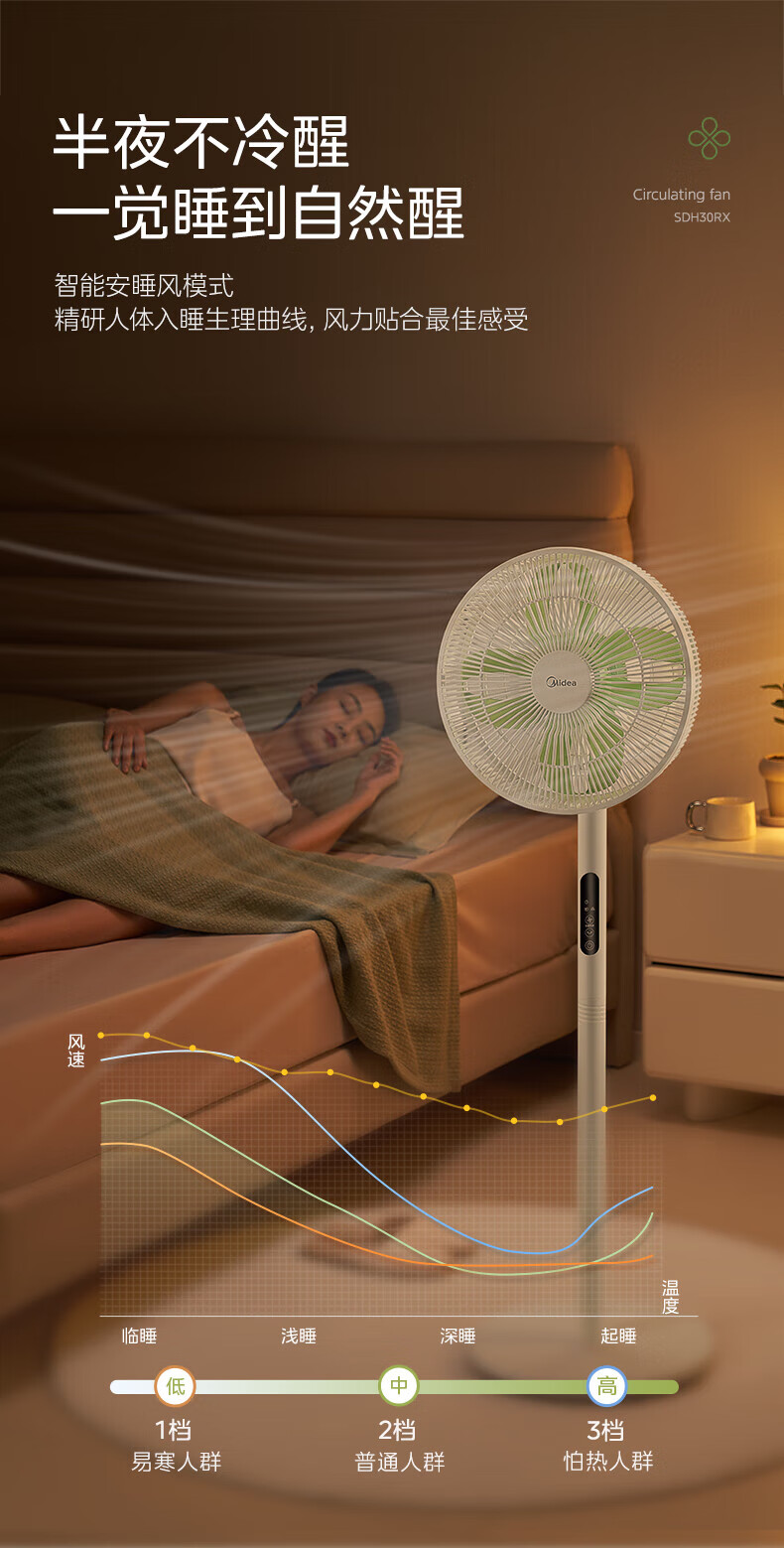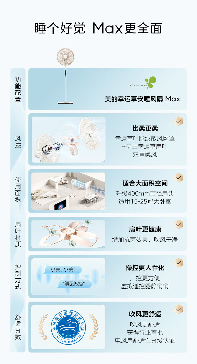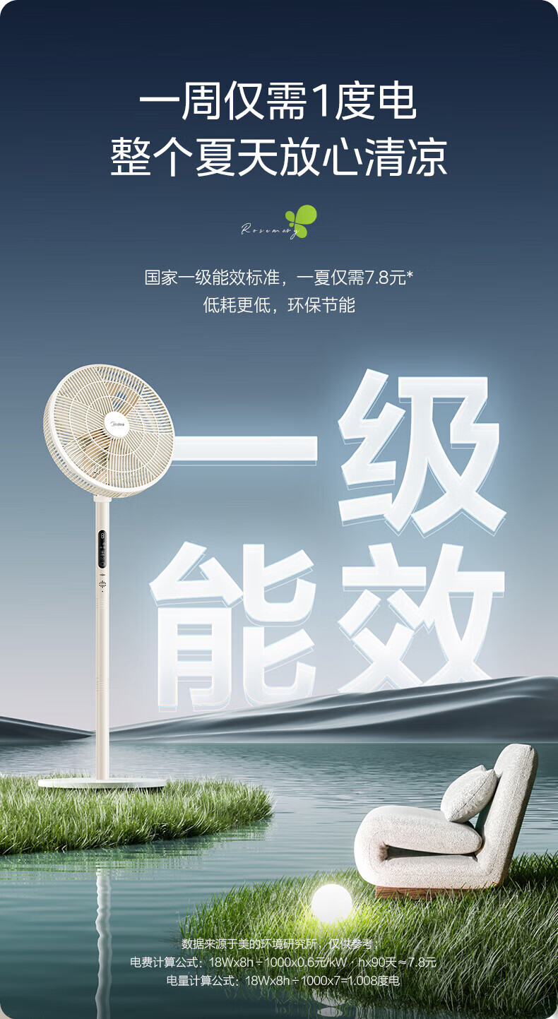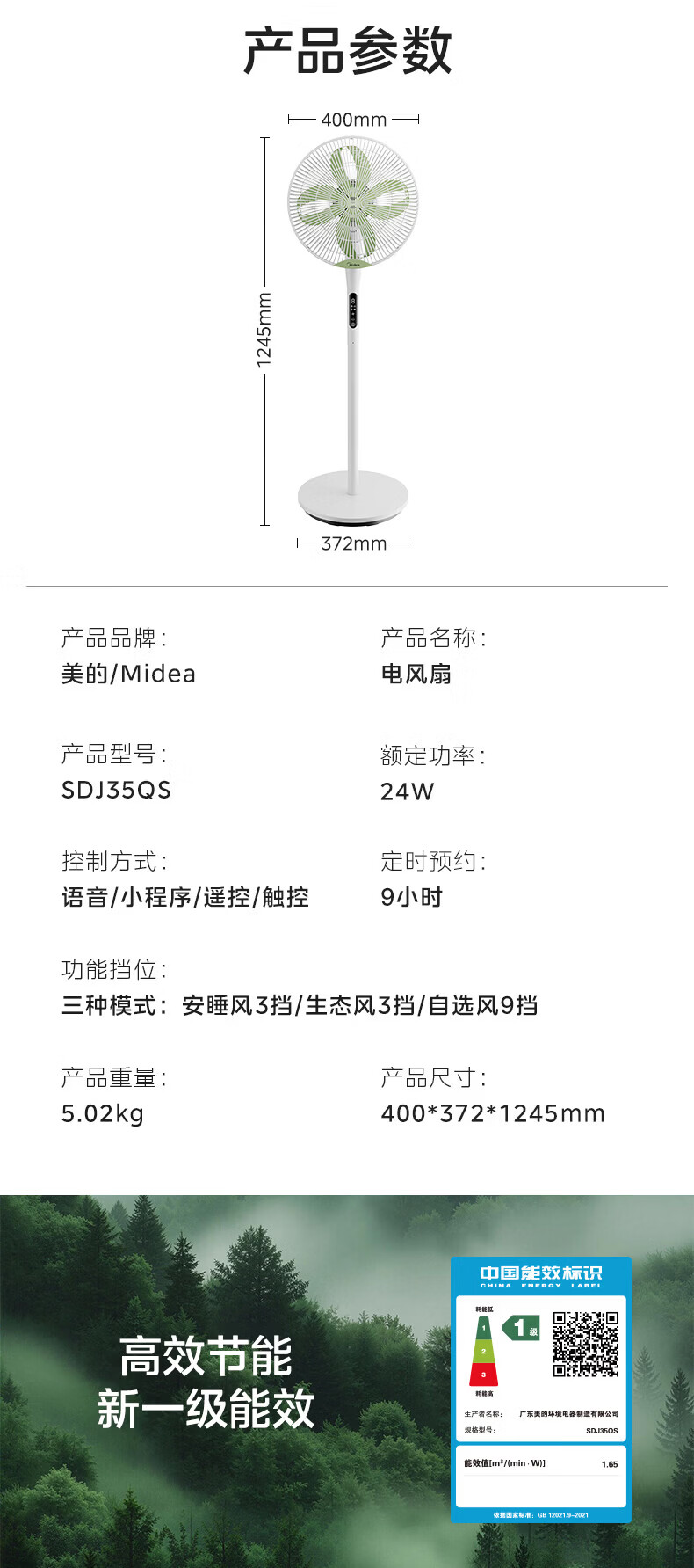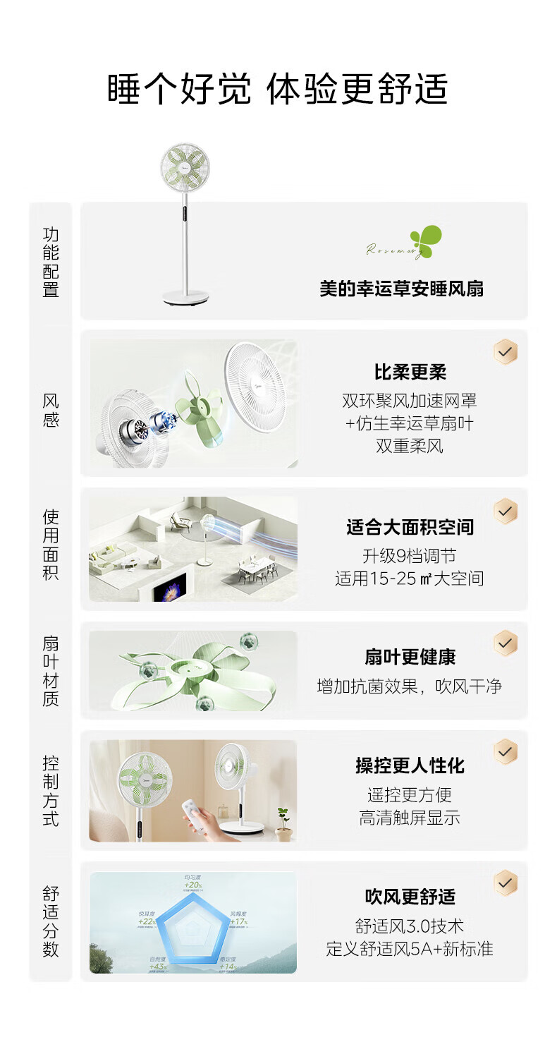 美的(Midea)【幸运草系列】 电风扇家用智能变频立式风扇大风量客厅宿舍轻音落地扇立式两用电扇家用 【30cm扇叶】触控|遥控
