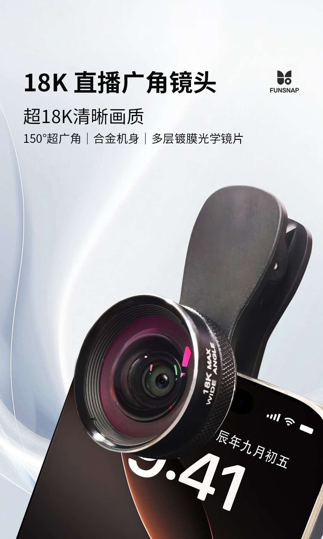逗映(FUNSNAP)18K手机直播外置广角镜头高清摄像拍照视频出片神器单反级手机镜头 【18K超广角镜头】送收纳袋+双夹子