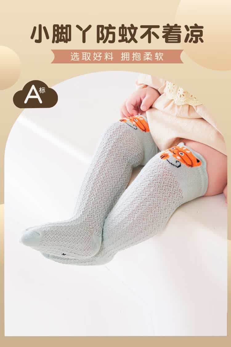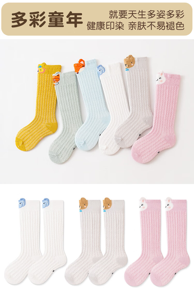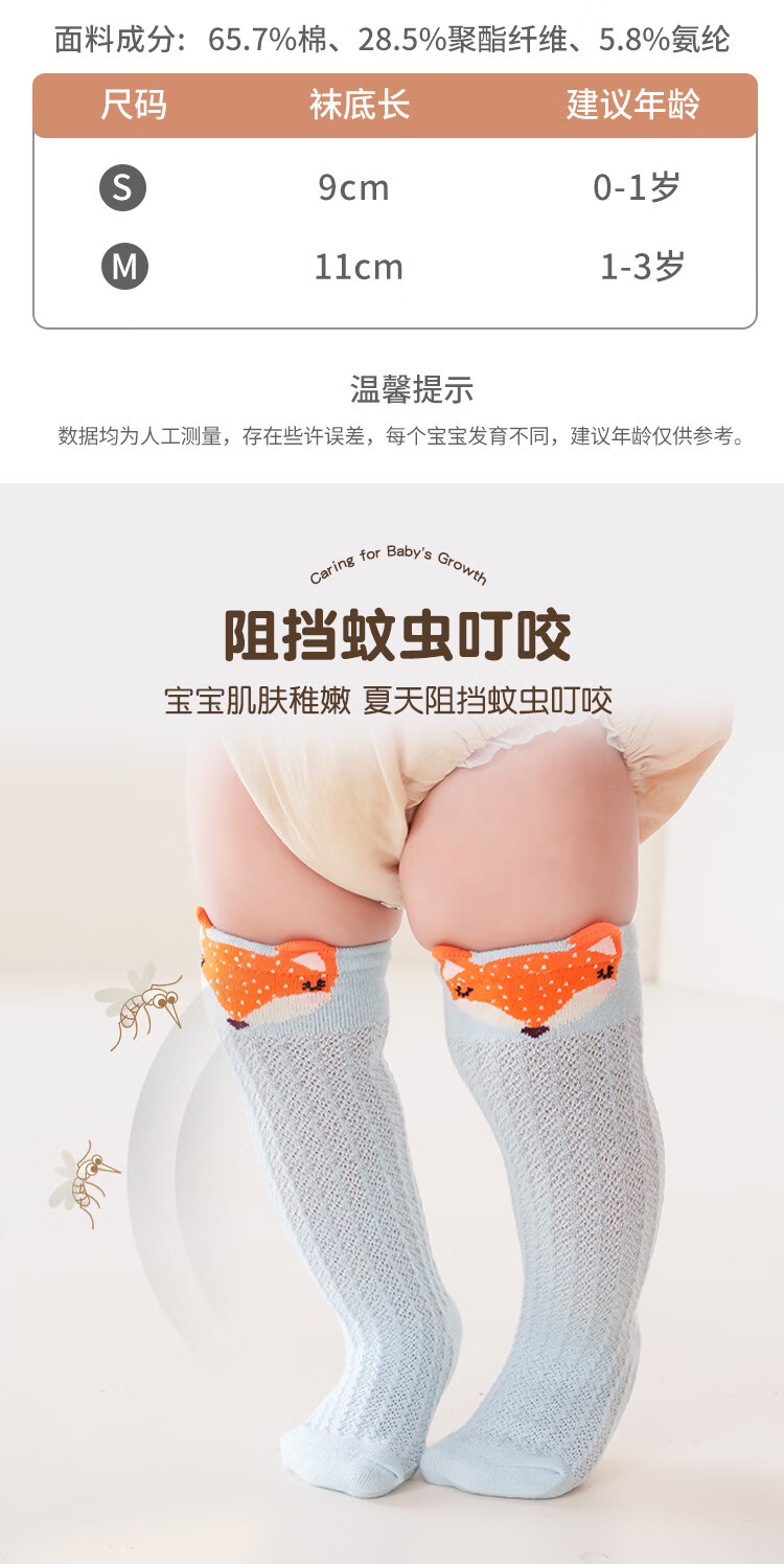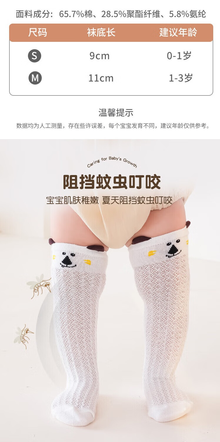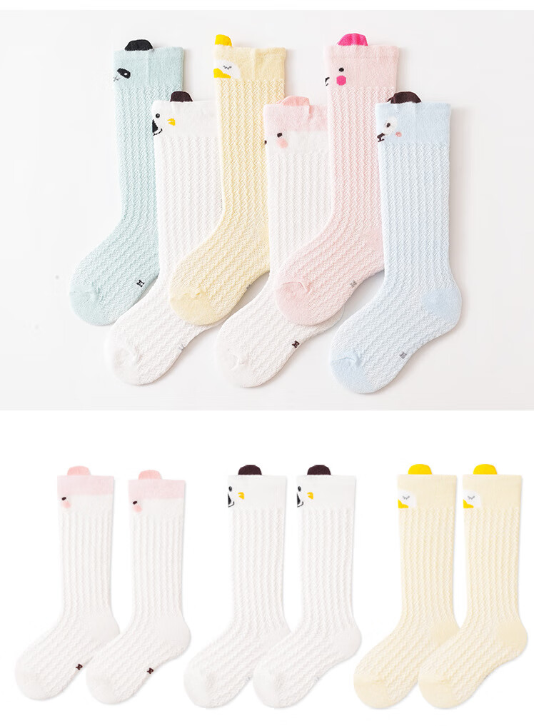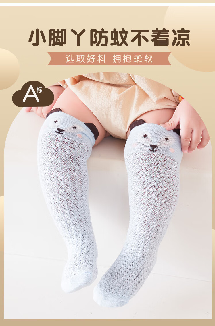 彩虹房子婴儿防蚊袜夏季薄款宝宝透气中筒袜卡通耳朵过膝儿童袜子 防蚊袜随机 3双 0-6月 S (适合脚长5-10CM)
