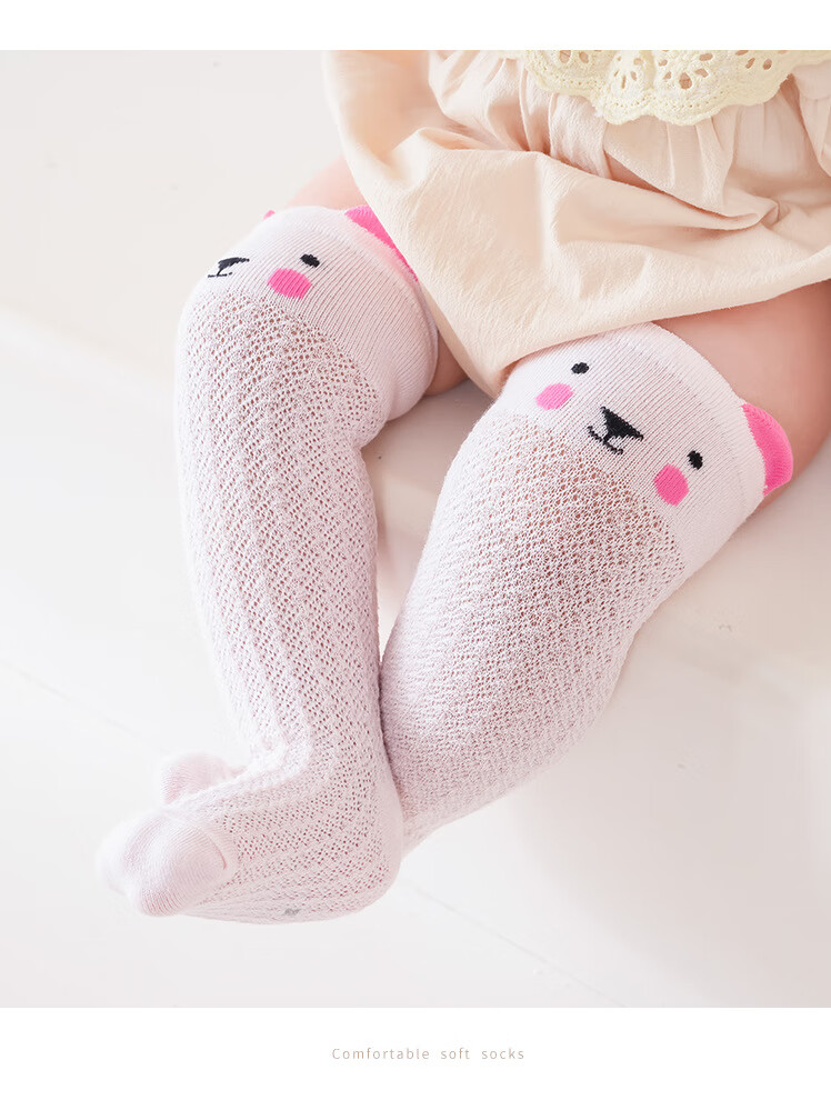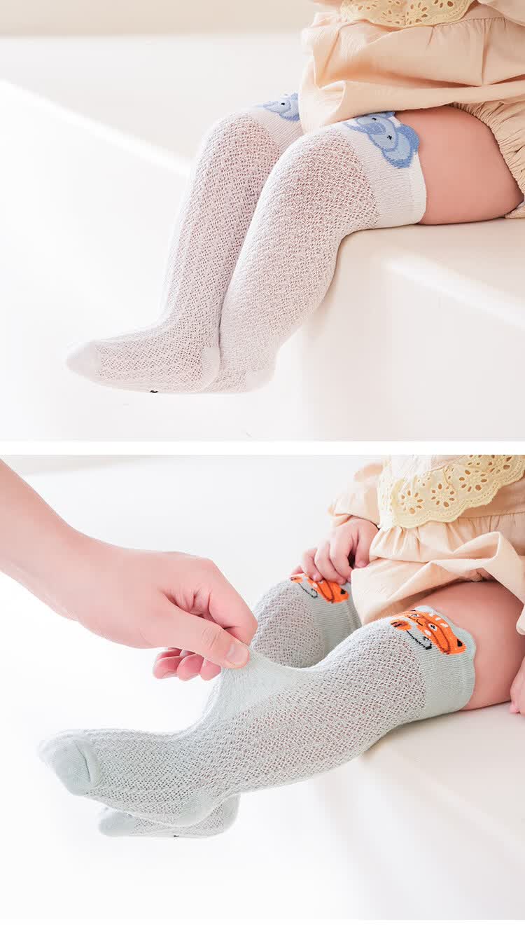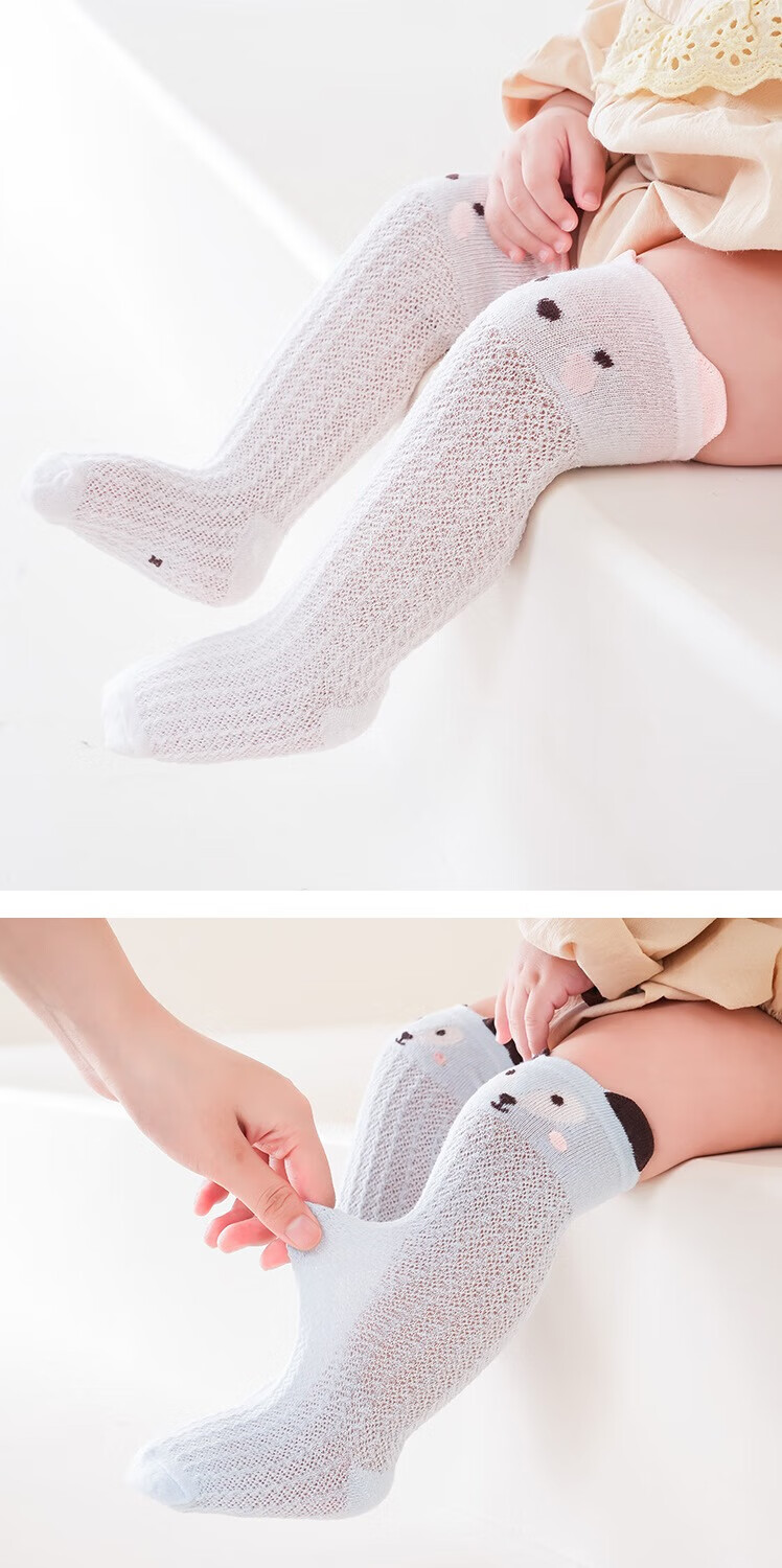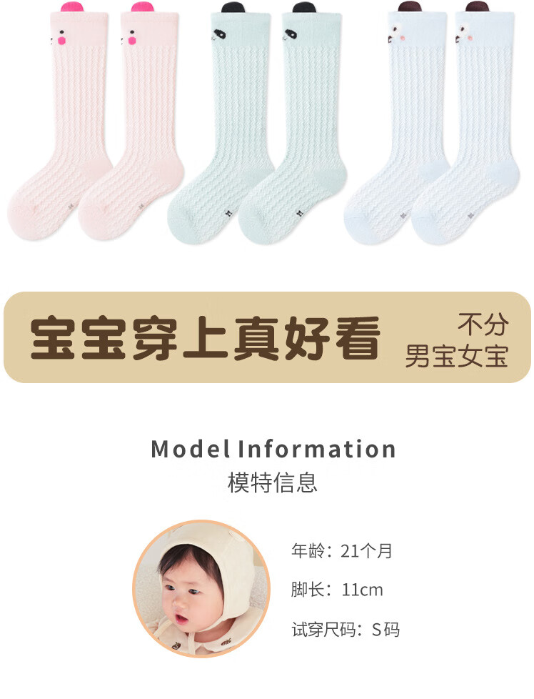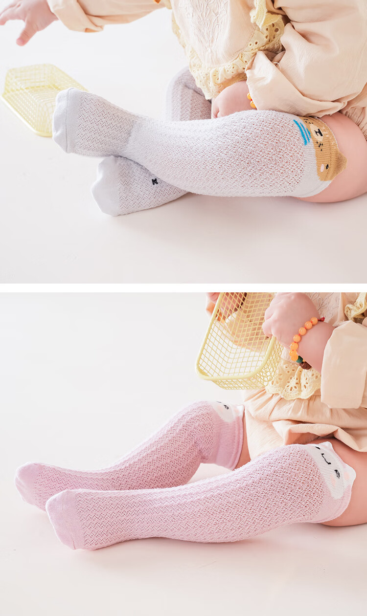 彩虹房子婴儿防蚊袜夏季薄款宝宝透气中筒袜卡通耳朵过膝儿童袜子 防蚊袜随机 3双 0-6月 S (适合脚长5-10CM)