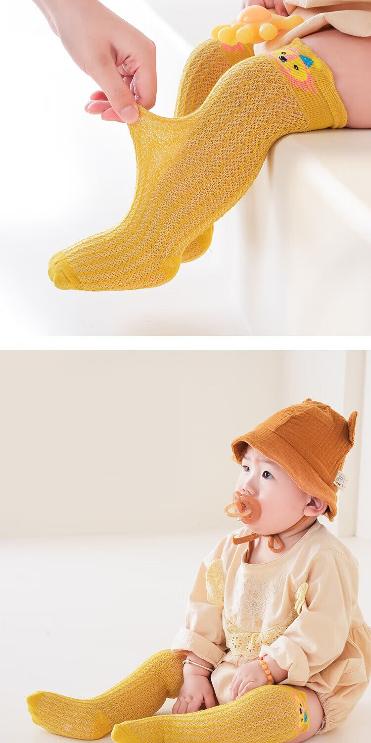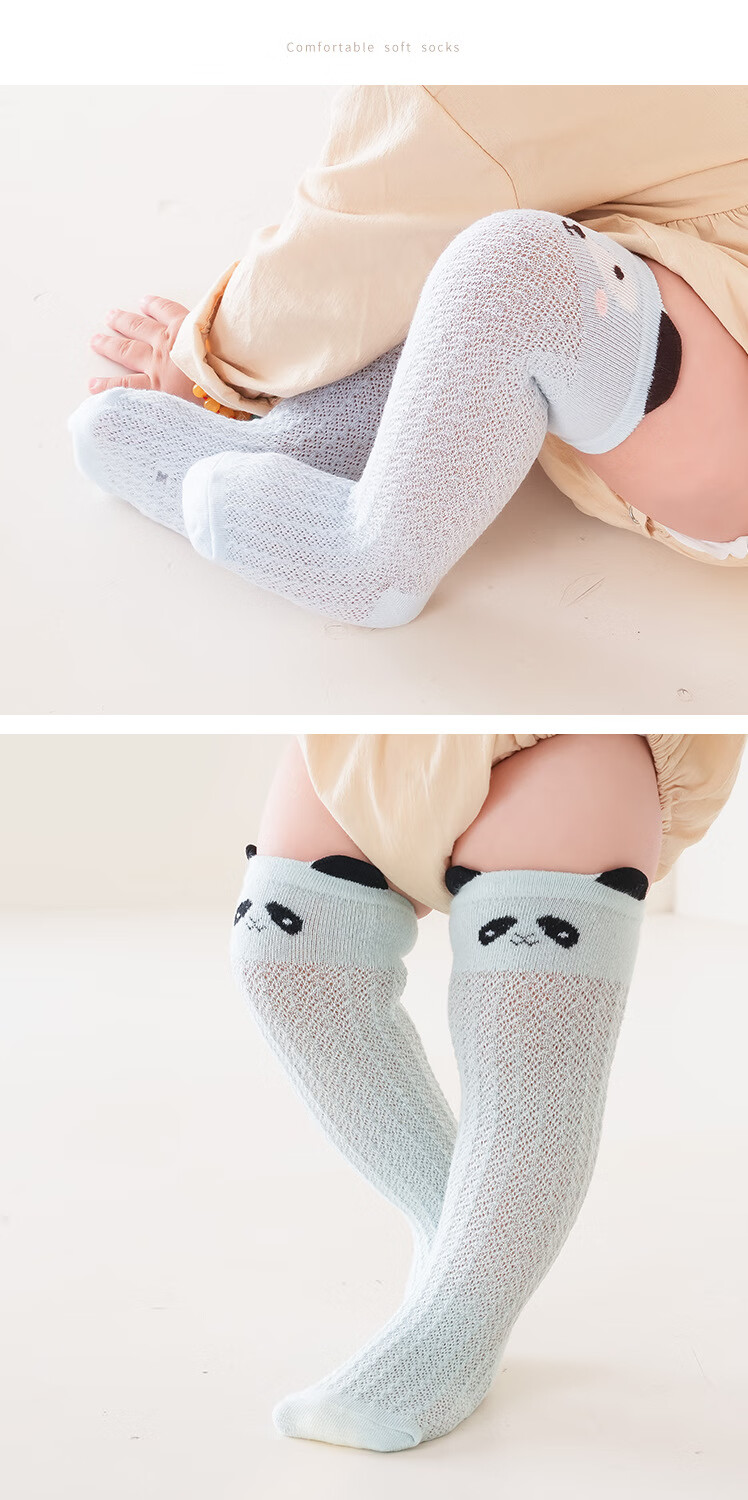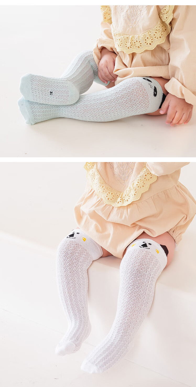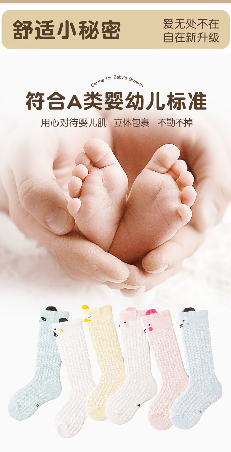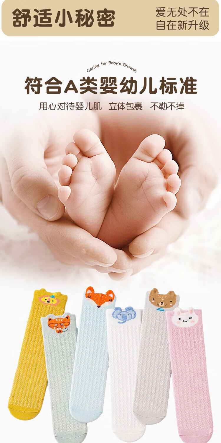 彩虹房子婴儿防蚊袜夏季薄款宝宝透气中筒袜卡通耳朵过膝儿童袜子 防蚊袜随机 3双 0-6月 S (适合脚长5-10CM)