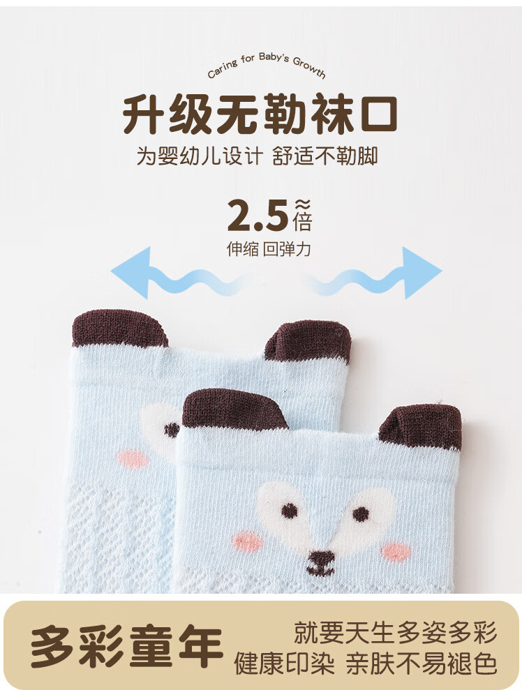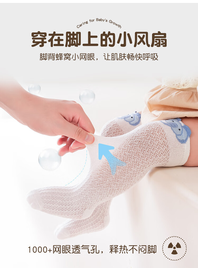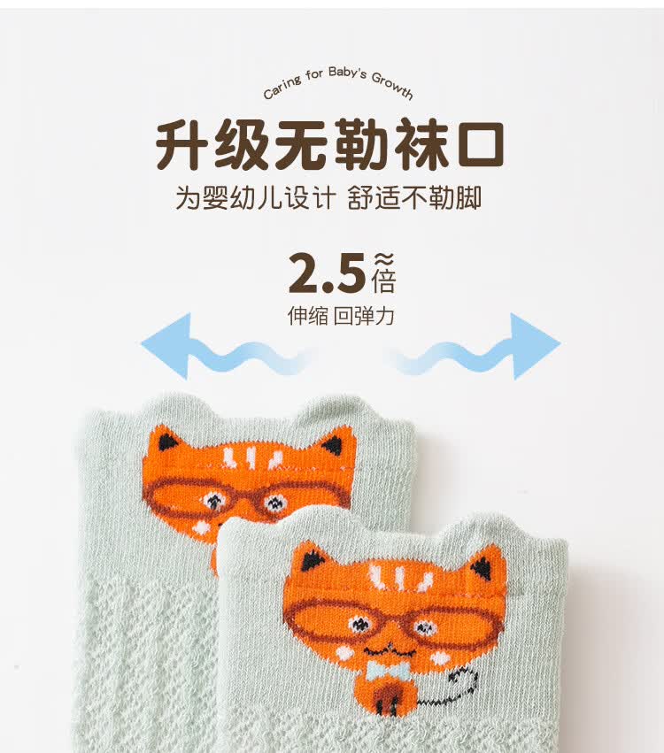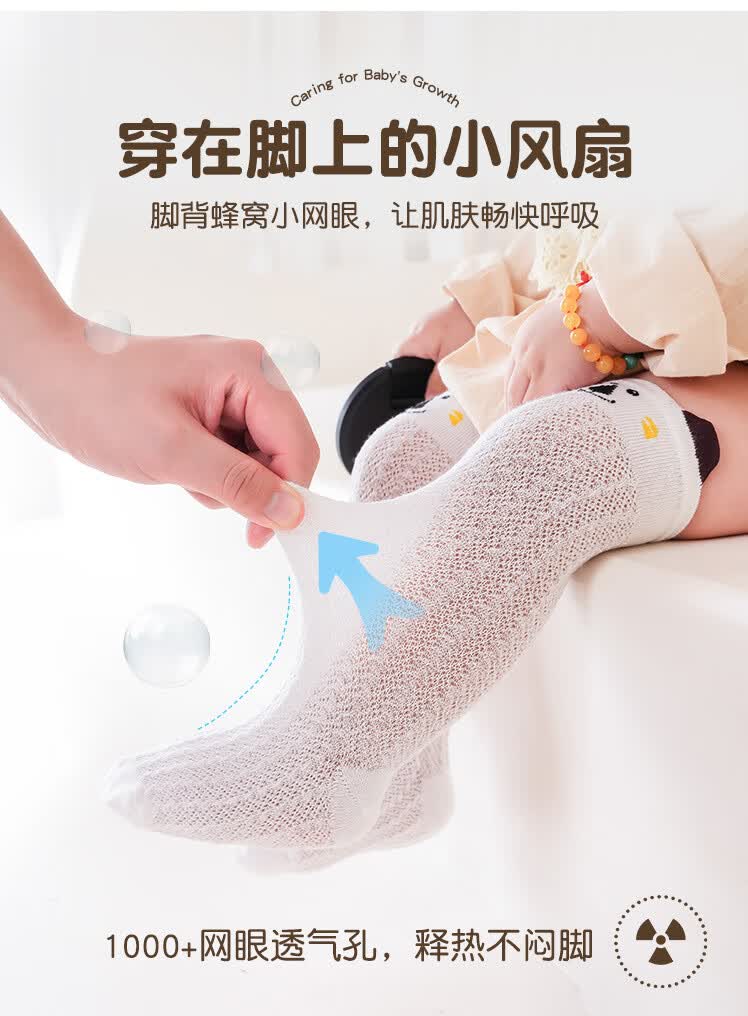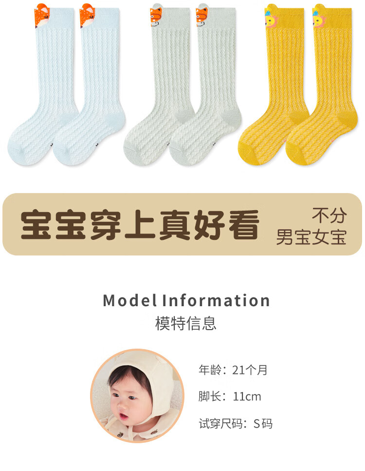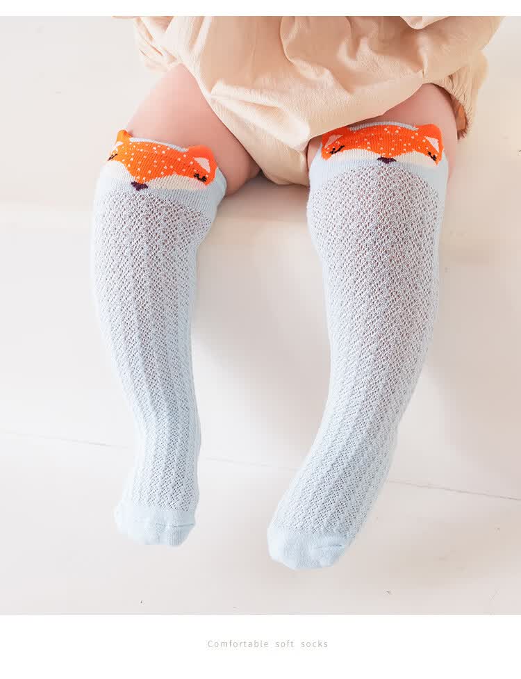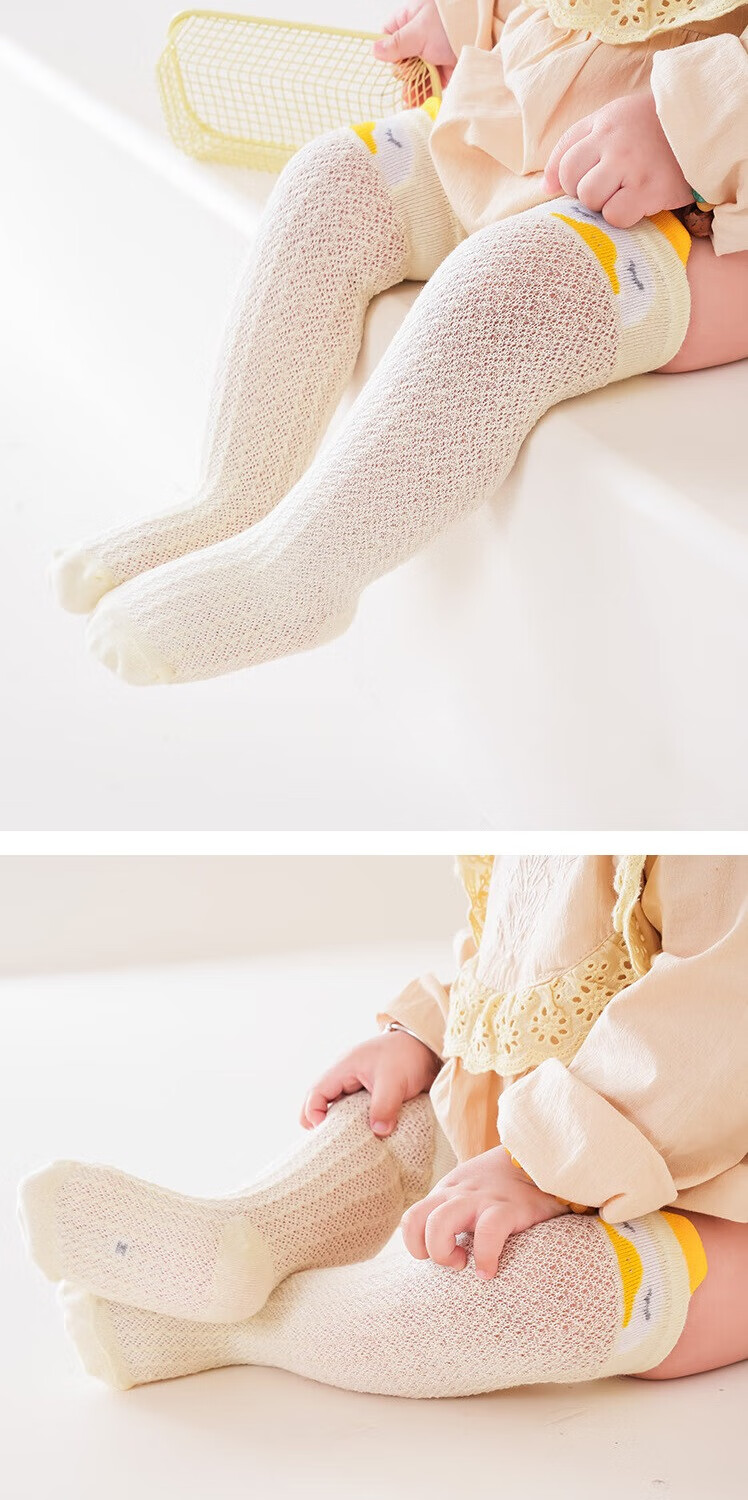 彩虹房子婴儿防蚊袜夏季薄款宝宝透气中筒袜卡通耳朵过膝儿童袜子 防蚊袜随机 3双 0-6月 S (适合脚长5-10CM)
