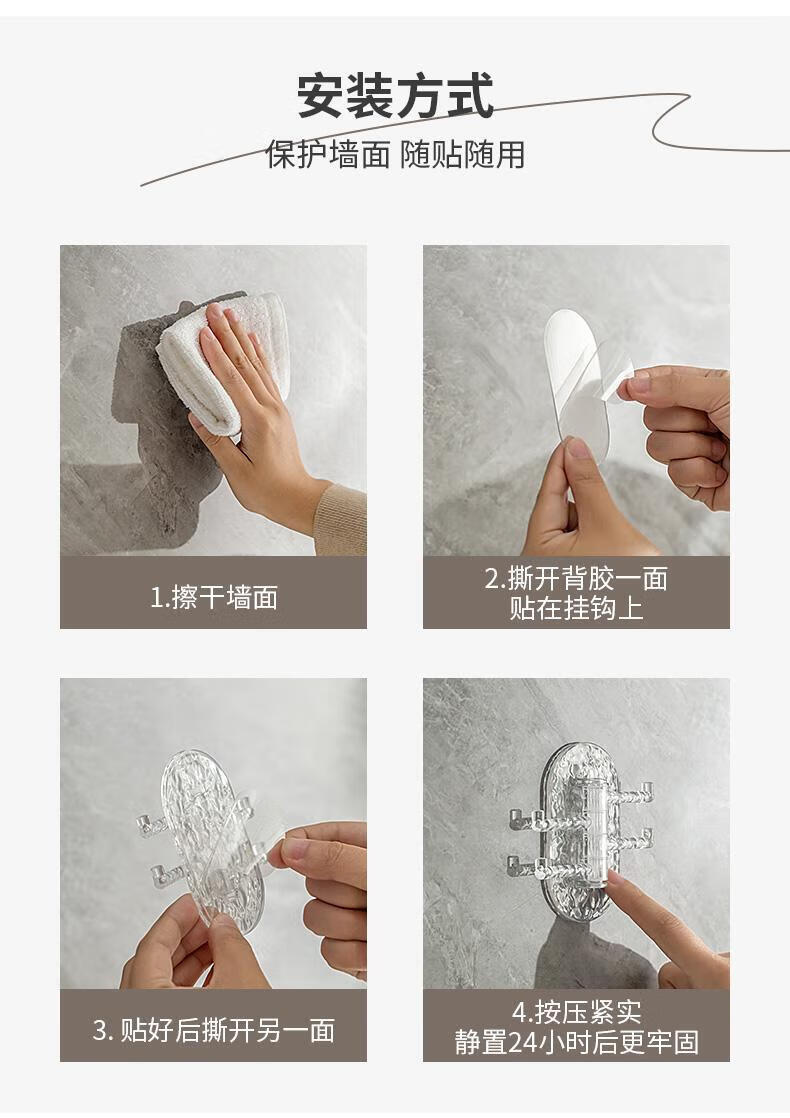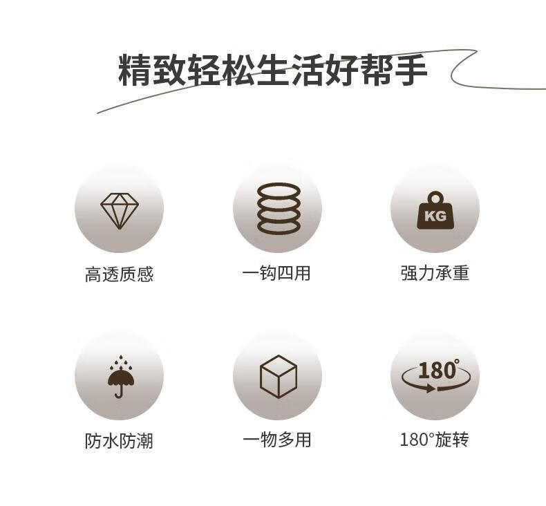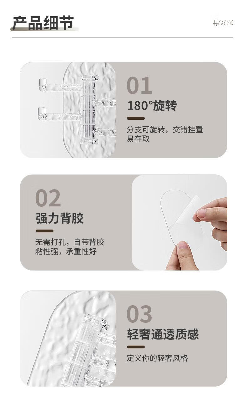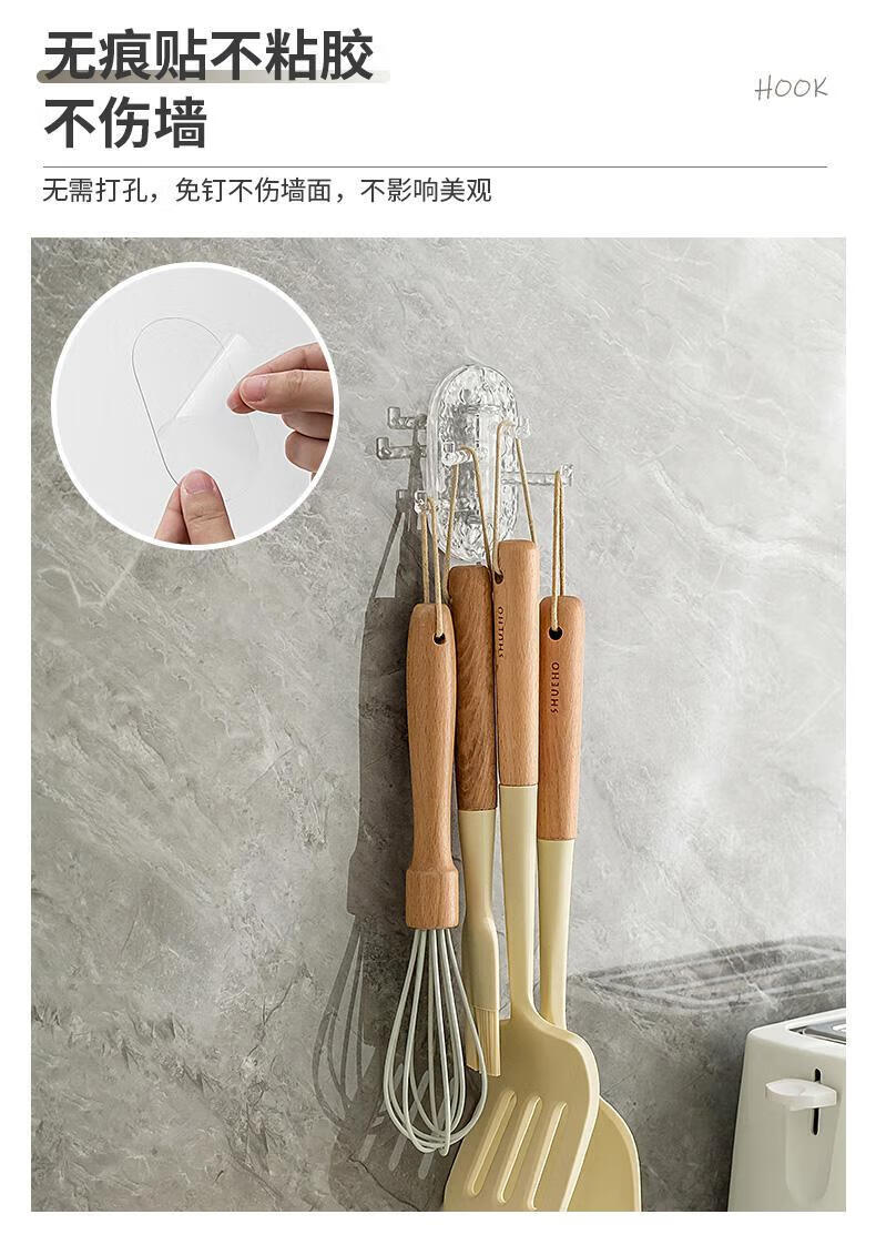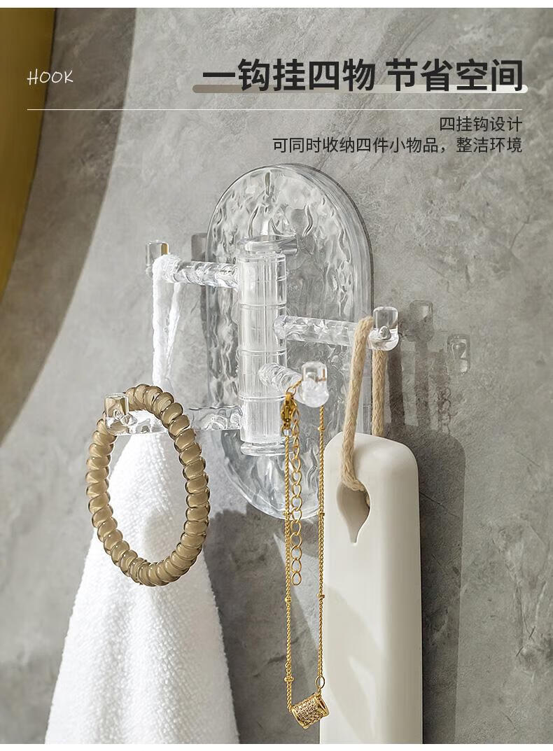 【工厂直发】创意多功能可旋转4联挂钩强力粘贴无痕免打孔钉厨房 透绿色-1个