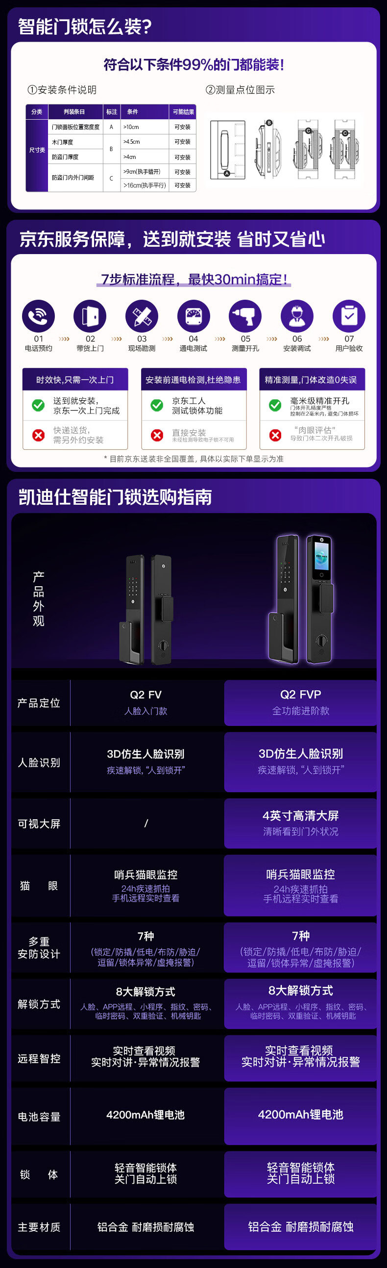 凯迪仕(KAADAS)智能门锁 可视猫眼室内屏人脸识别指纹 密码 Q2 FVP