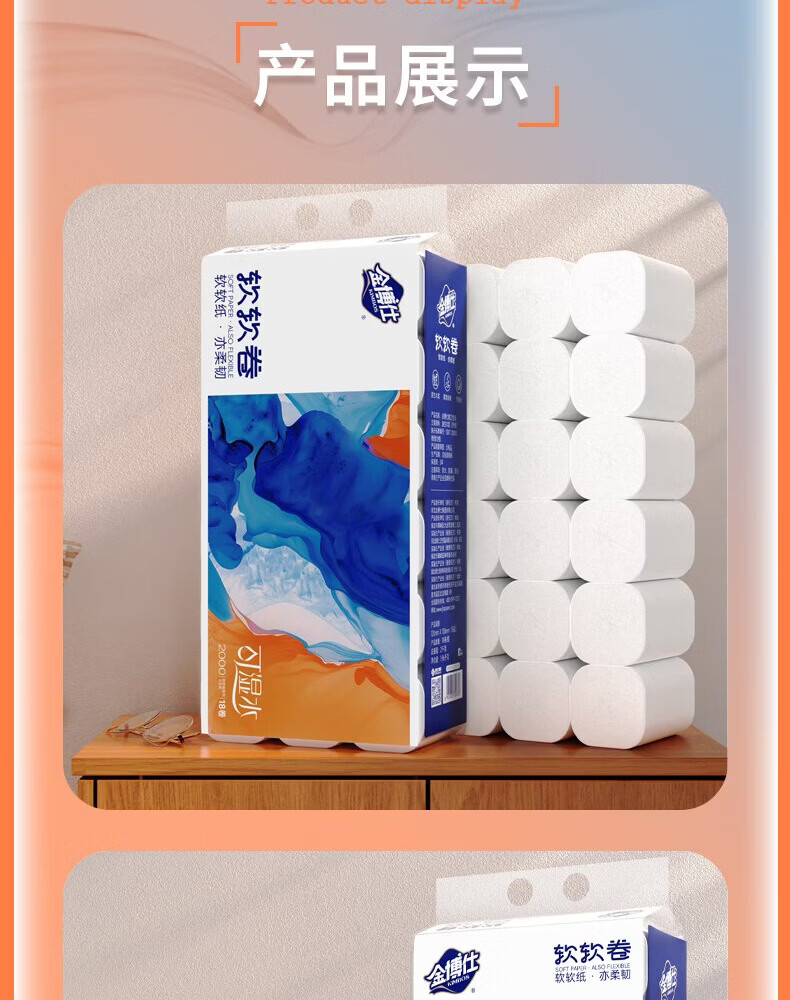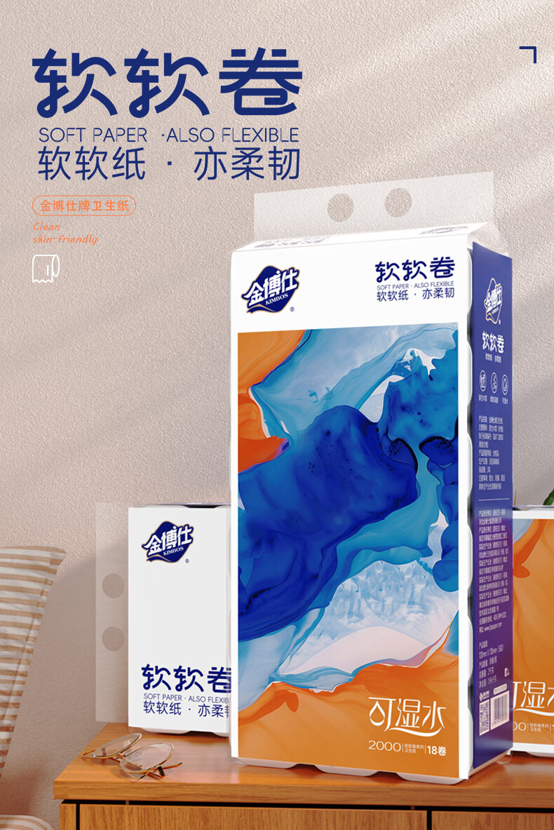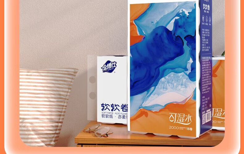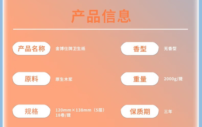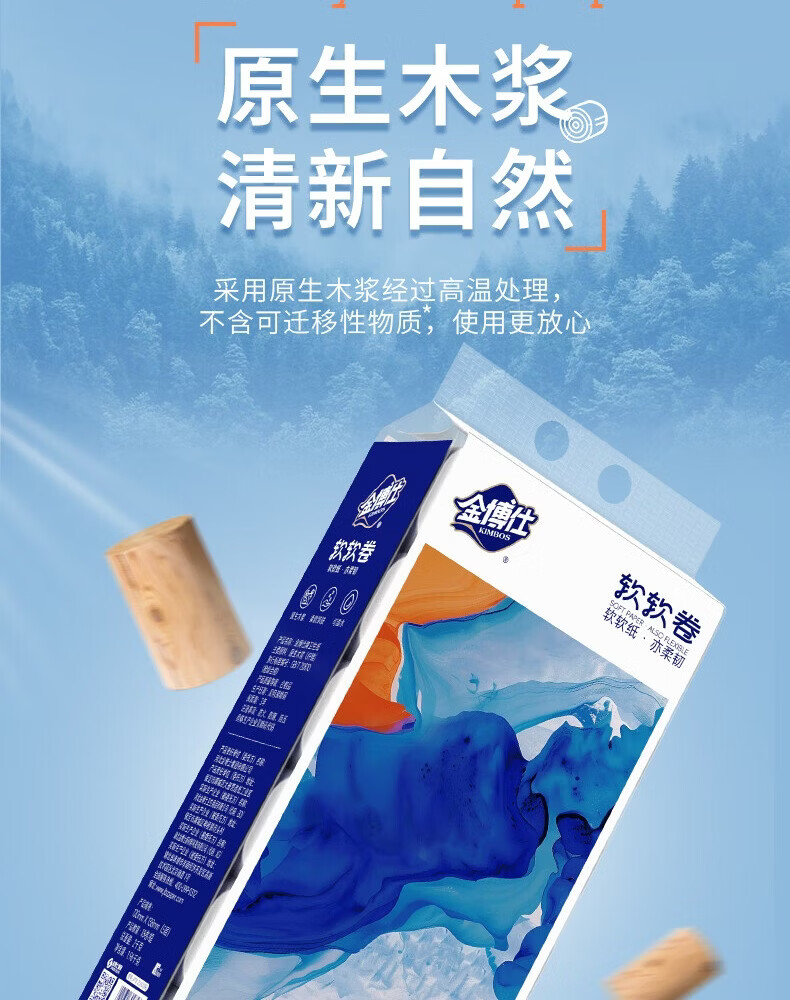 金博仕软软无芯卷纸5层2000克/18卷卫生纸原生木浆厕纸擦手纸4斤实芯