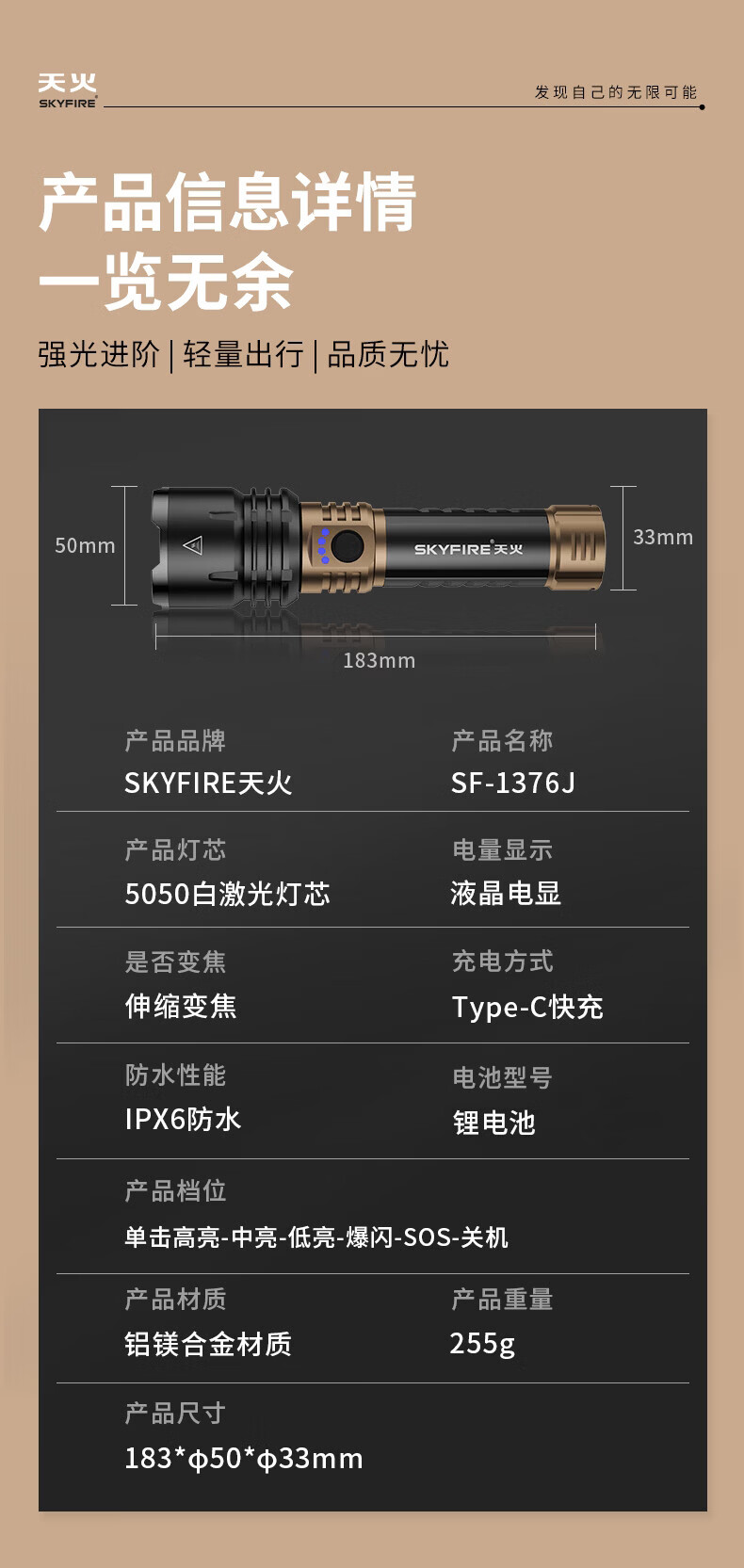 天火手电筒苍龙二代强光超亮变焦远射超长续航充电户外夜钓露营工地 4千毫安【苍龙二代黑金】1350流明-可燃火