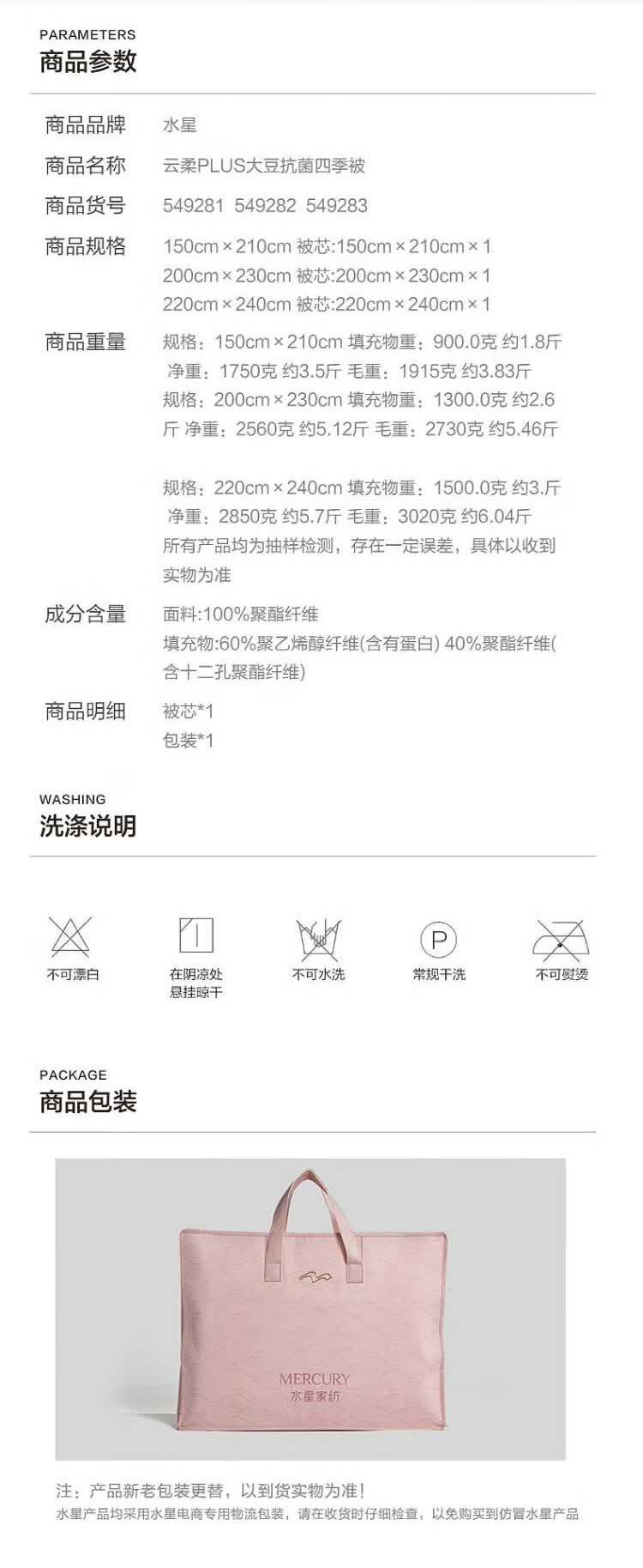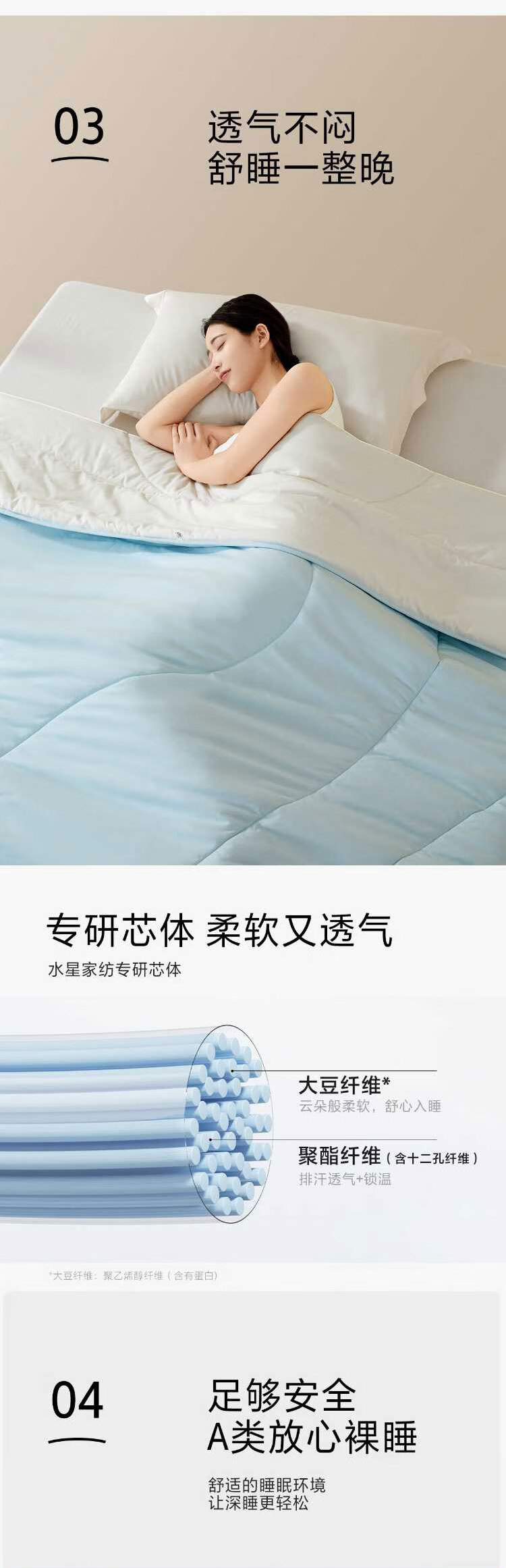 水星家纺被子大豆被60%大豆纤维被春秋被双人空调被芯200x230cm约5.1斤