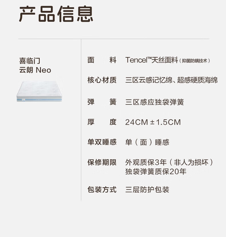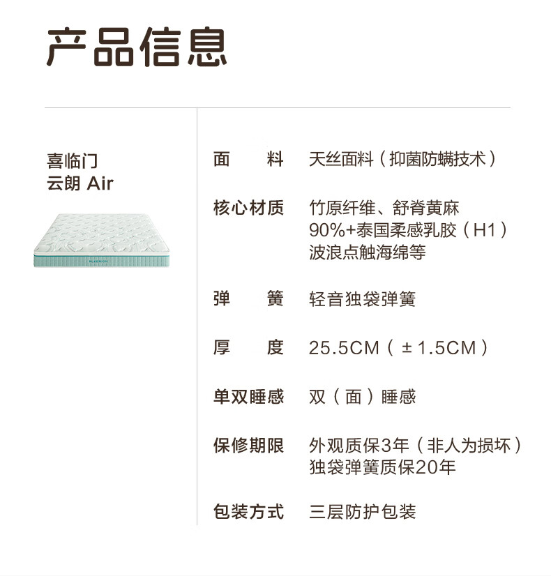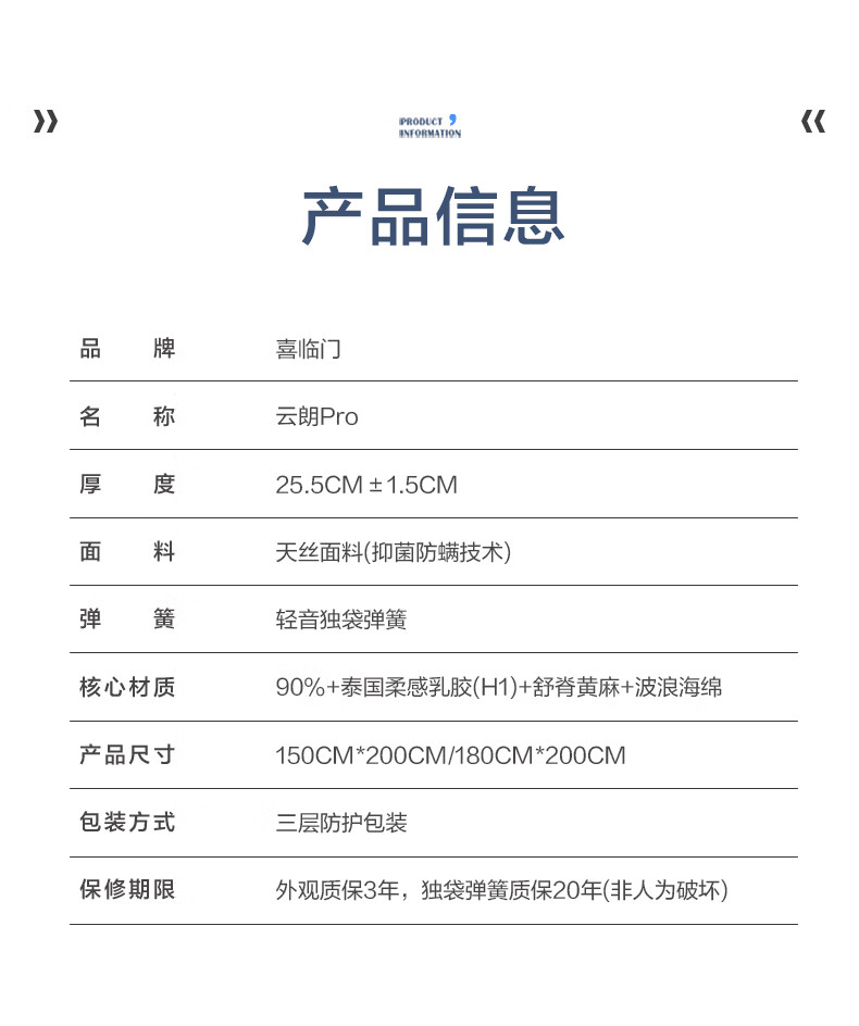 喜临门云朗弹簧床垫 抗菌防螨 泰国进口乳胶床垫正反双睡 云朗Pro【指定尺寸闪送】-厚25.5cm 1.8*2米