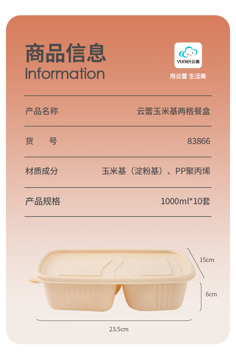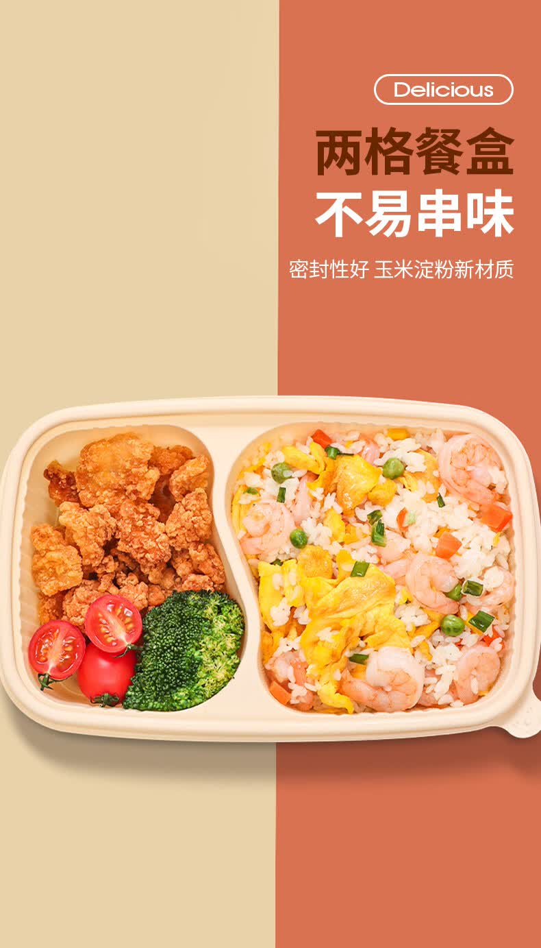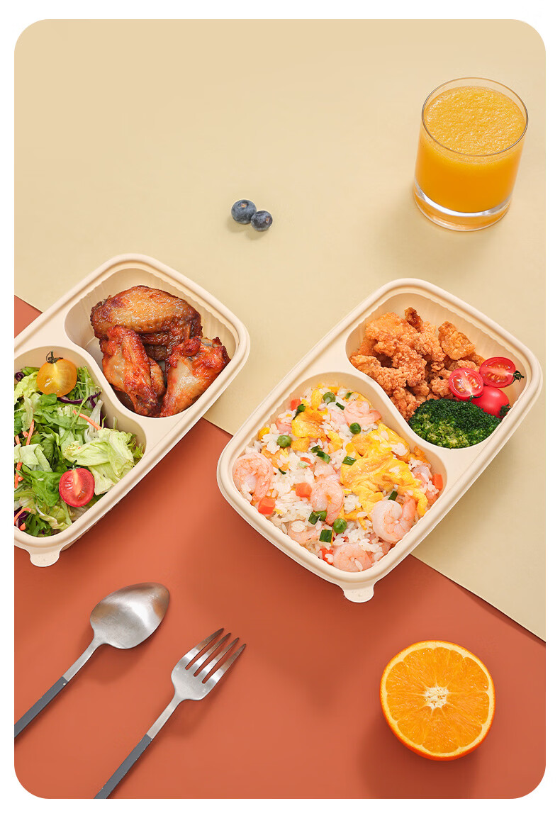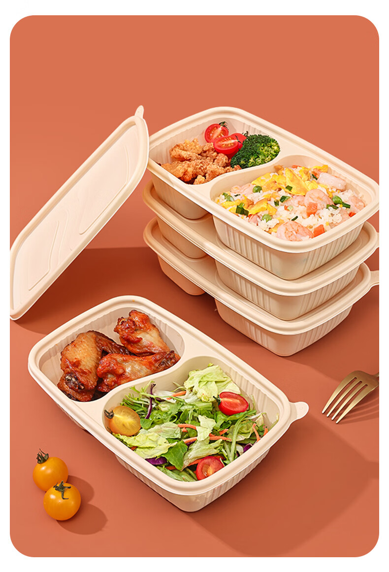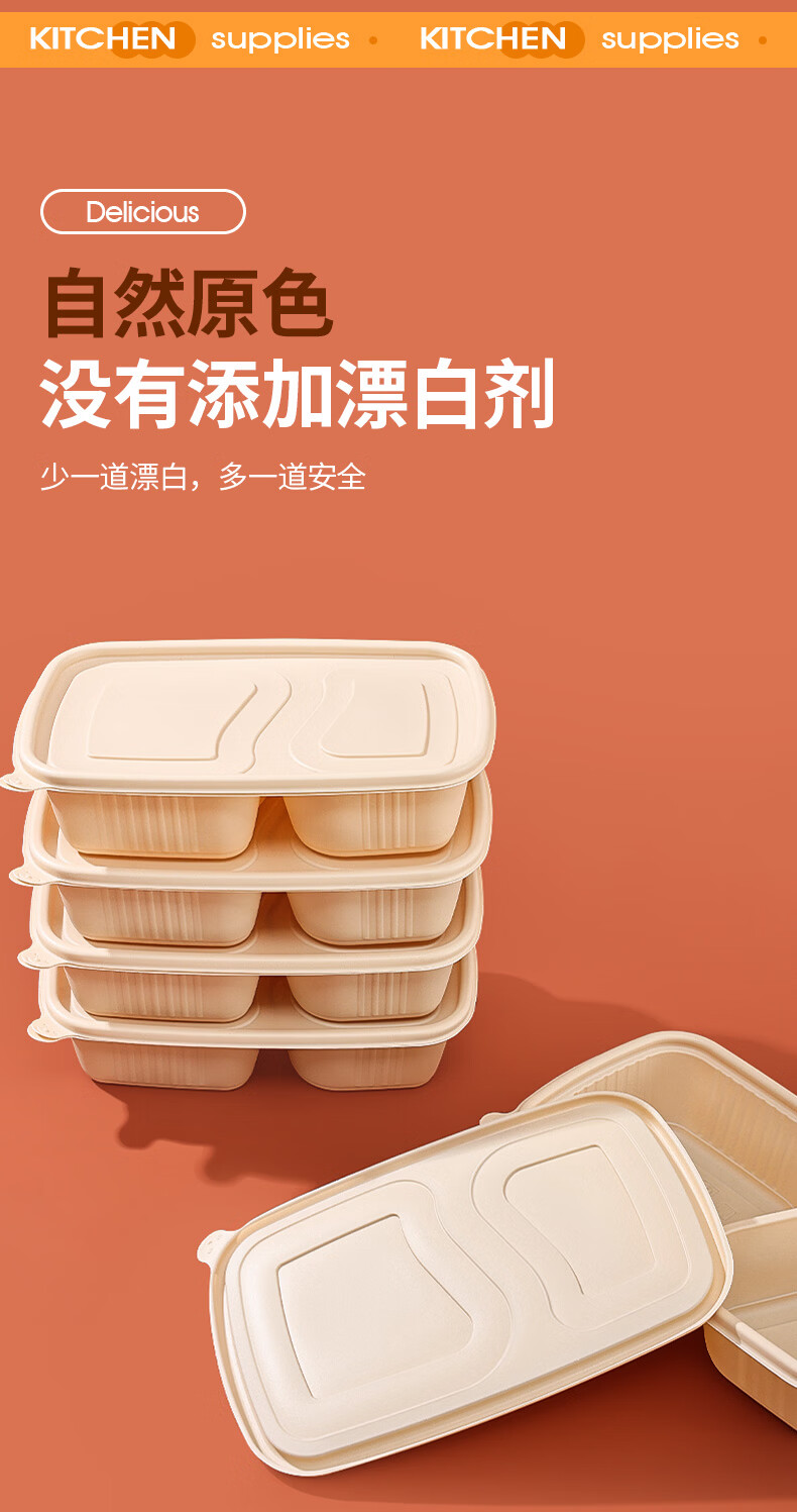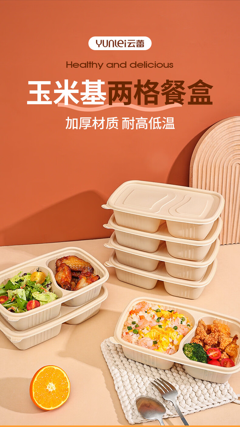 云蕾一次性餐盒饭盒带盖打包可微波加厚玉米淀粉露营1000ml*10套
