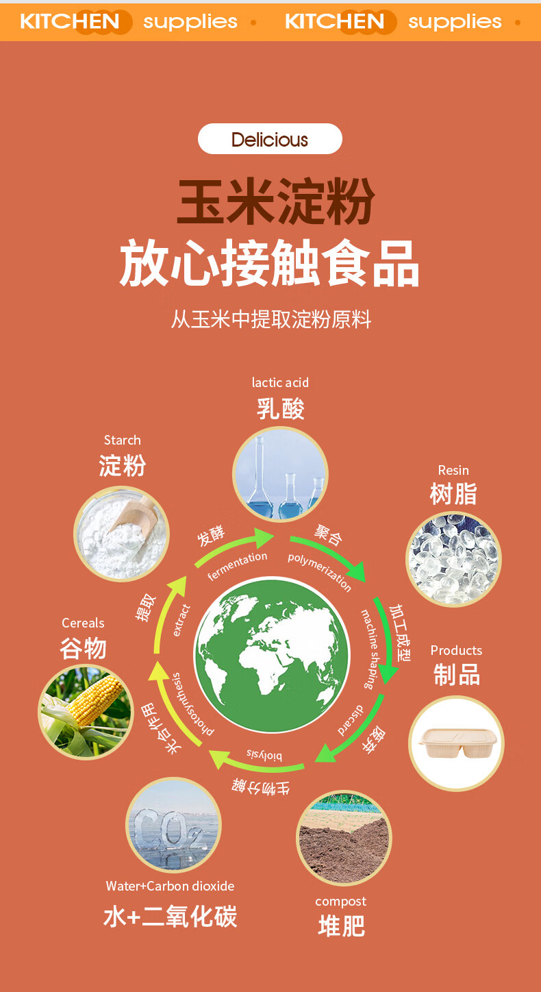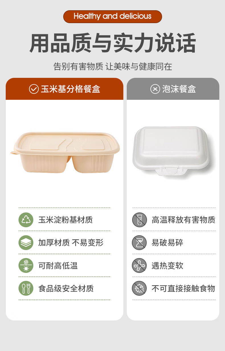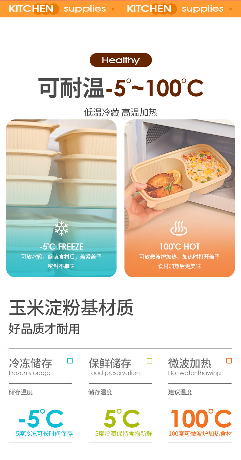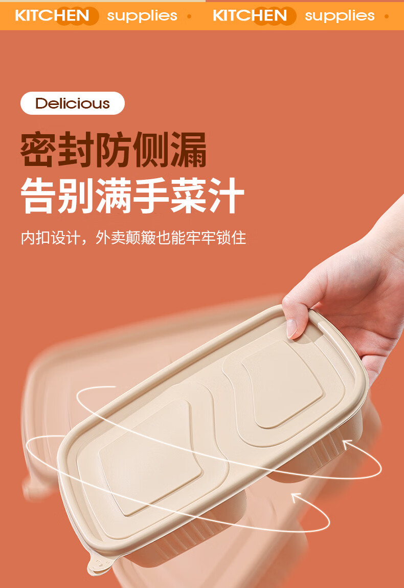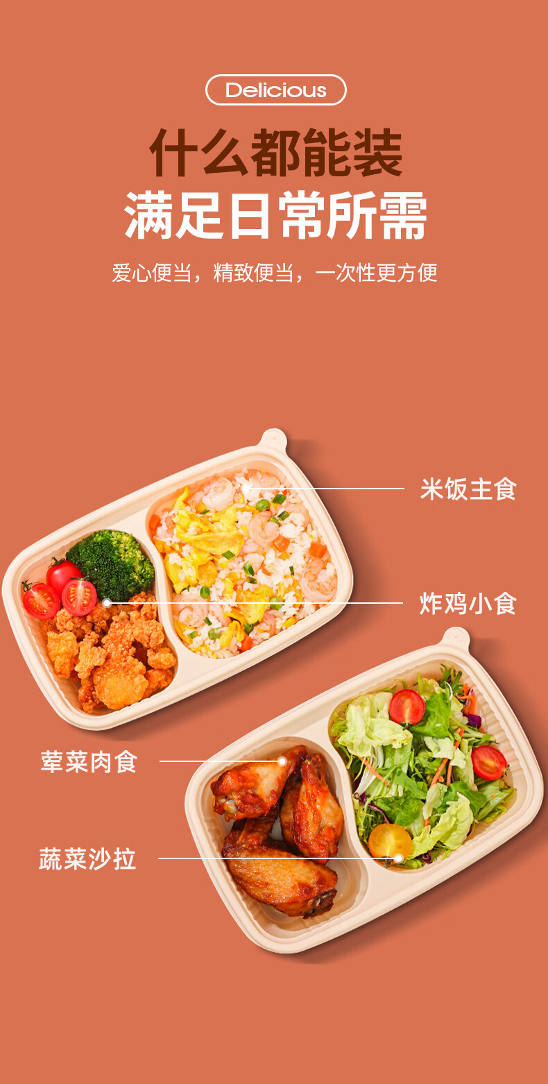 云蕾一次性餐盒饭盒带盖打包可微波加厚玉米淀粉露营1000ml*10套