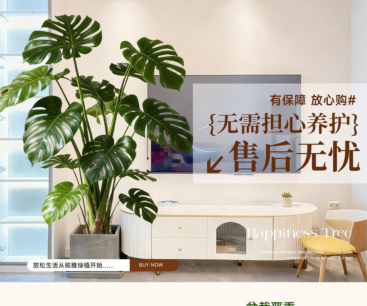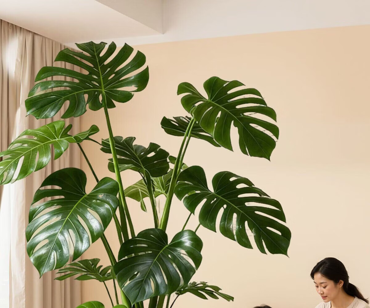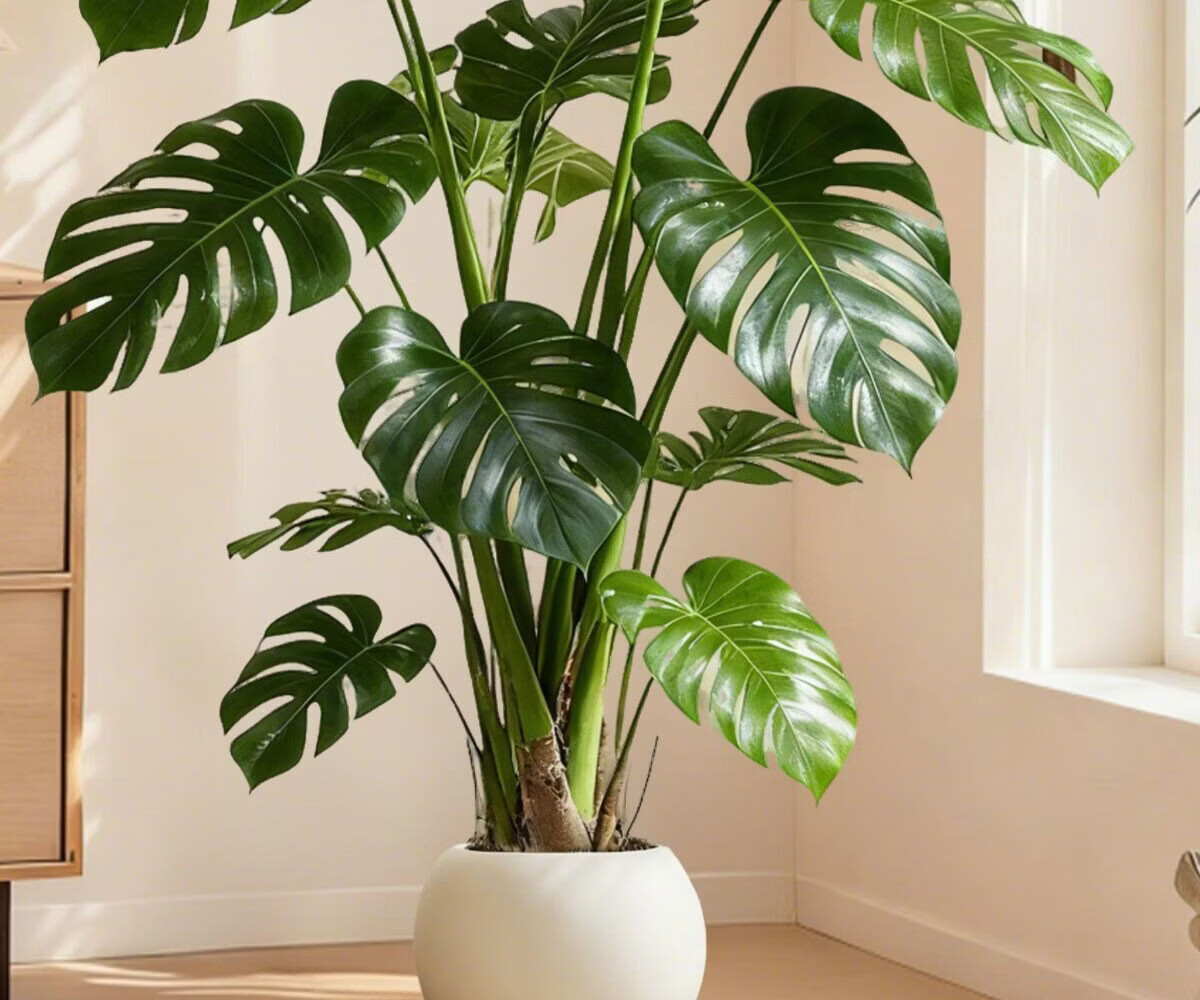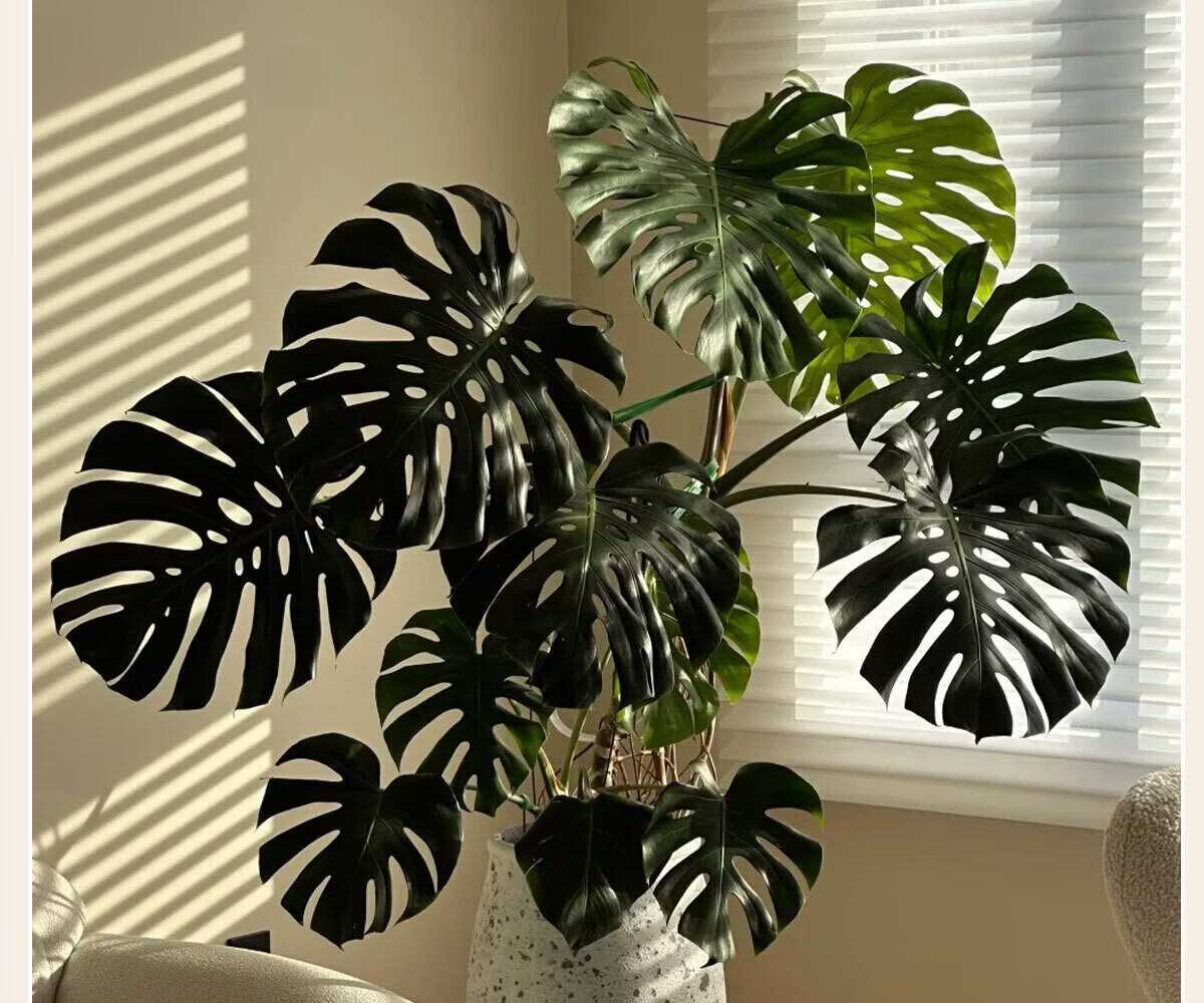 雅致龟背竹客厅大盆栽大叶开背老桩高级感绿植物办公室内好养落地盆景 精品S级龟背竹100-120cm【白色菱形盆】