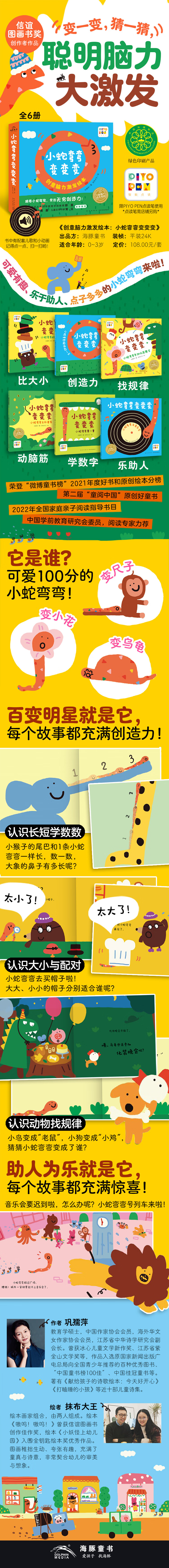 【点读版】小蛇弯弯变变变全套6册儿童绘本0-3岁宝宝脑力激发绘本找规律比大小学数数认动物宝宝早教启蒙图画书籍 小蛇弯弯变变变