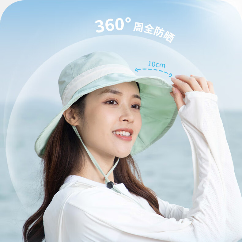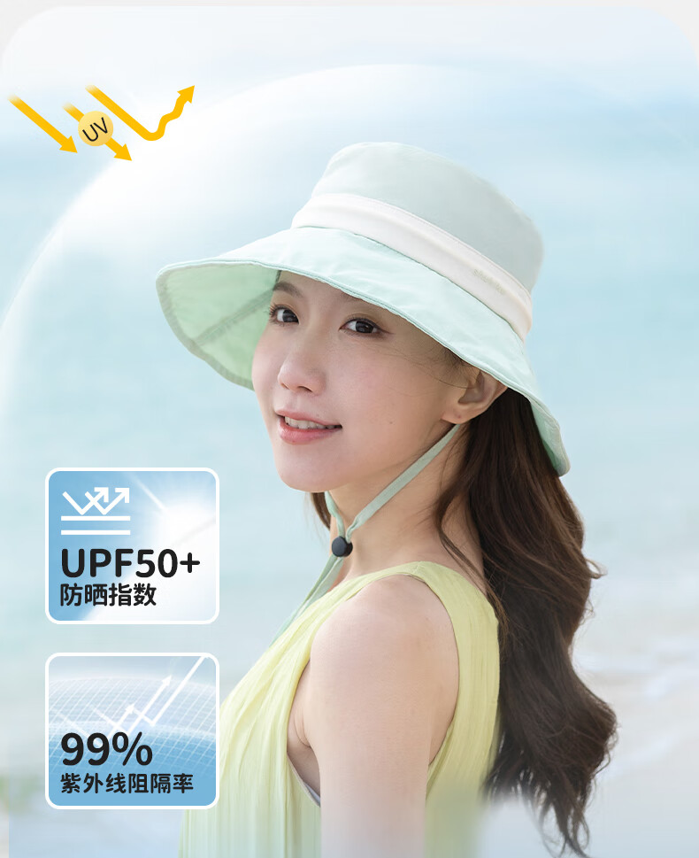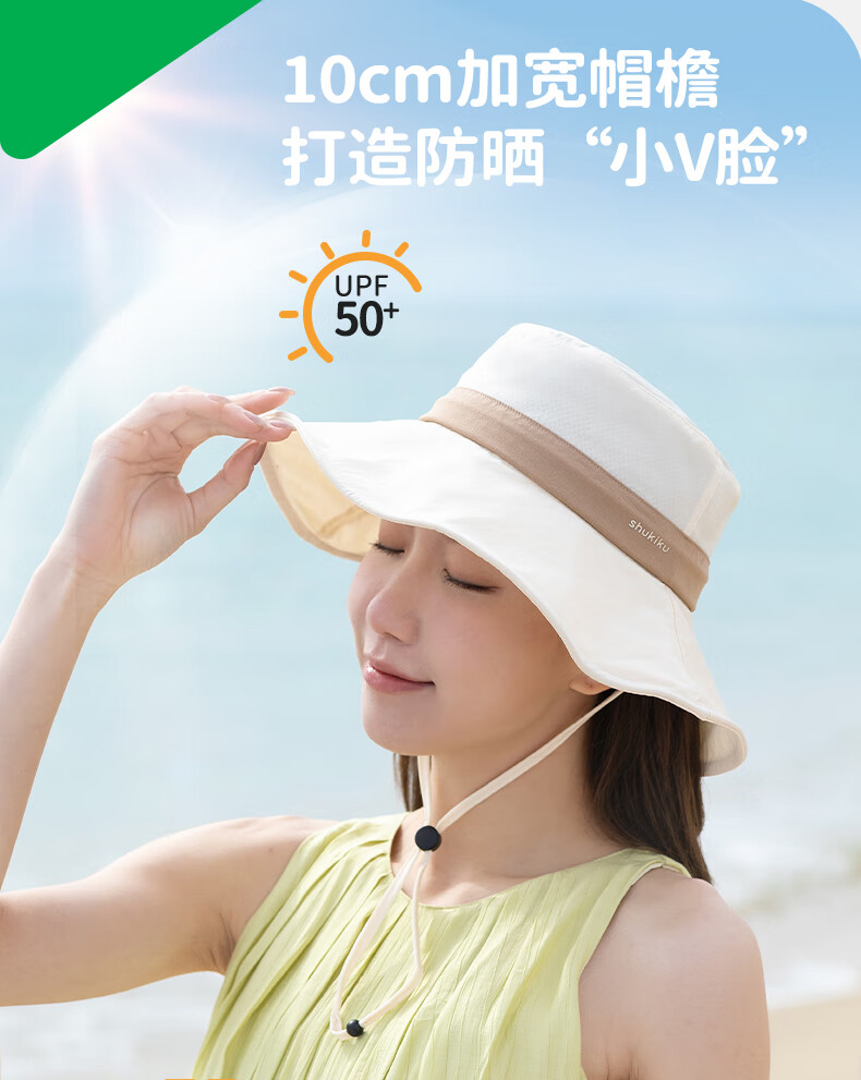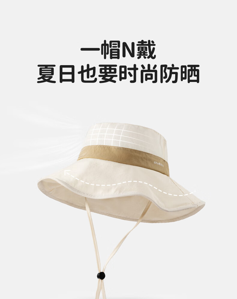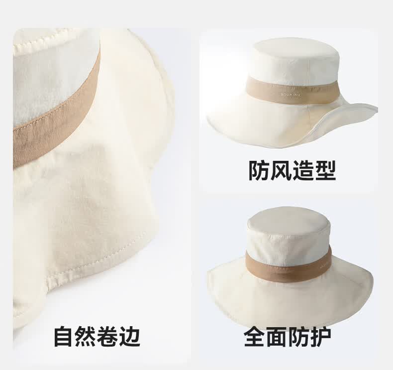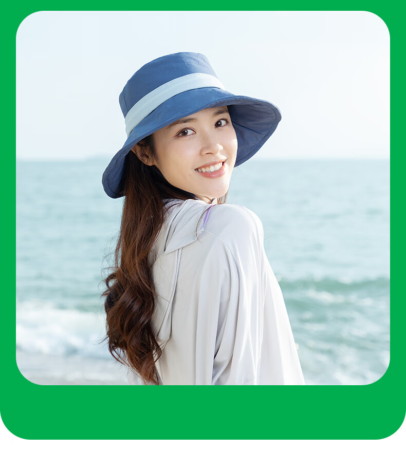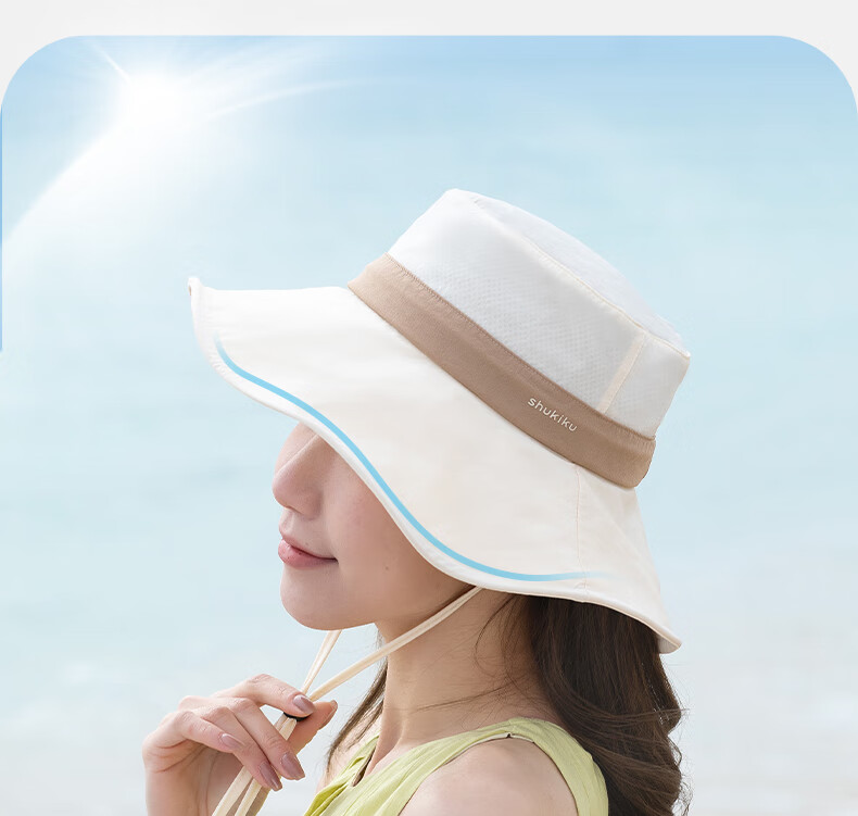 SHUKIKU女士防晒帽夏防紫外线大帽檐薄透气渔夫帽户外遮阳帽子 深海蓝 头围 57-59cm