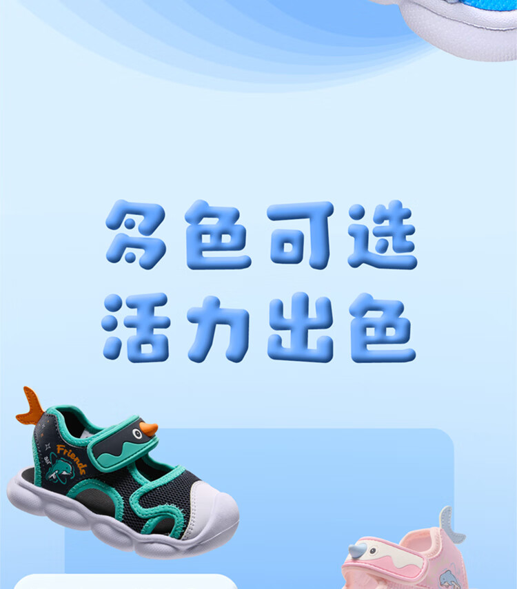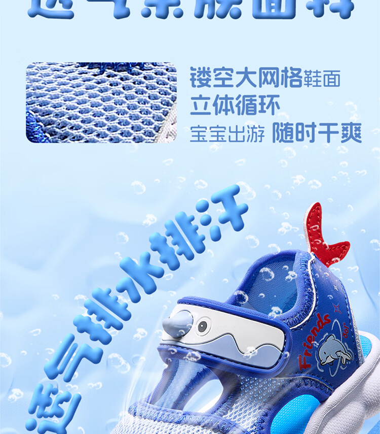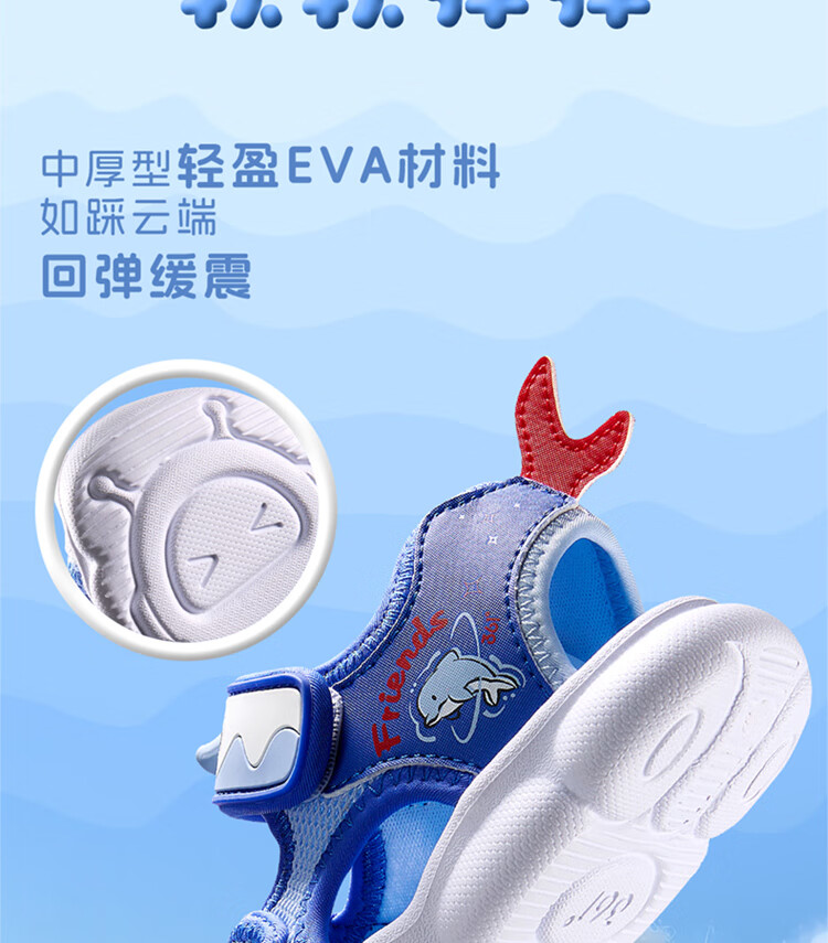 361°童鞋女童幼童鞋2026夏季新款包头凉鞋软底透气鞋子婴童学步鞋 幻象蓝/东方蓝色/能量红色 25 内长15.5cm