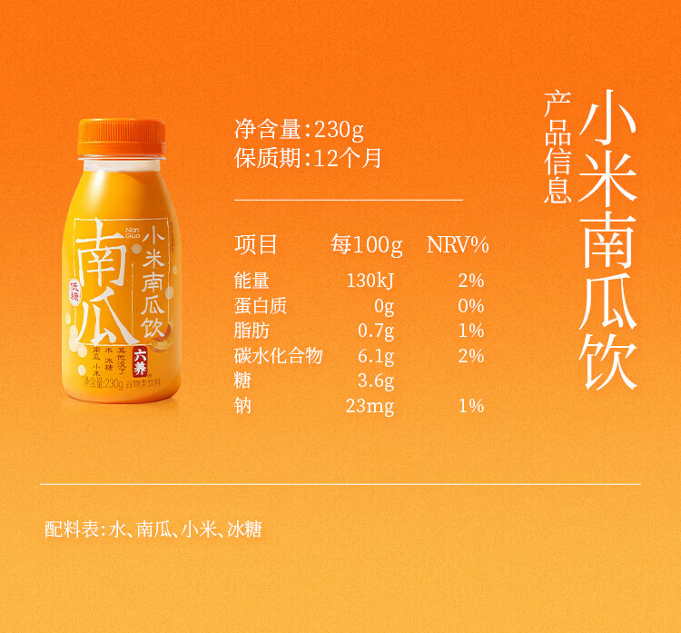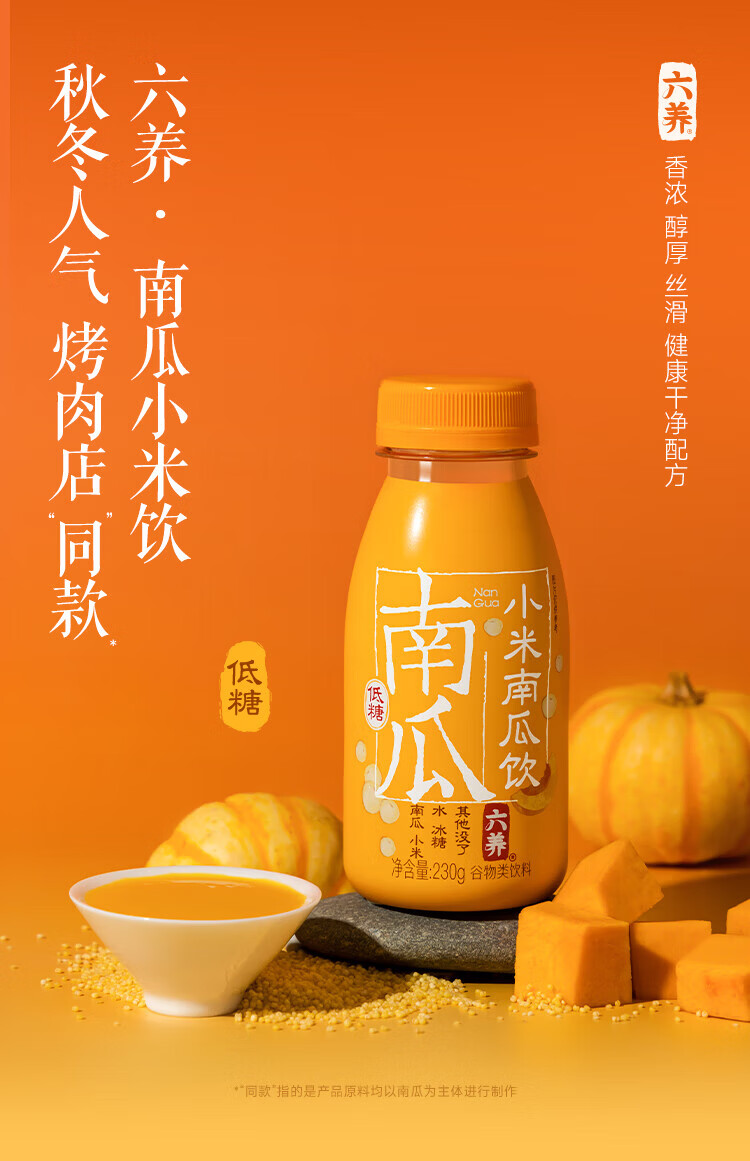 六养(LIUYANG)乌黑芝麻植物奶蛋白饮料8瓶/箱 猴菇八珍饮有机玉米汁绿豆百合饮 230g*6瓶 【到手箱】小米南瓜饮