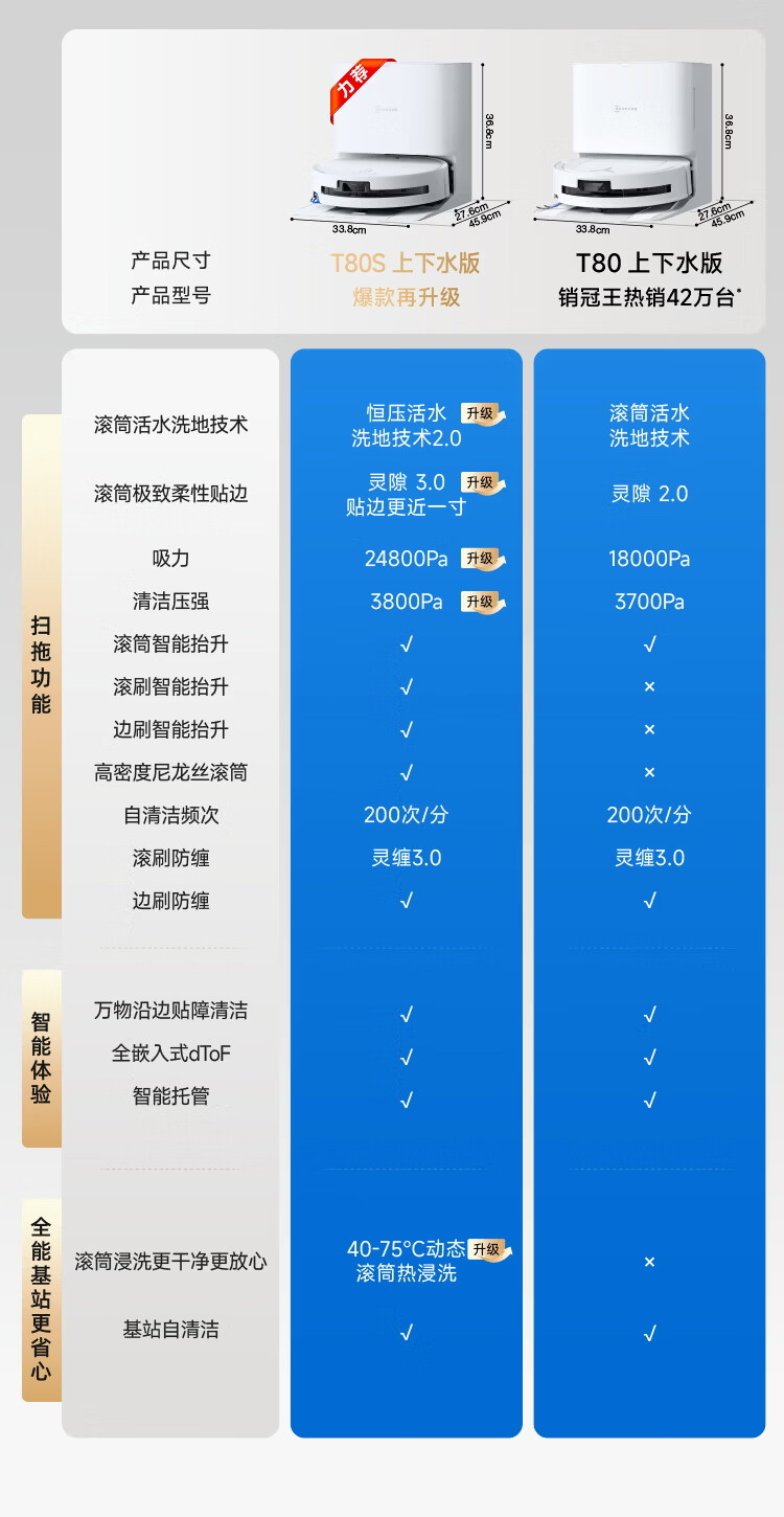 科沃斯T80S扫地机器人保价服务洗地机扫拖一体自动清洗全自动上下水洗拖吸一体滚筒活洗 T80S PRO水箱版