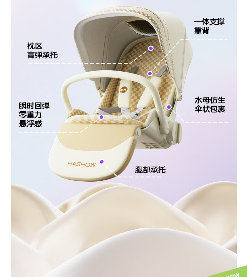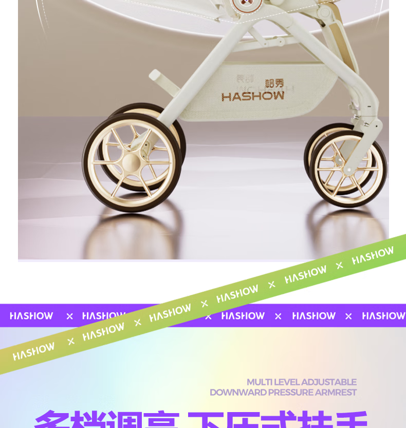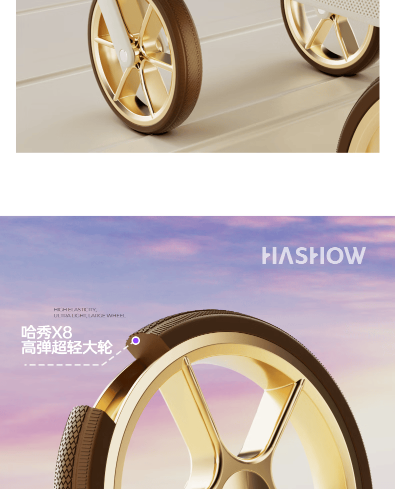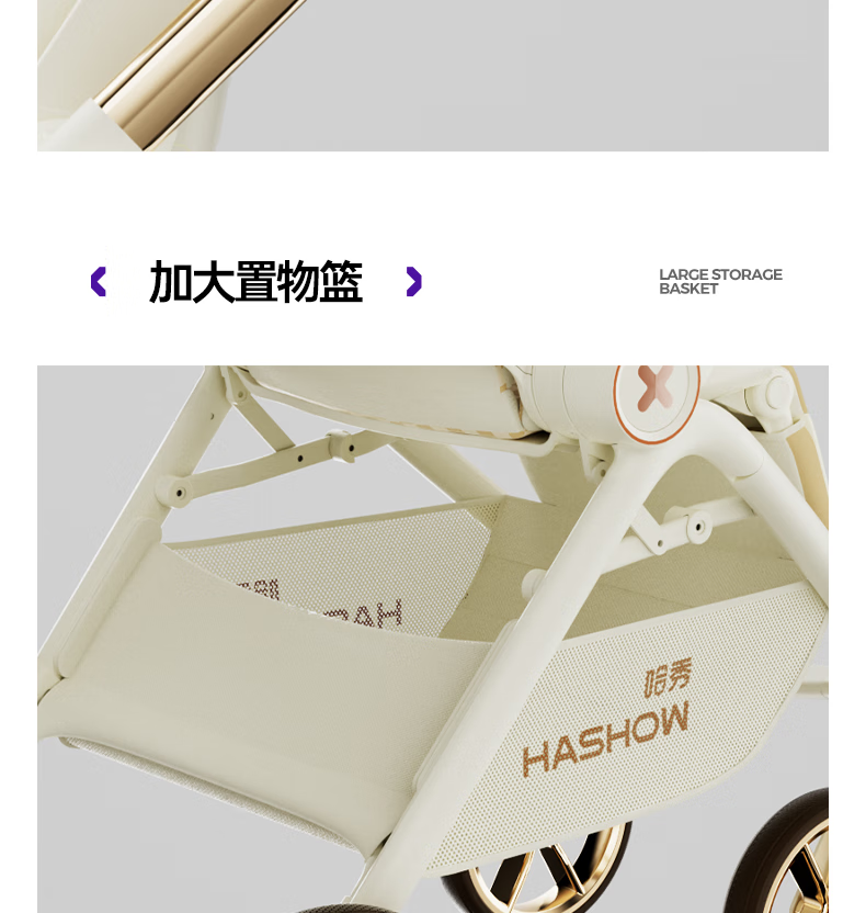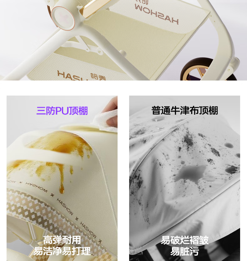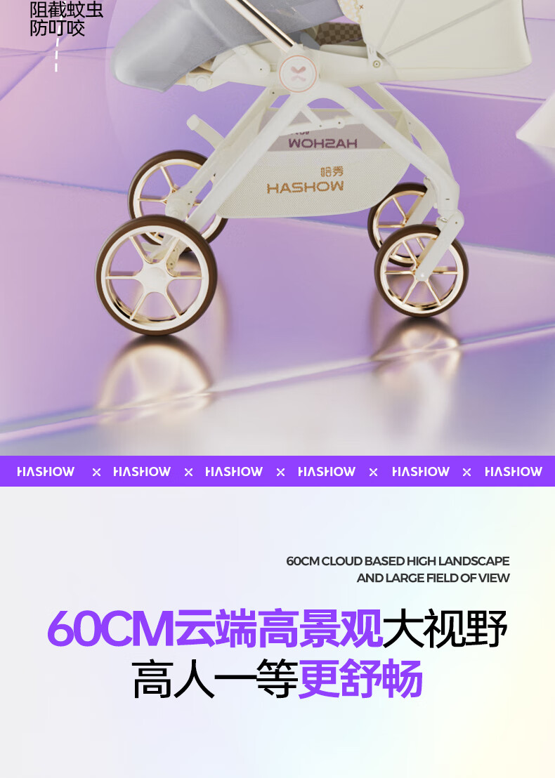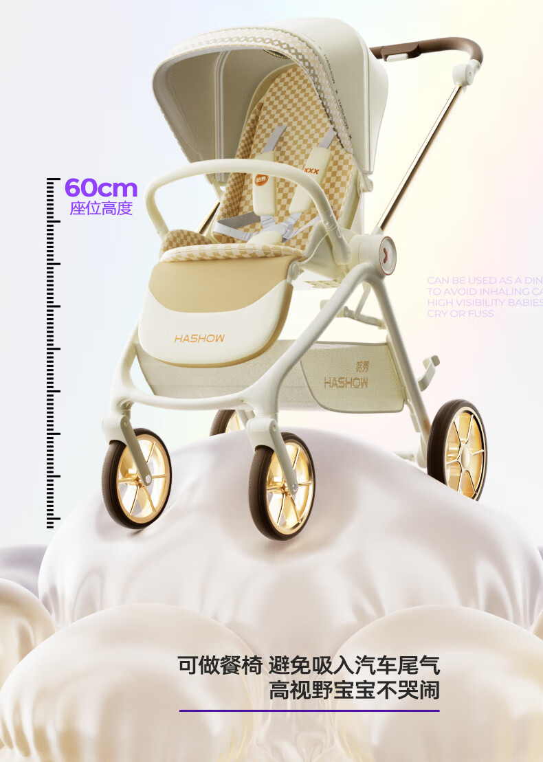 哈秀X8婴儿推车可坐可躺儿童遛娃神器轻便折叠一键收车 香槟金