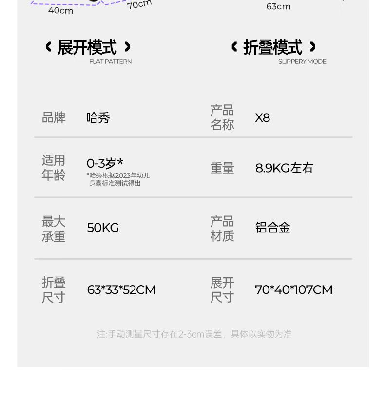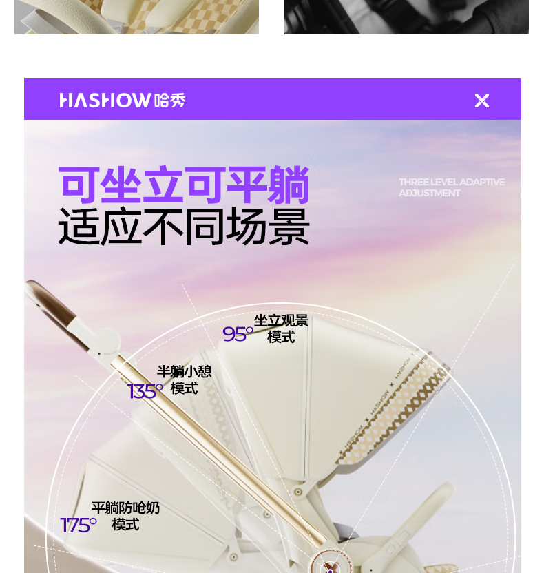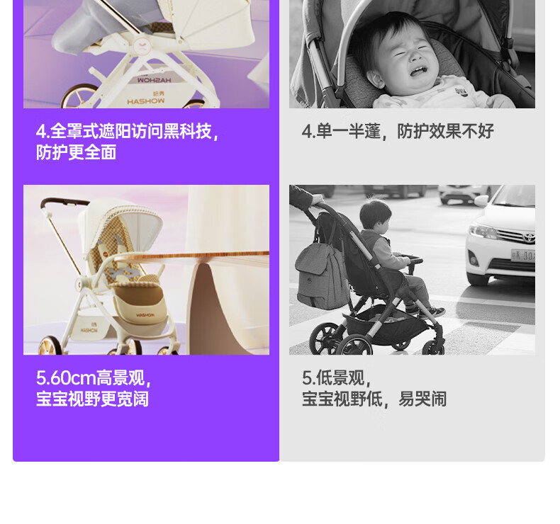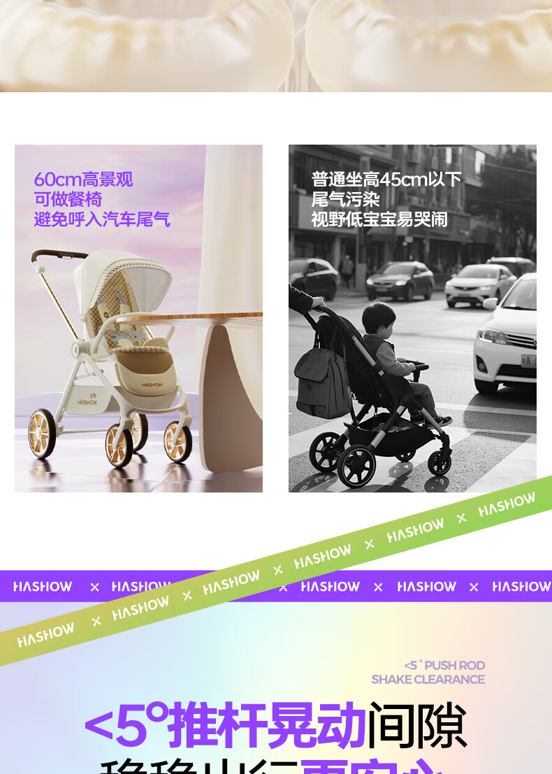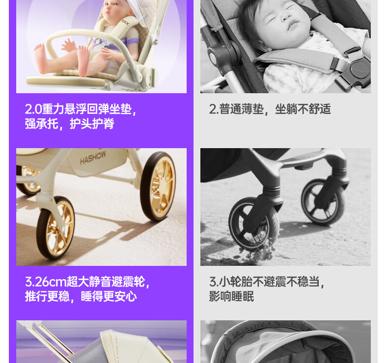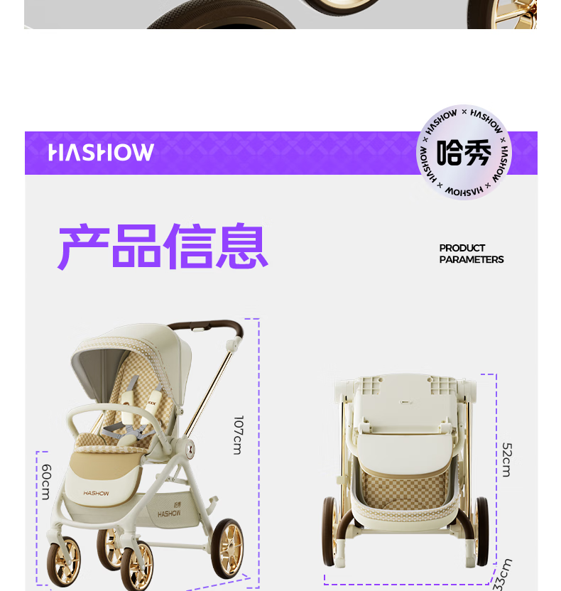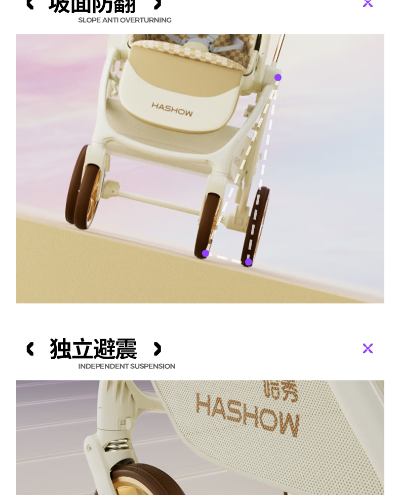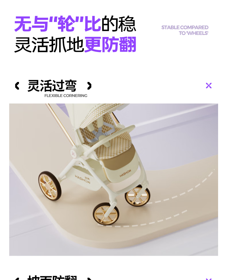 哈秀X8婴儿推车可坐可躺儿童遛娃神器轻便折叠一键收车 香槟金