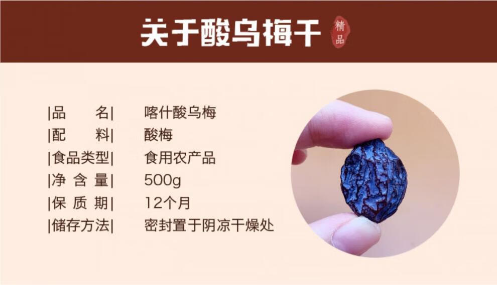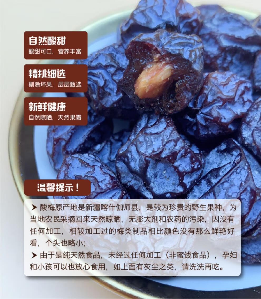 枣红栆杞新疆特产野酸乌梅干天山乌梅特级无加糖喀什原味酸梅子零食西梅干 中果 西梅干500g*1袋