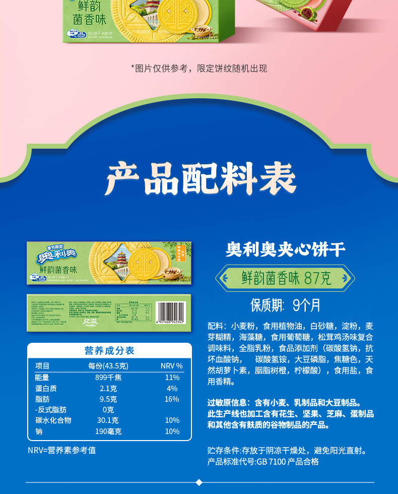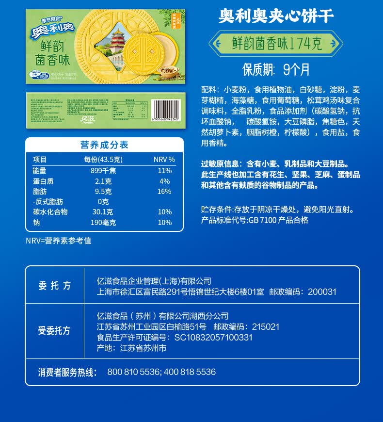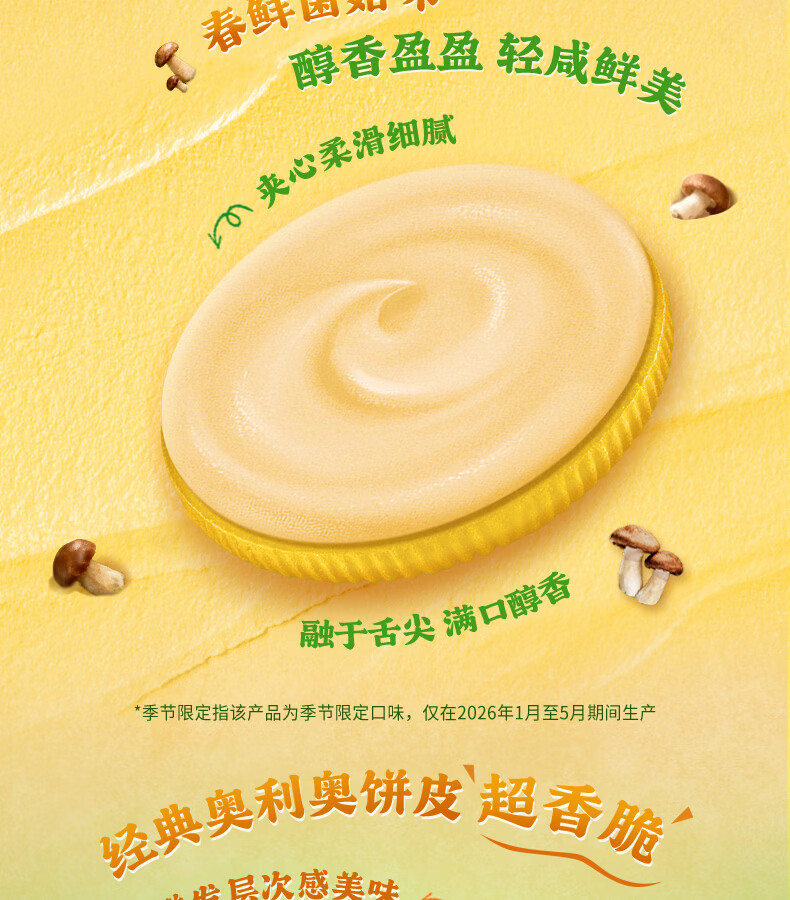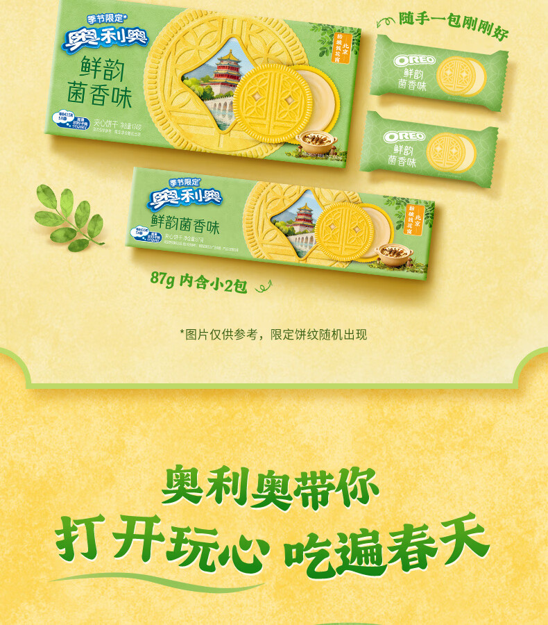 奥利奥(Oreo)鲜韵菌香味夹心饼干174G 春季限定 春游露营 休闲零食 早餐下午茶