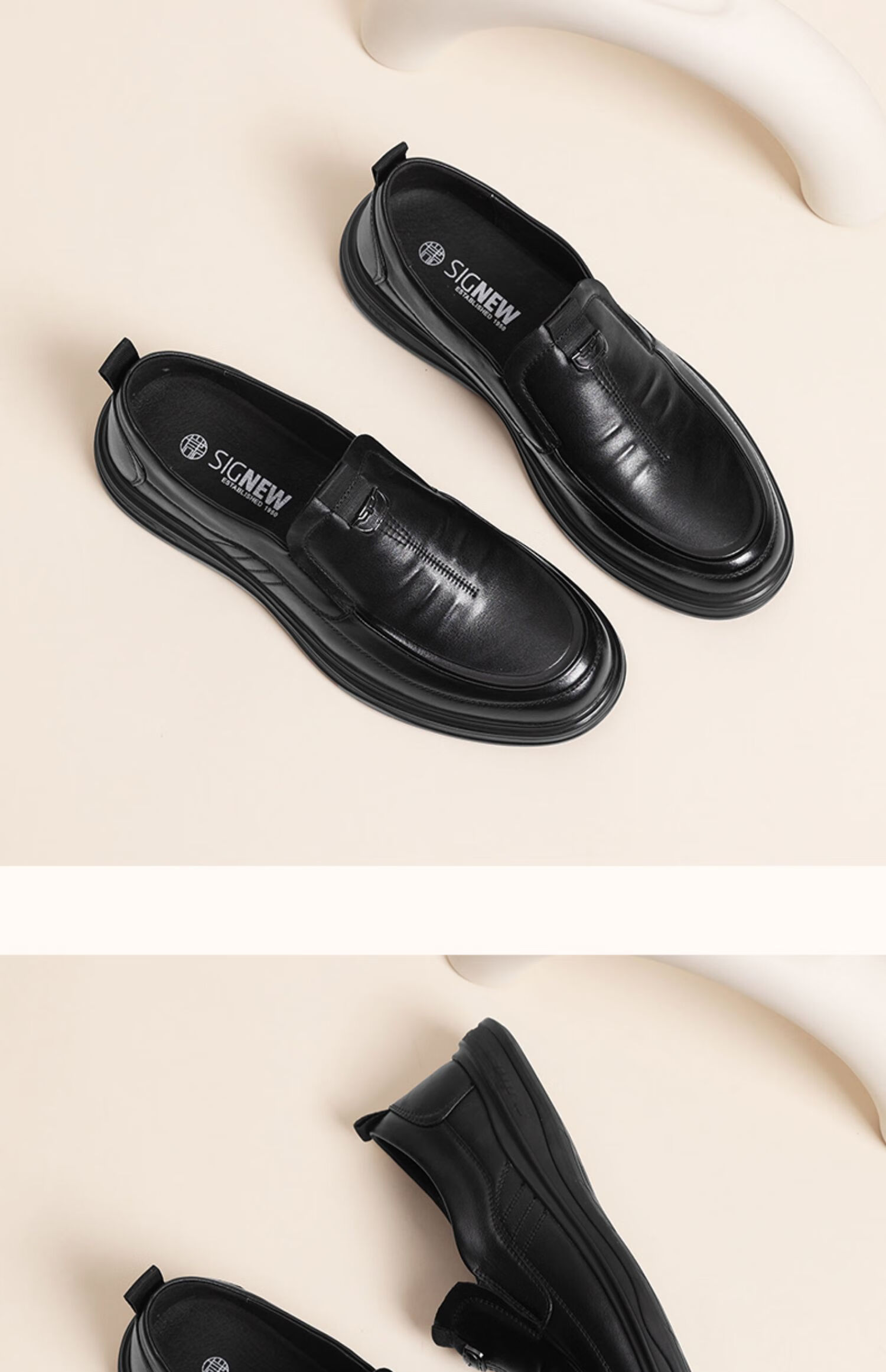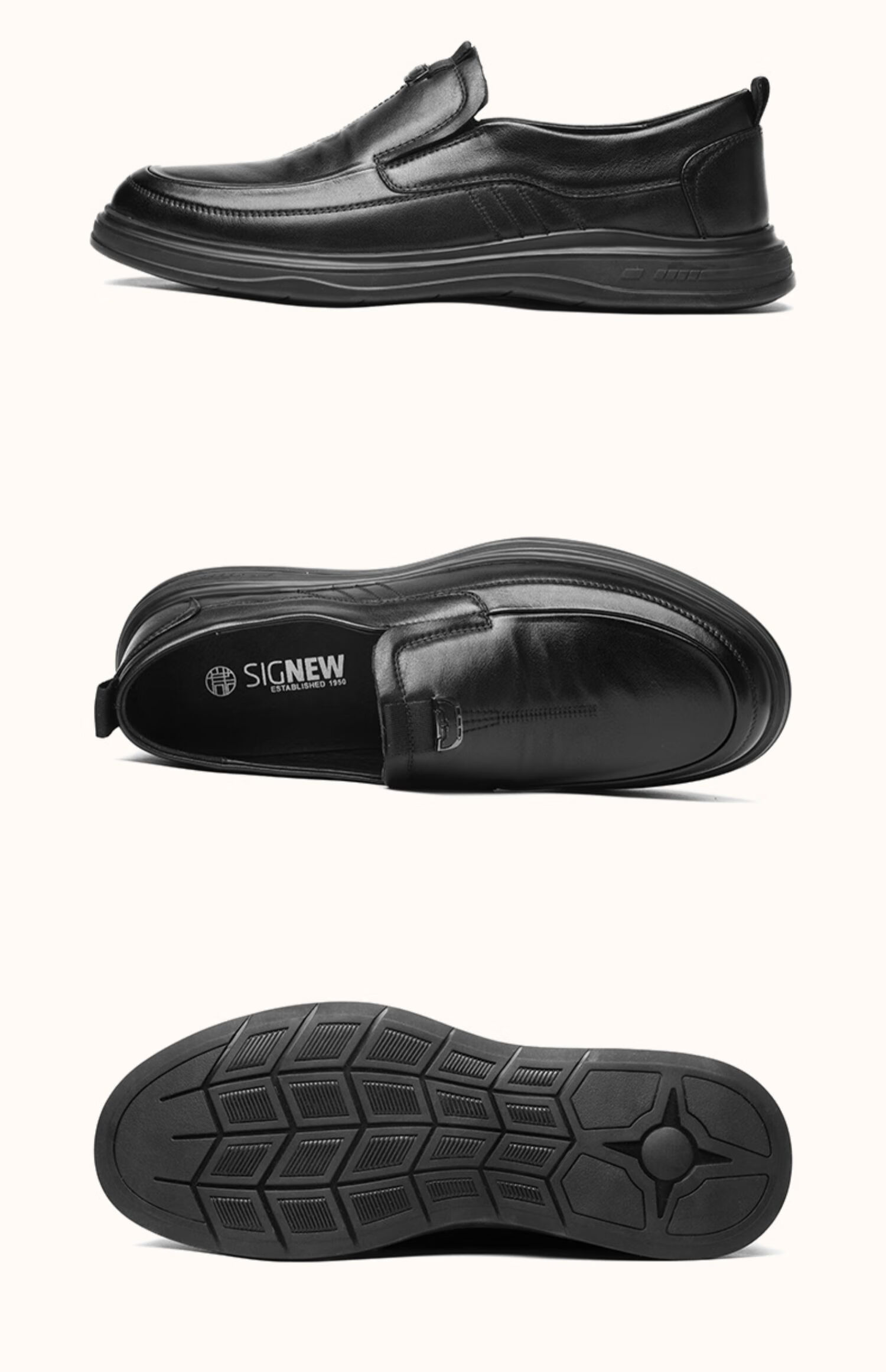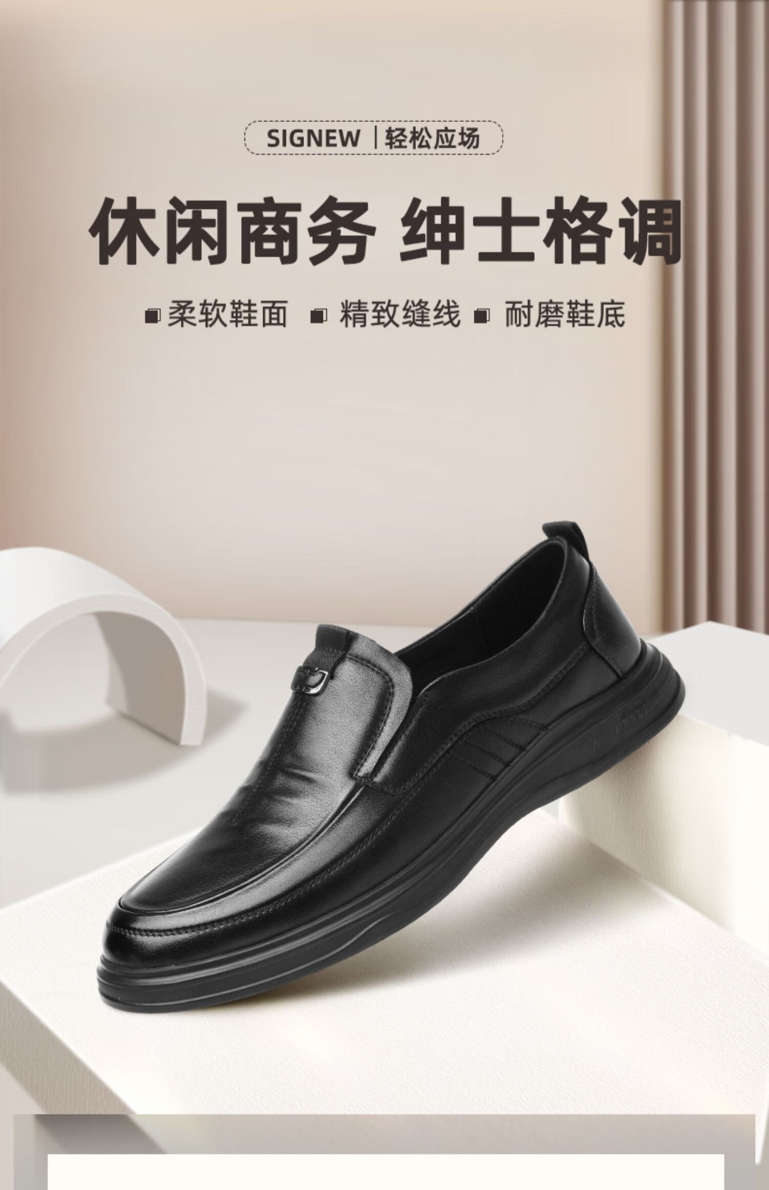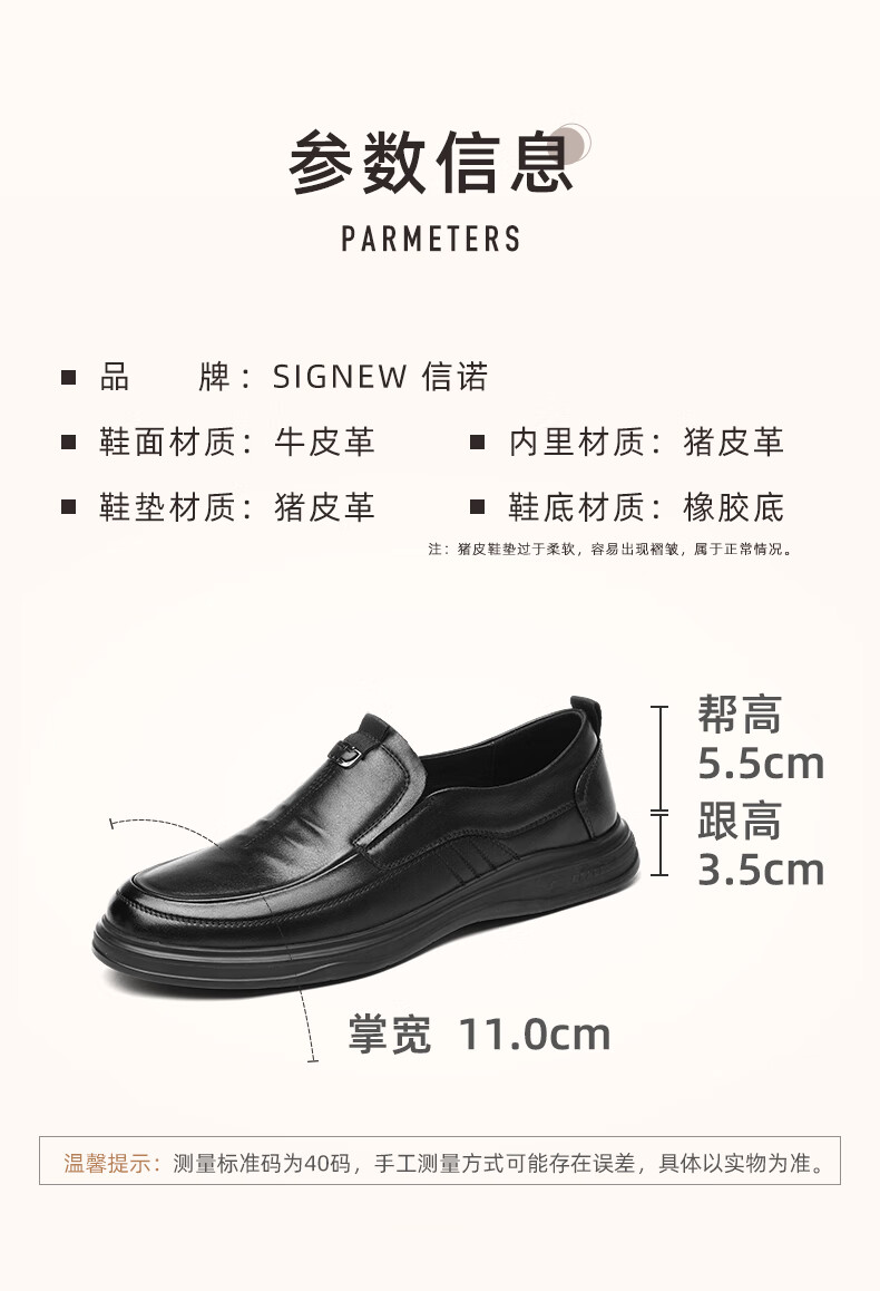 信诺(SiGNEW)信诺真皮男鞋秋季新款一脚蹬中年爸爸鞋商务休闲皮鞋通勤单鞋 单层 黑色 47