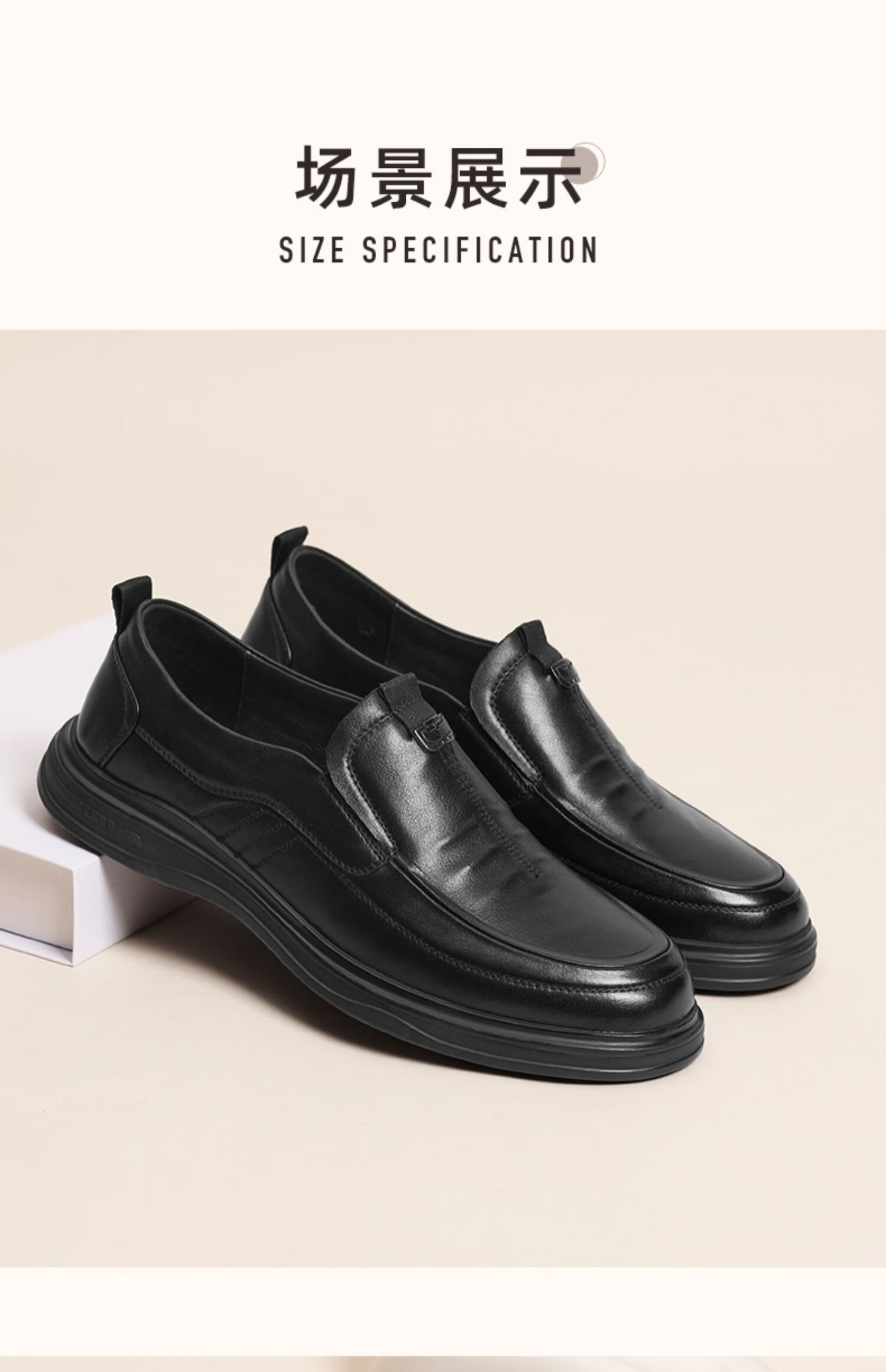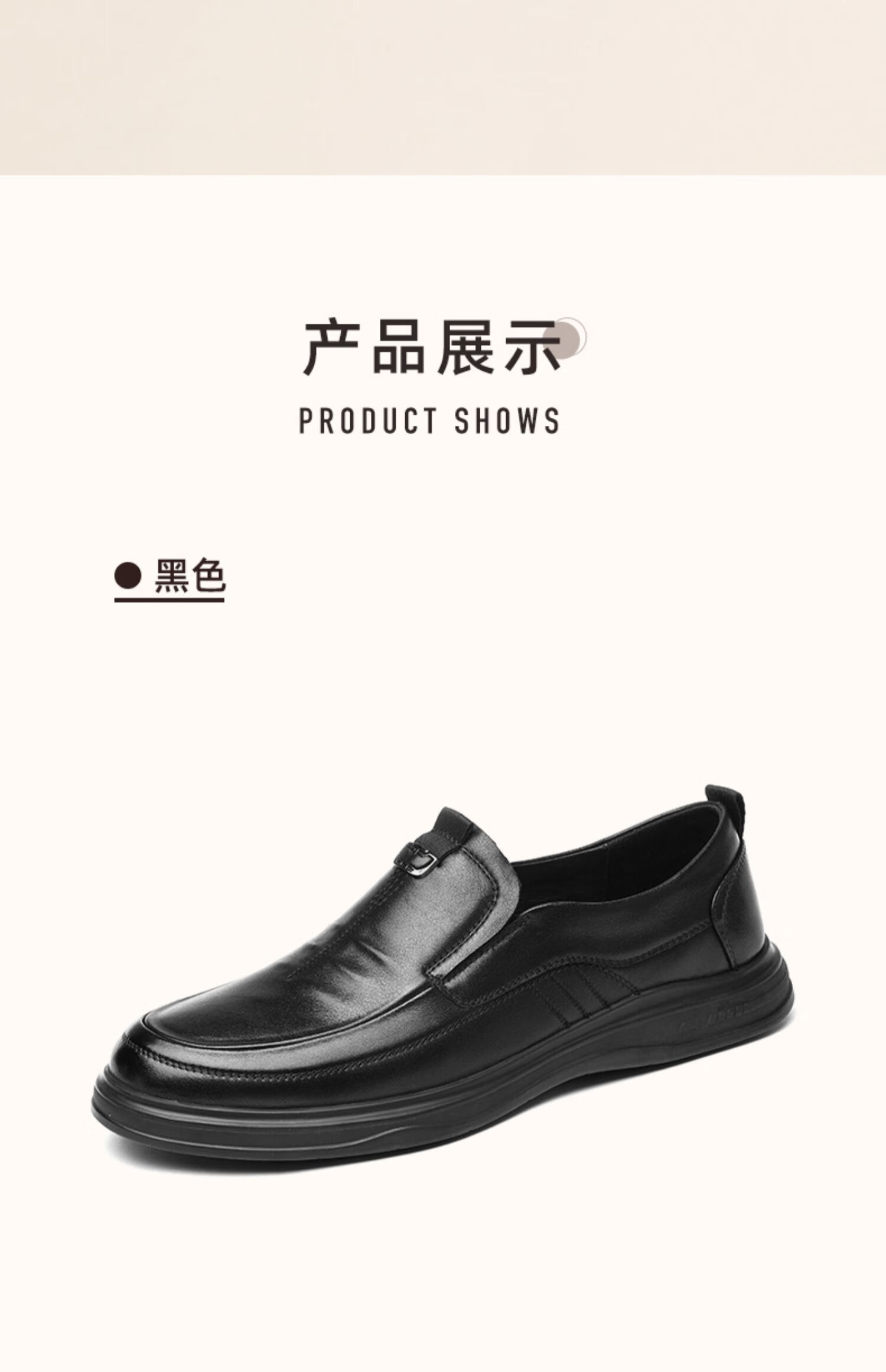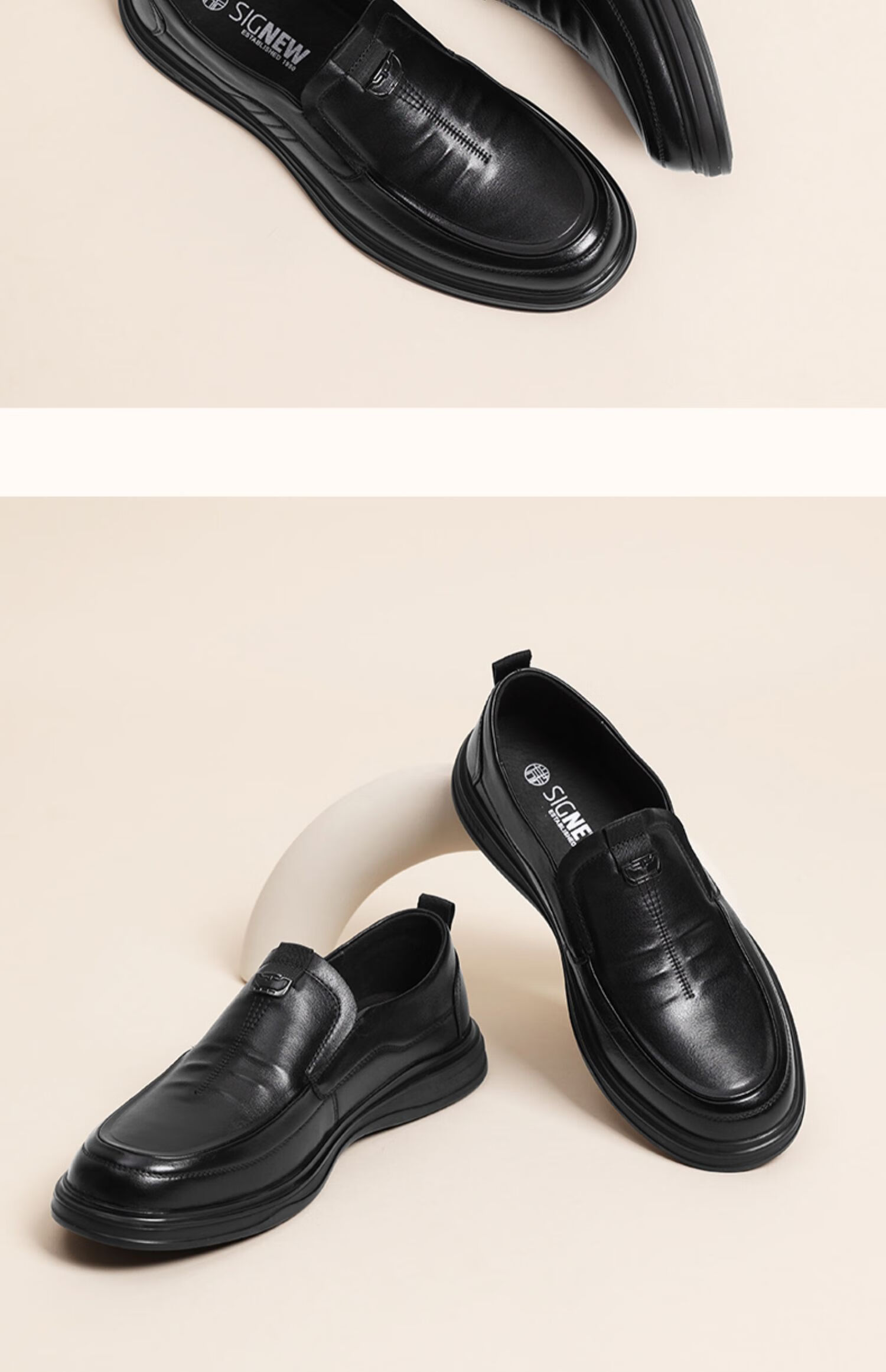 信诺(SiGNEW)信诺真皮男鞋秋季新款一脚蹬中年爸爸鞋商务休闲皮鞋通勤单鞋 单层 黑色 47
