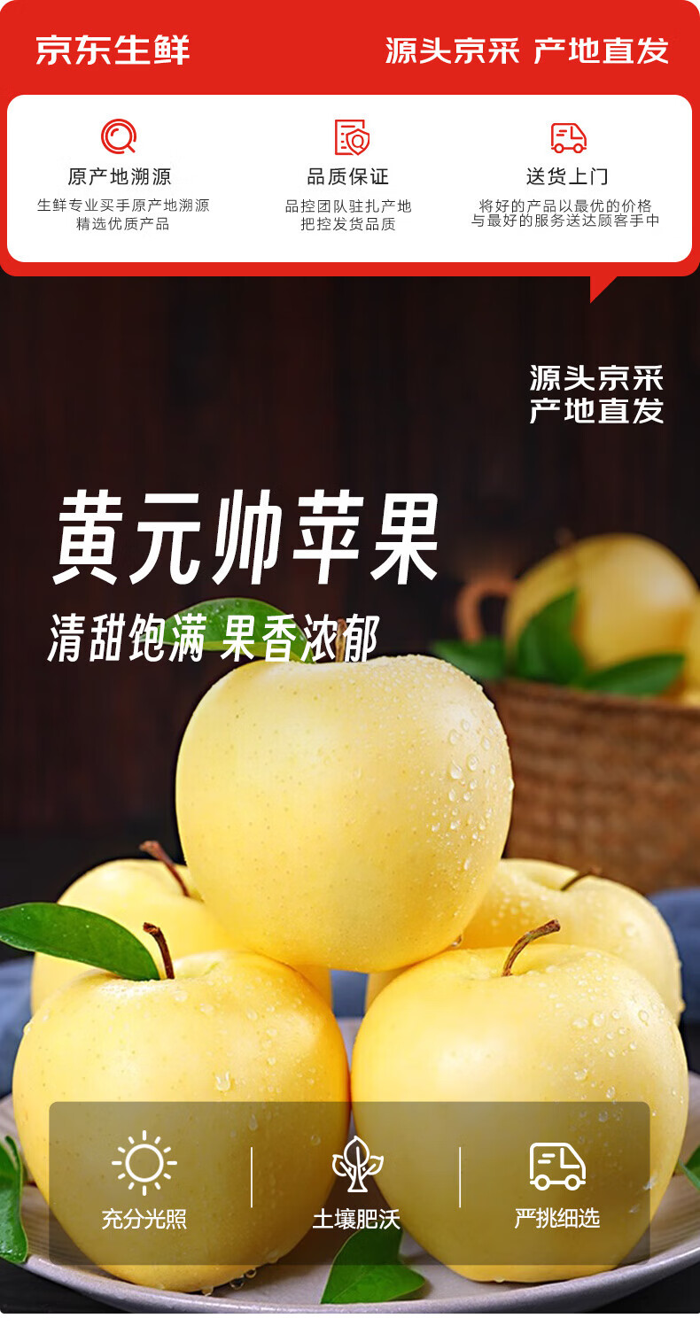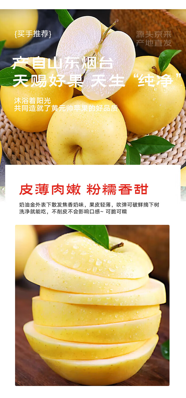 京鲜生山东烟台黄元帅苹果酸甜 净重8.5斤 单果75-80mm 源头直发 包邮