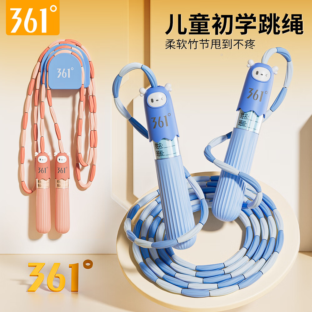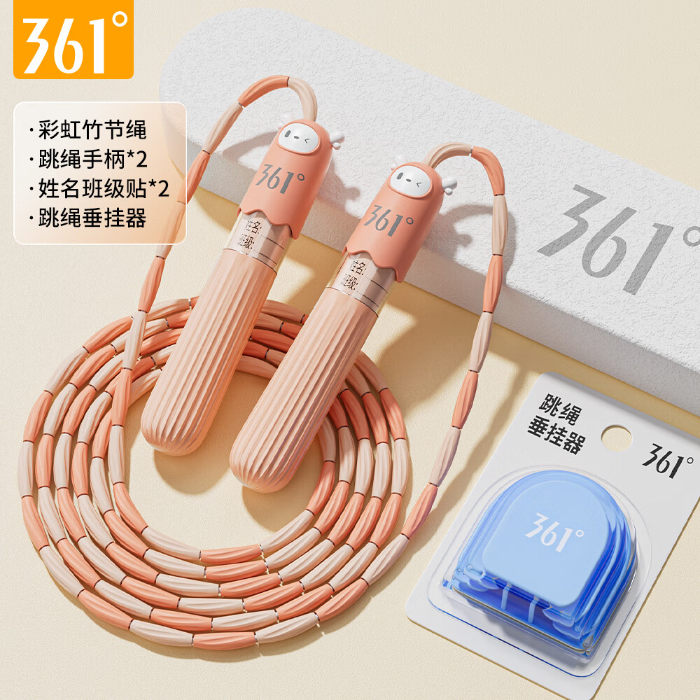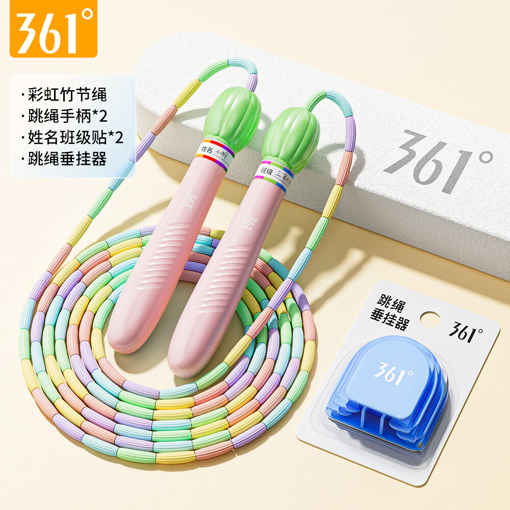 361°竹节跳绳儿童初学小学生幼儿园考试专用3-5-6-12岁不打结绳子 粉绿【送姓名班级贴】