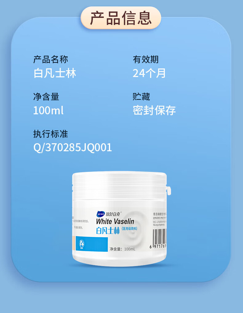 海氏海诺 白凡士 林便携式护手霜身体乳润滑剂护肤滋润保湿防干裂 100ml