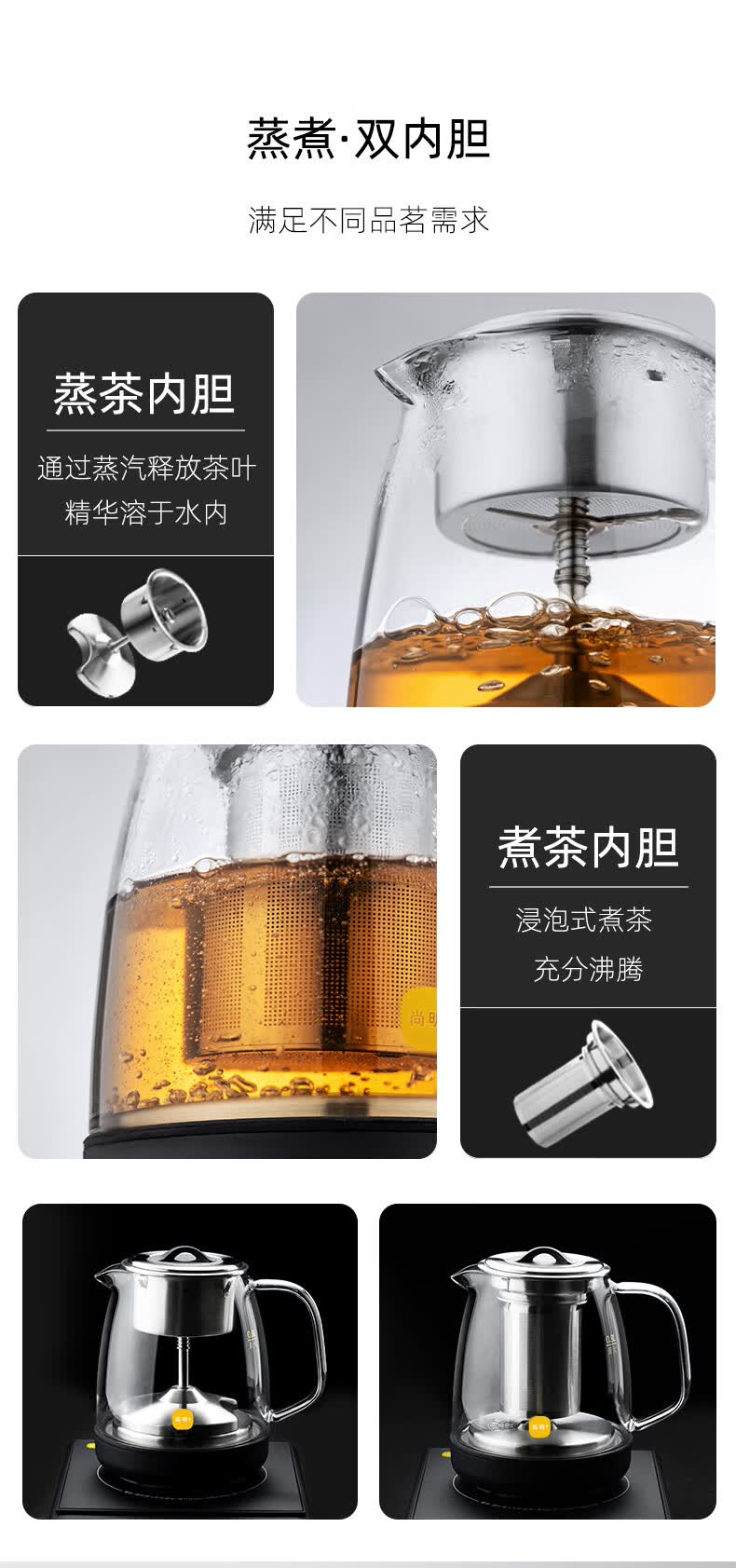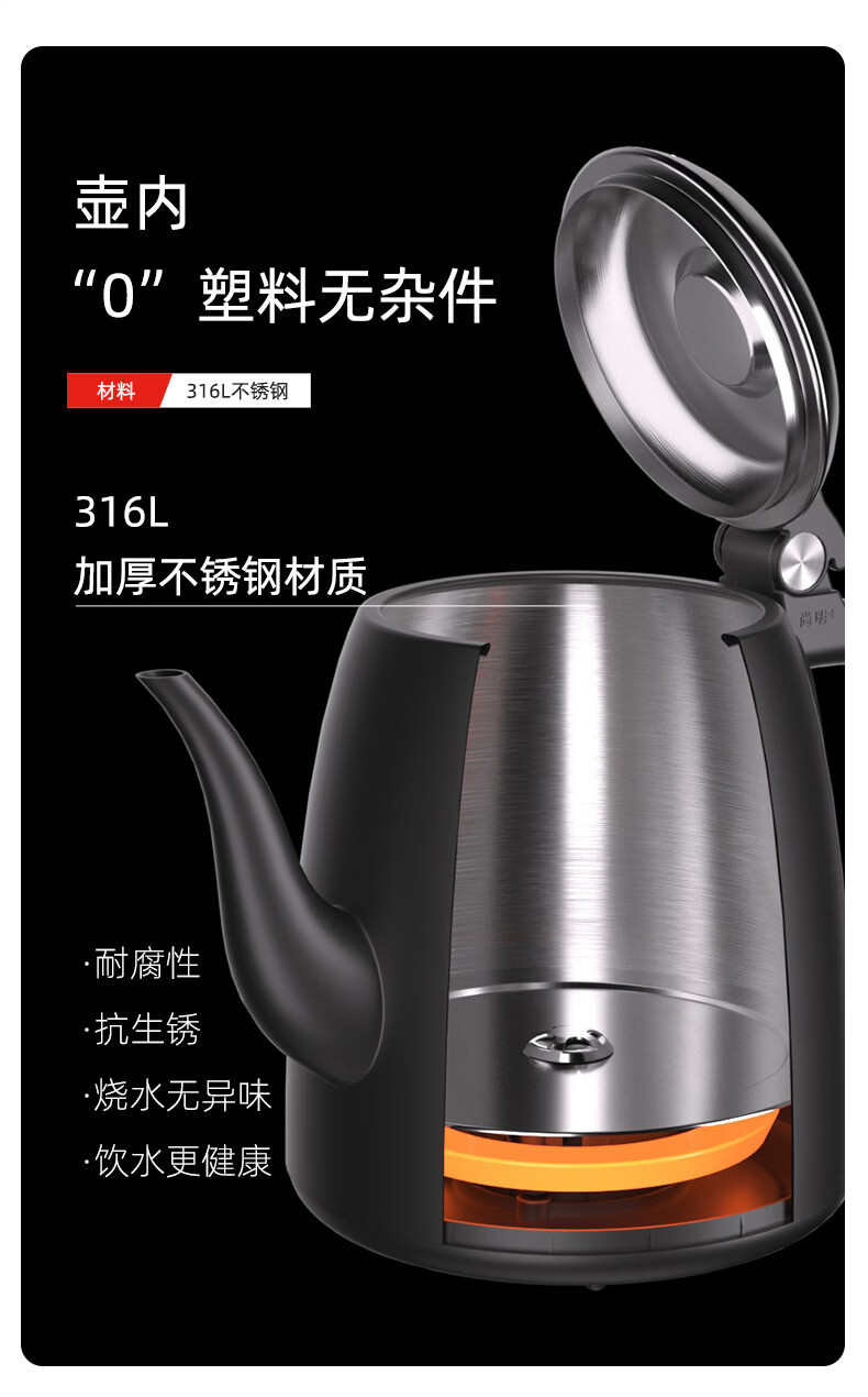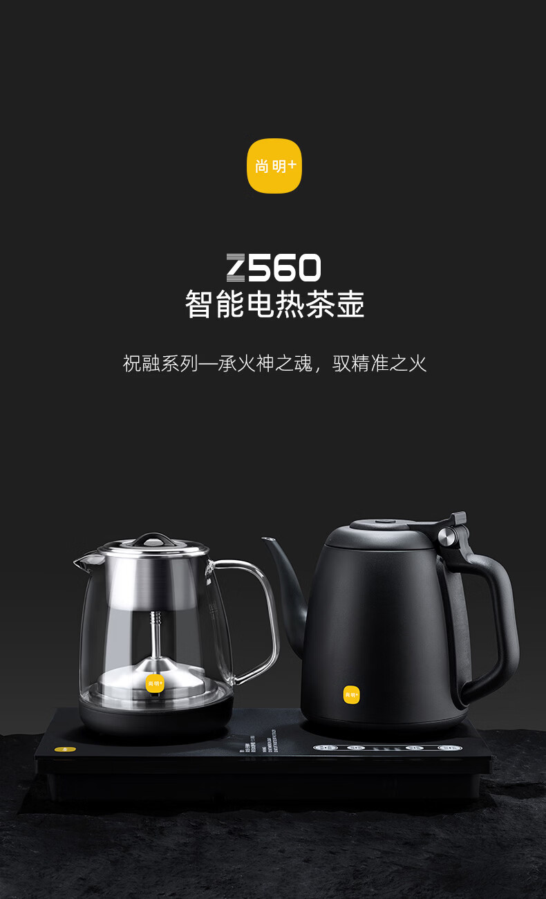 尚明(SAMADOYO)电热水壶家用烧水壶煮茶器开水壶电茶炉带蒸煮茶壶智能变频烧水器全自动上水煮茶蒸煮器双炉Z560 1.2L 双炉黑【全自动智能恒温】