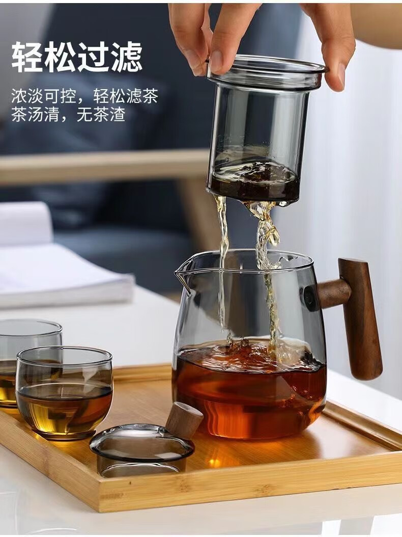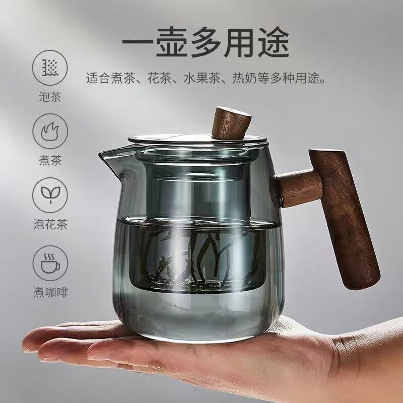 臻晶智高端手工茶具套装烟榭壶耐高温玻璃茶具套装壶杯茶水壶泡煮茶壶 烟榭壶透明色